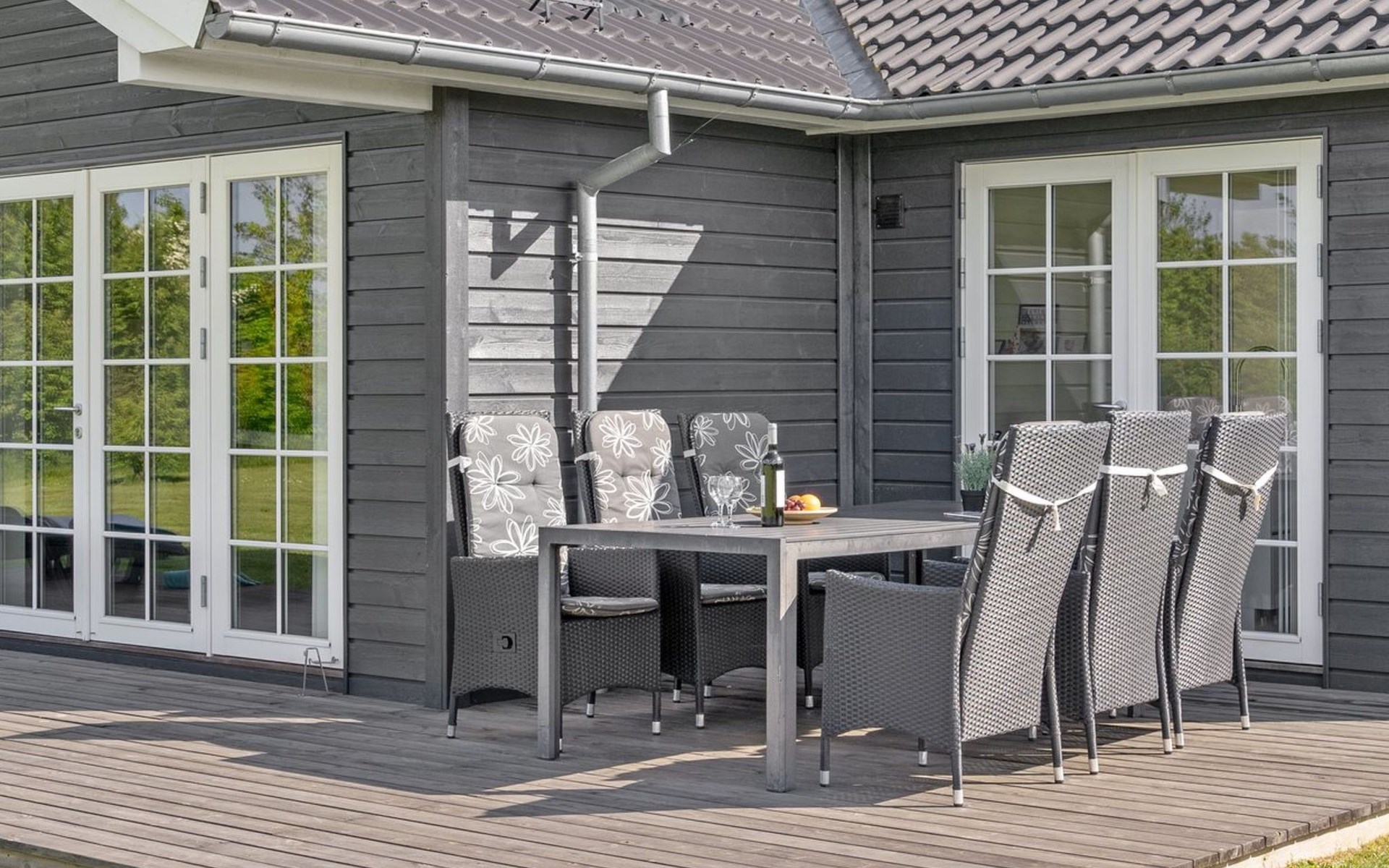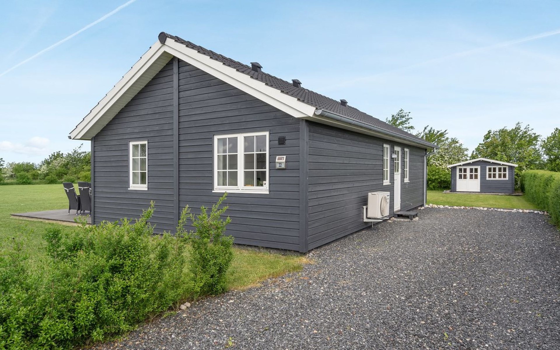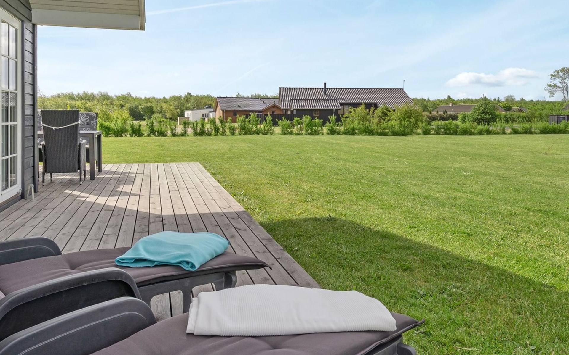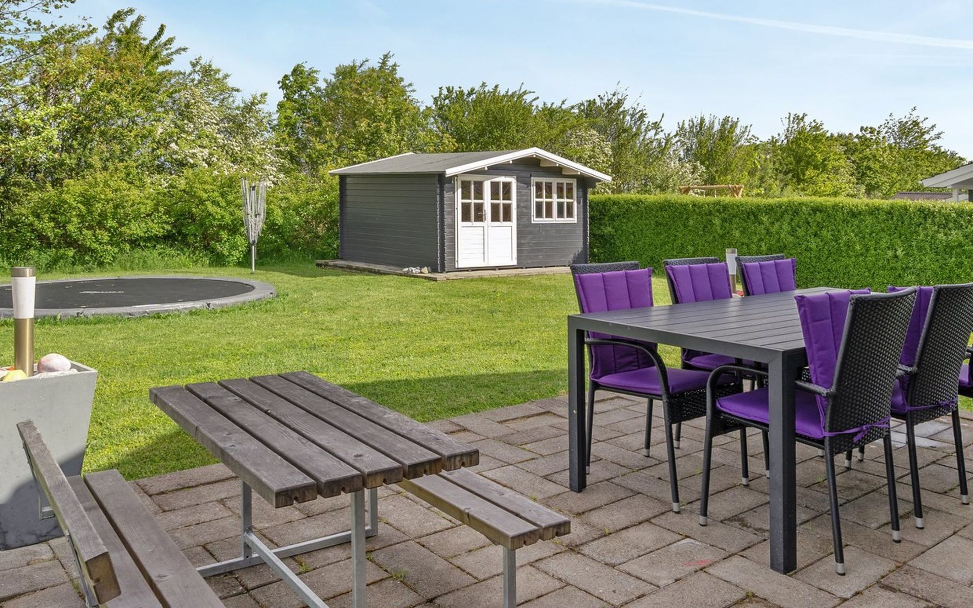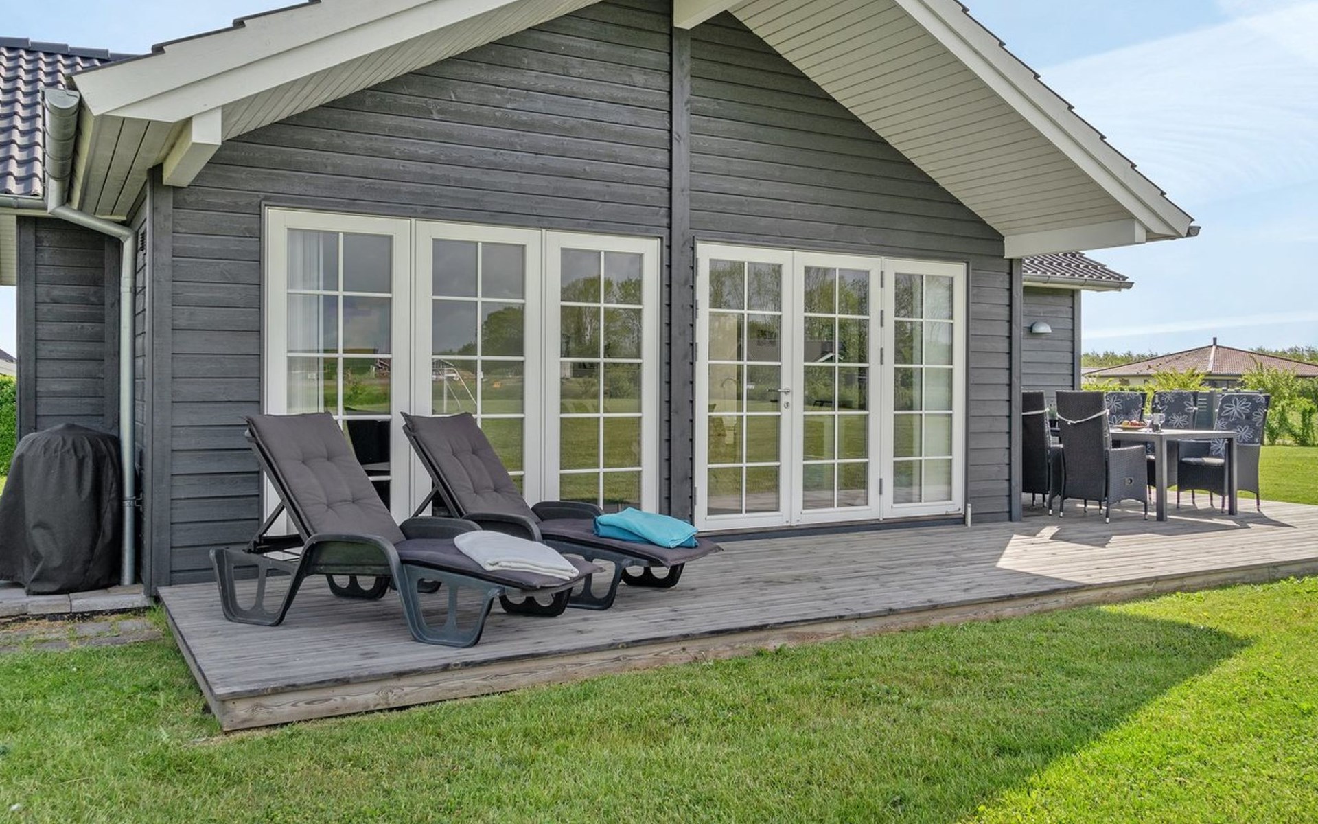 Single-family house, built in 2014. 700 m from the sea. Private: natural state property 1'118 m2. Terrace (50 m2), barbecue, children's playground (swing). In the house: trampoline, washing machine. Parking at the house. Grocery 2 km. The owner does not accept any youth groups.