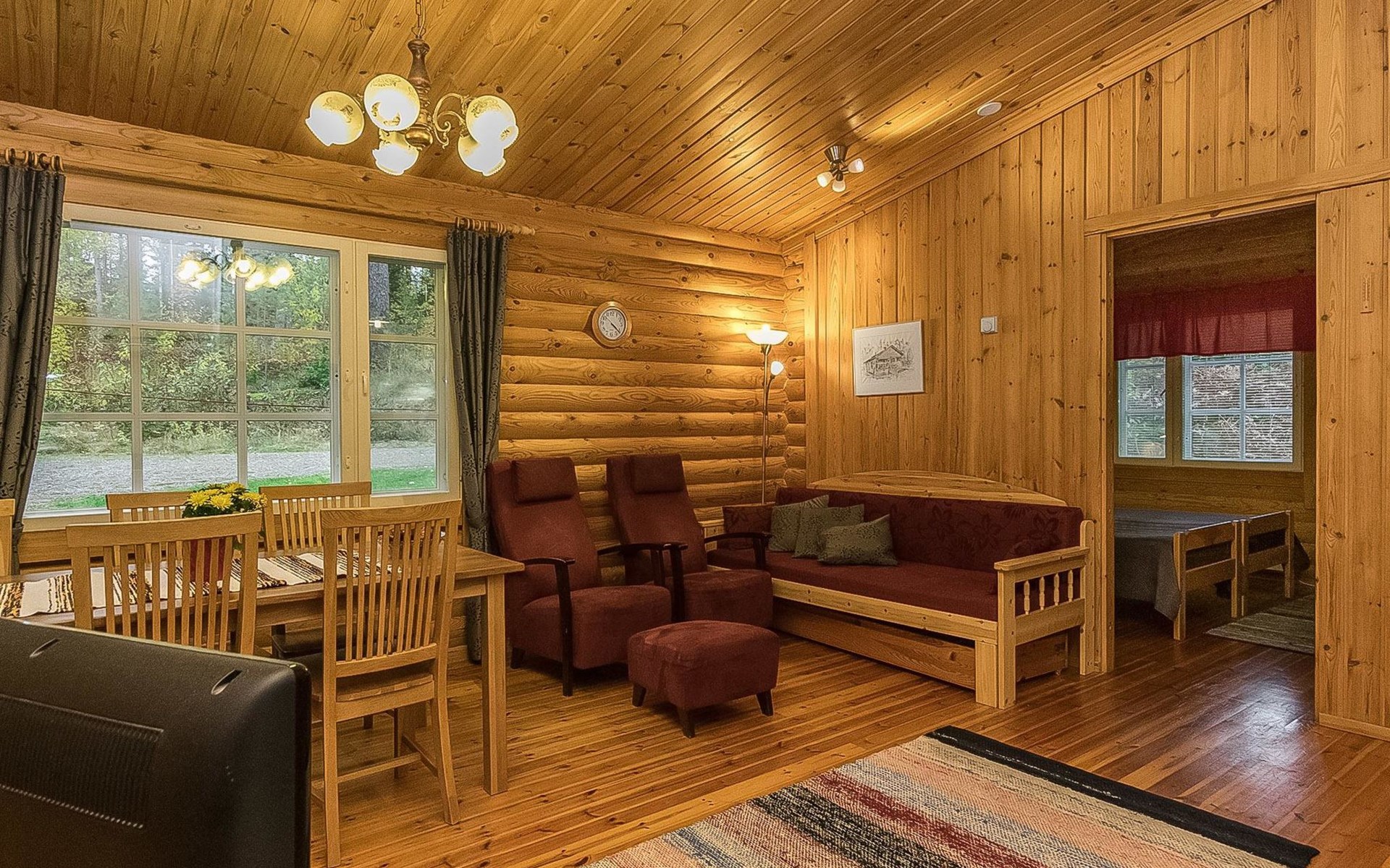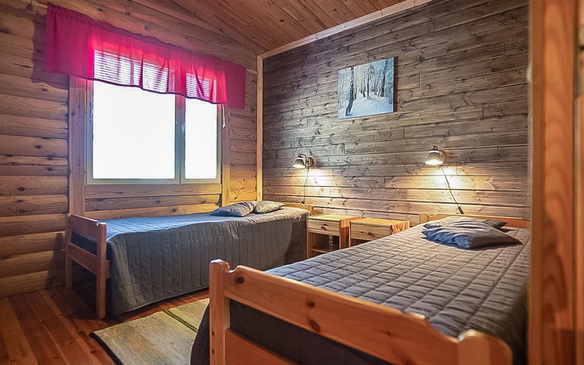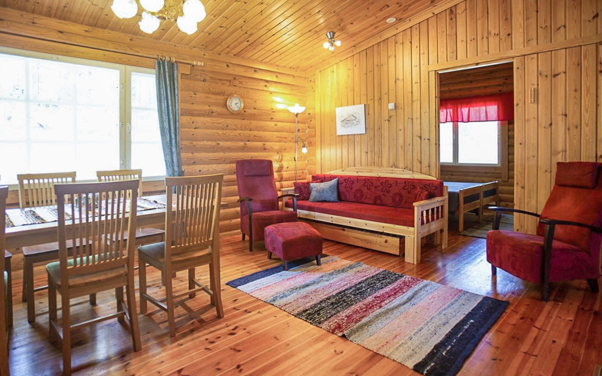 Log cabin 2000, living room/kitchen 2 extra beds, 2 bedrooms 2 beds in each, washroom, sauna, toilet.