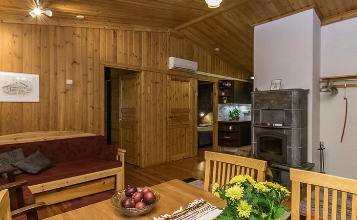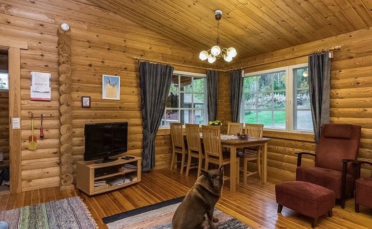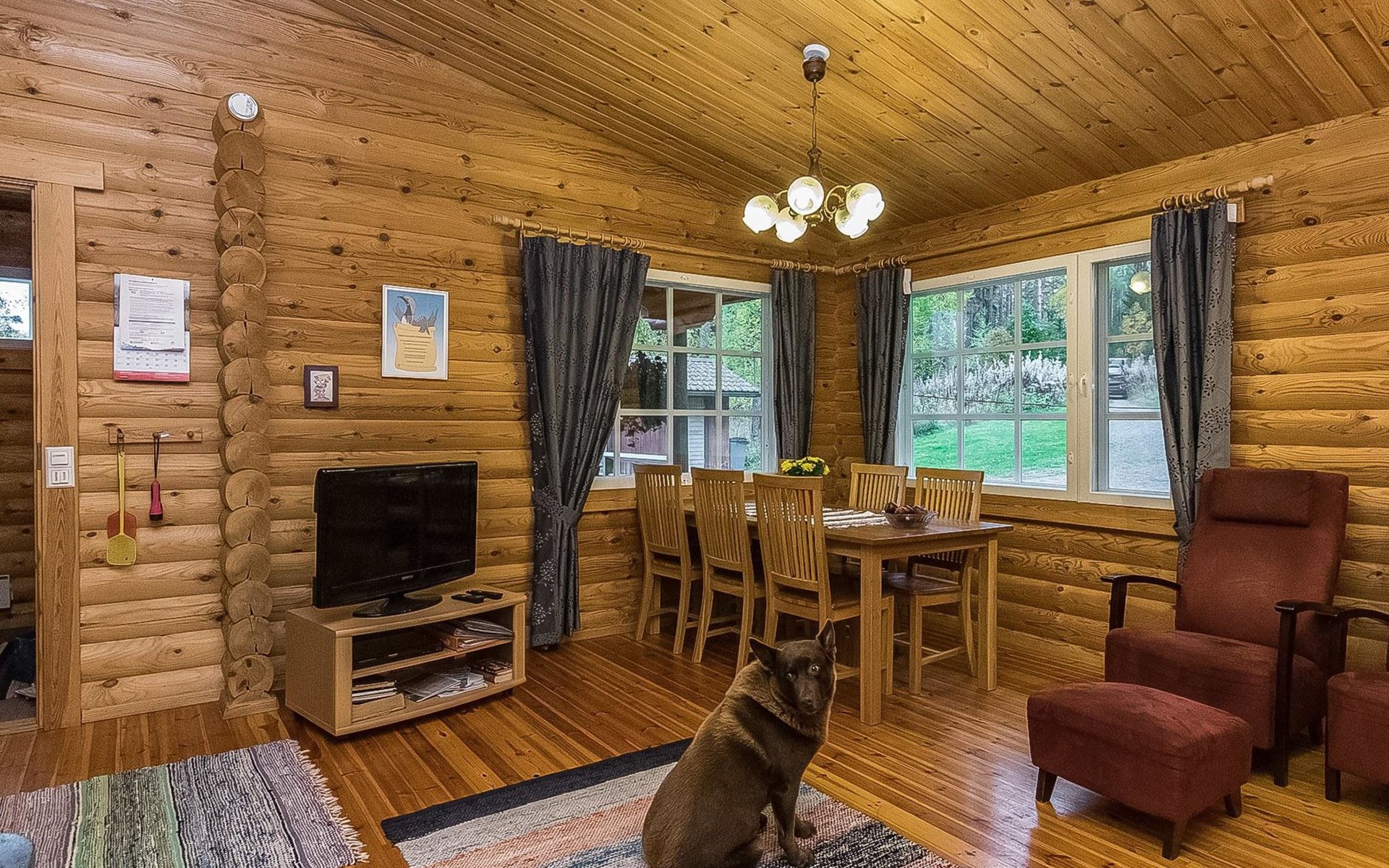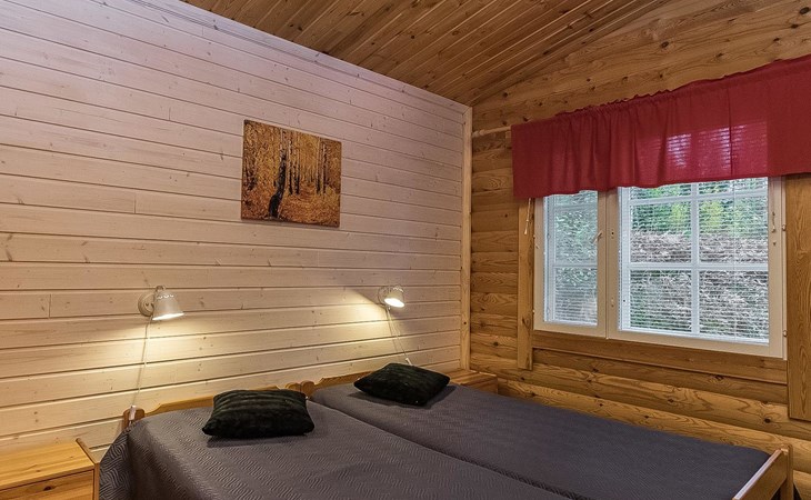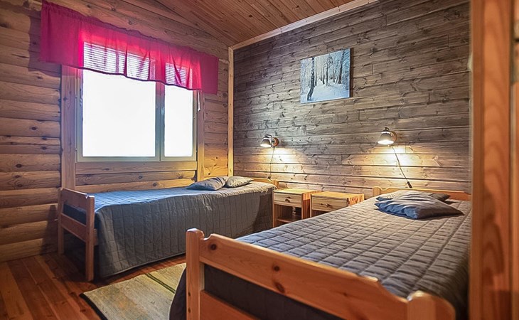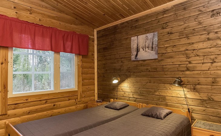 Log cabin 2000, living room/kitchen 2 extra beds, 2 bedrooms 2 beds in each, washroom, sauna, toilet.