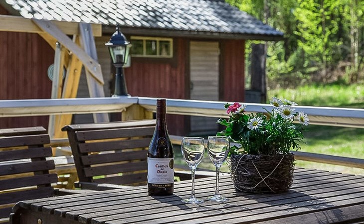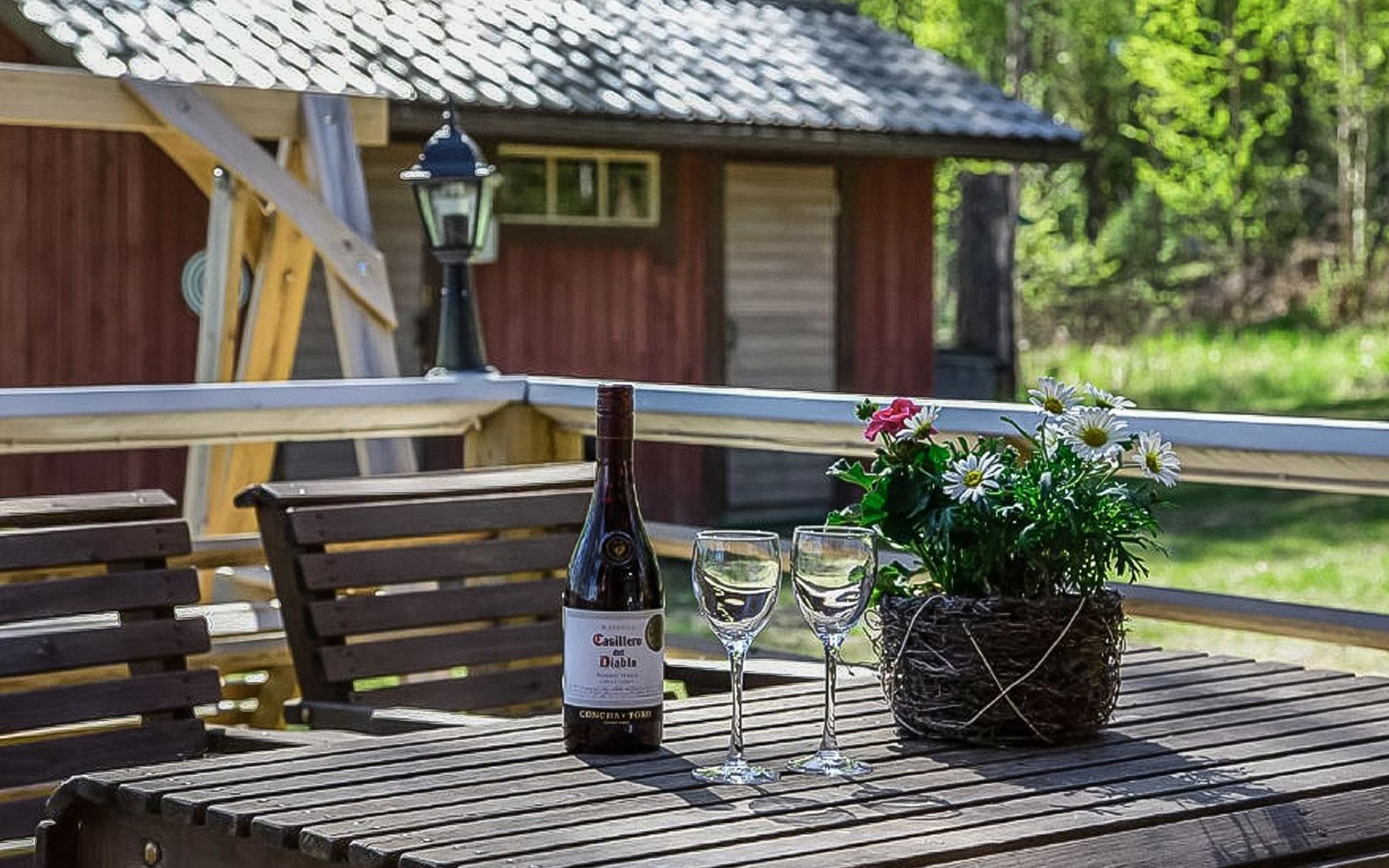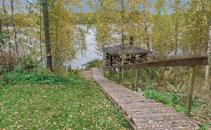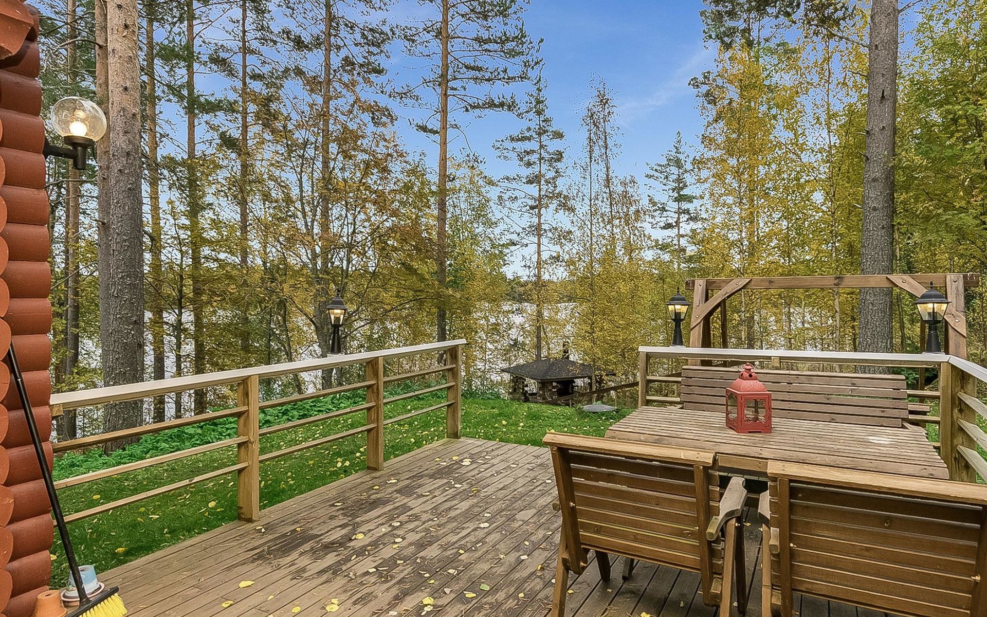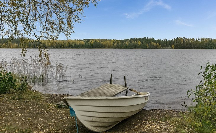 Kytöranta acquired its name due to its association with kytövuori hill and kytösuo mire, where land (so-called “kytö”) used to be burned over for cultivation purposes. The sun shines on Kytöranta’s terrace almost all day round. The cottage has a garden swing; the terrace has a table and a set of chairs, as well as a kettle grill for barbecues. Using the rowing boat, guests can fish for perch near the small island, then roast the catch on the grill on the shore. Right next to the cottage there is excellent berry and mushroom picking terrain, which is also ideal for rambling in general.