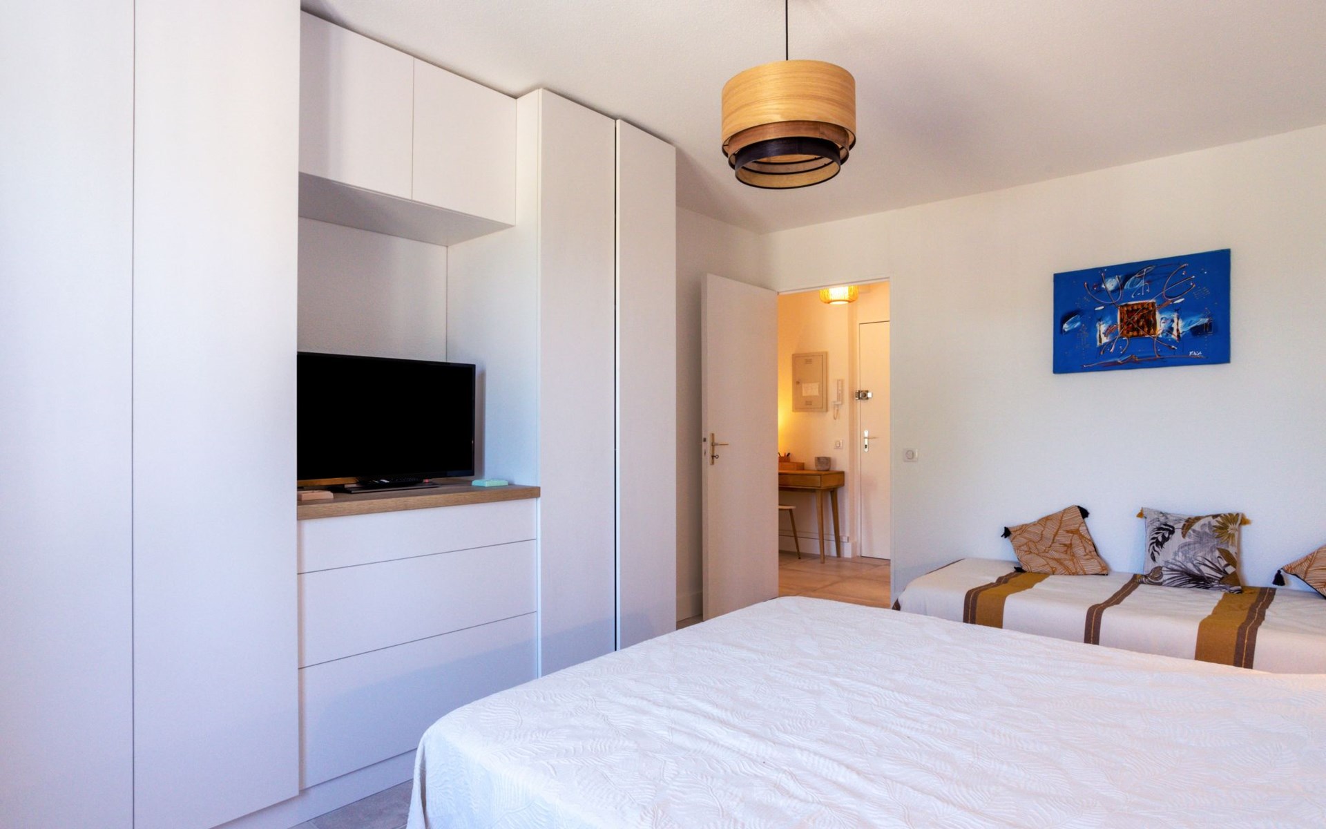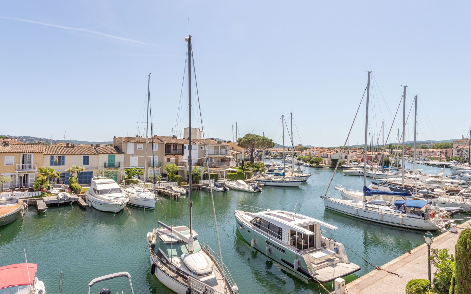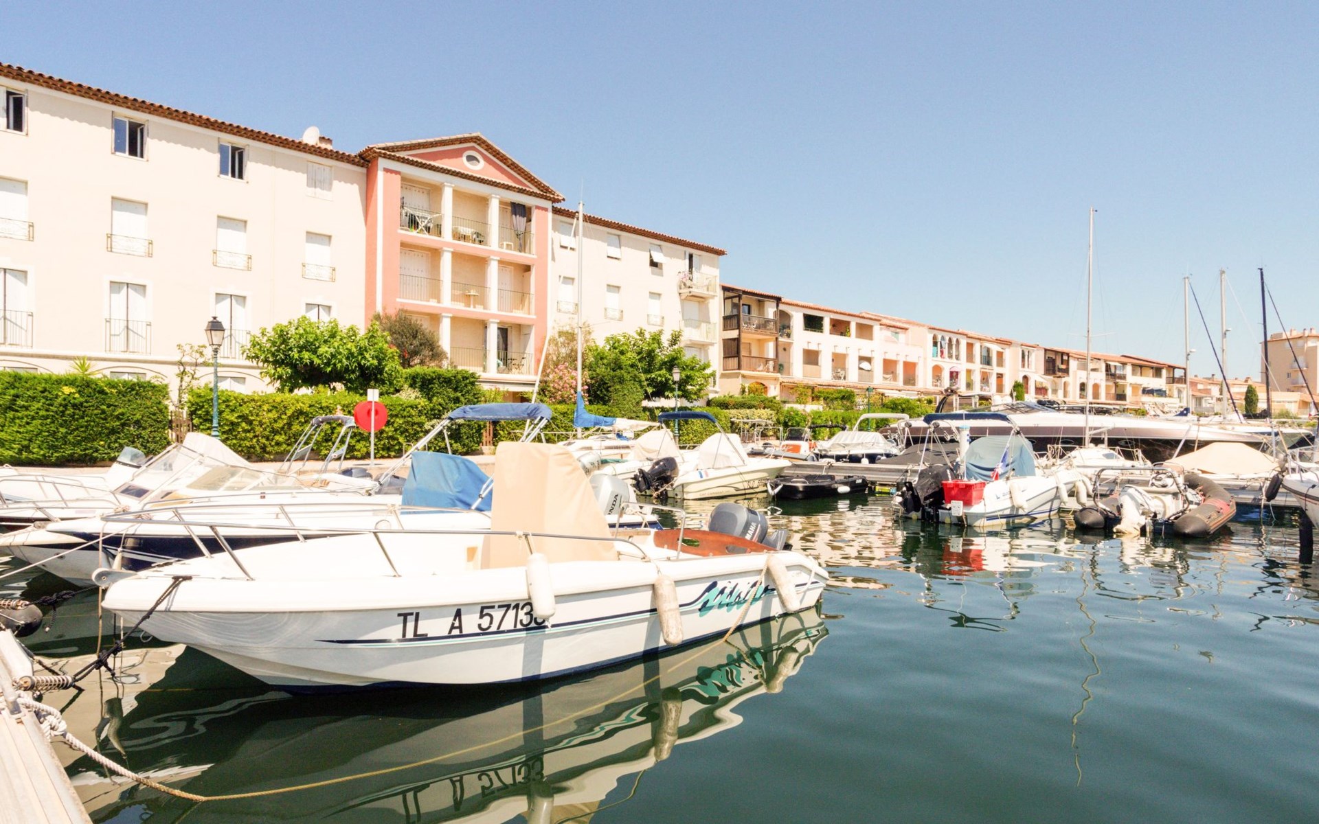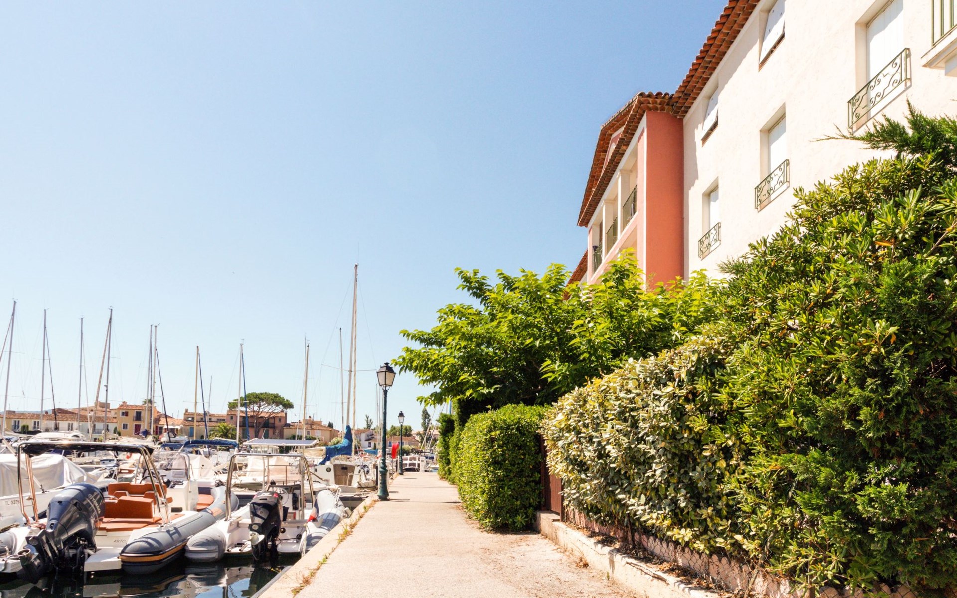 Apartment house "Rue de l'Amarrage". On the outskirts, 900 m from the centre of Port Grimaud, 800 m from the sea, 10 m from the canal. Shop 900 m, grocery 500 m, supermarket 2 km, restaurant 200 m, bakery 600 m, bus stop "La Foux" 1.6 km, sandy beach "Port Grimaud" 1 km. Marina 700 m, golf course (18 hole) 3 km. Nearby attractions: Parc d'attractions Azur Park 2 km, Saint Tropez 8 km, Sainte Maxime 8 km, Plages de Pampelonne 12 km, Cannes 80 km, Nice 110 km. Well-known lakes can easily be reached: Le Lac de Sainte Croix 90 km. Hiking paths: Massif de l'Esterel 50 km. Please note: car recommended, no lift. Main road 20 m from the property.
