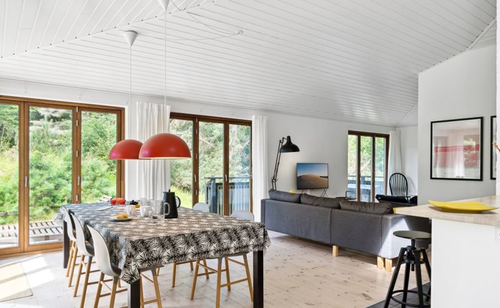 Single-family house, built in 2011. 250 m from the sea. Private: natural state property 1'800 m2. Terrace (40 m2). In the house: washing machine. Parking at the house. Grocery 500 m. Golf course 6 km. The owner does not accept any youth groups.
