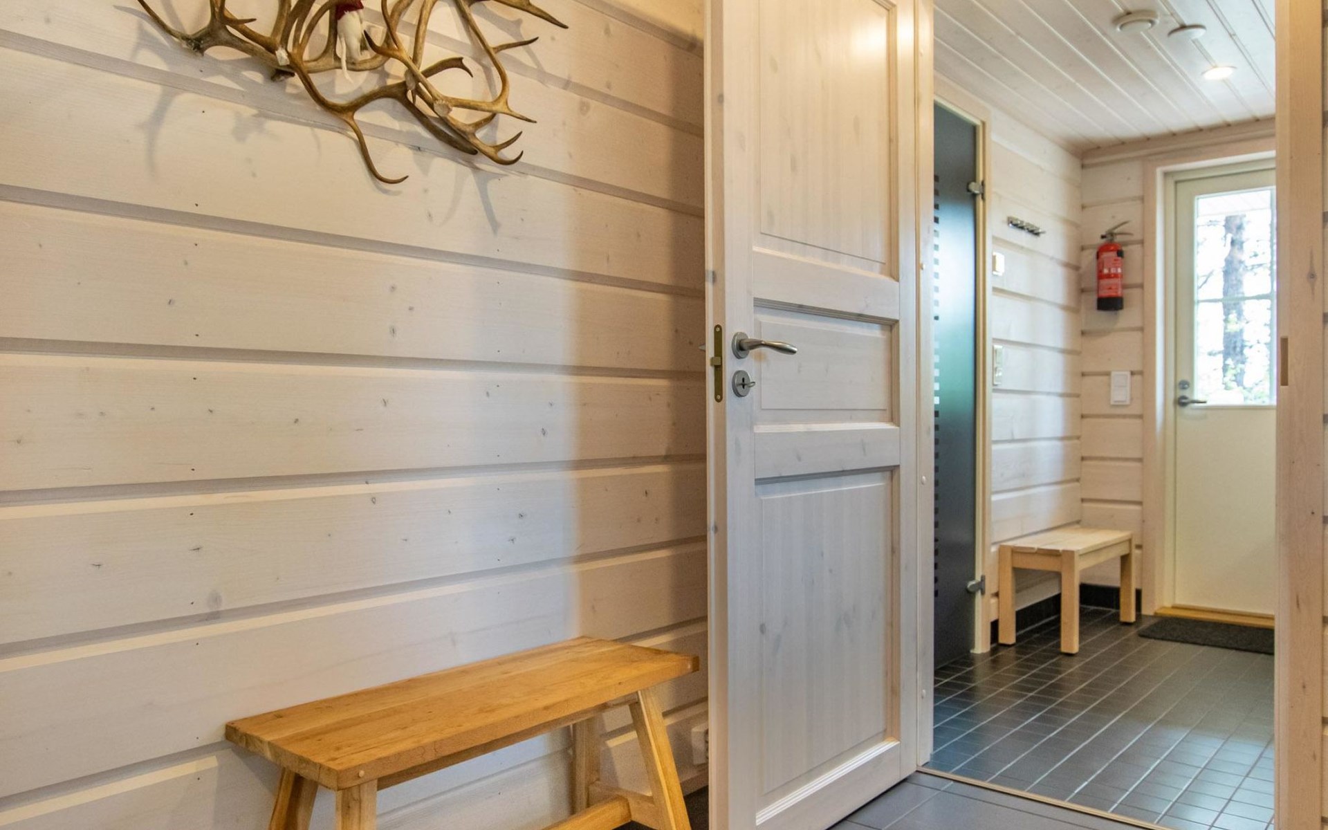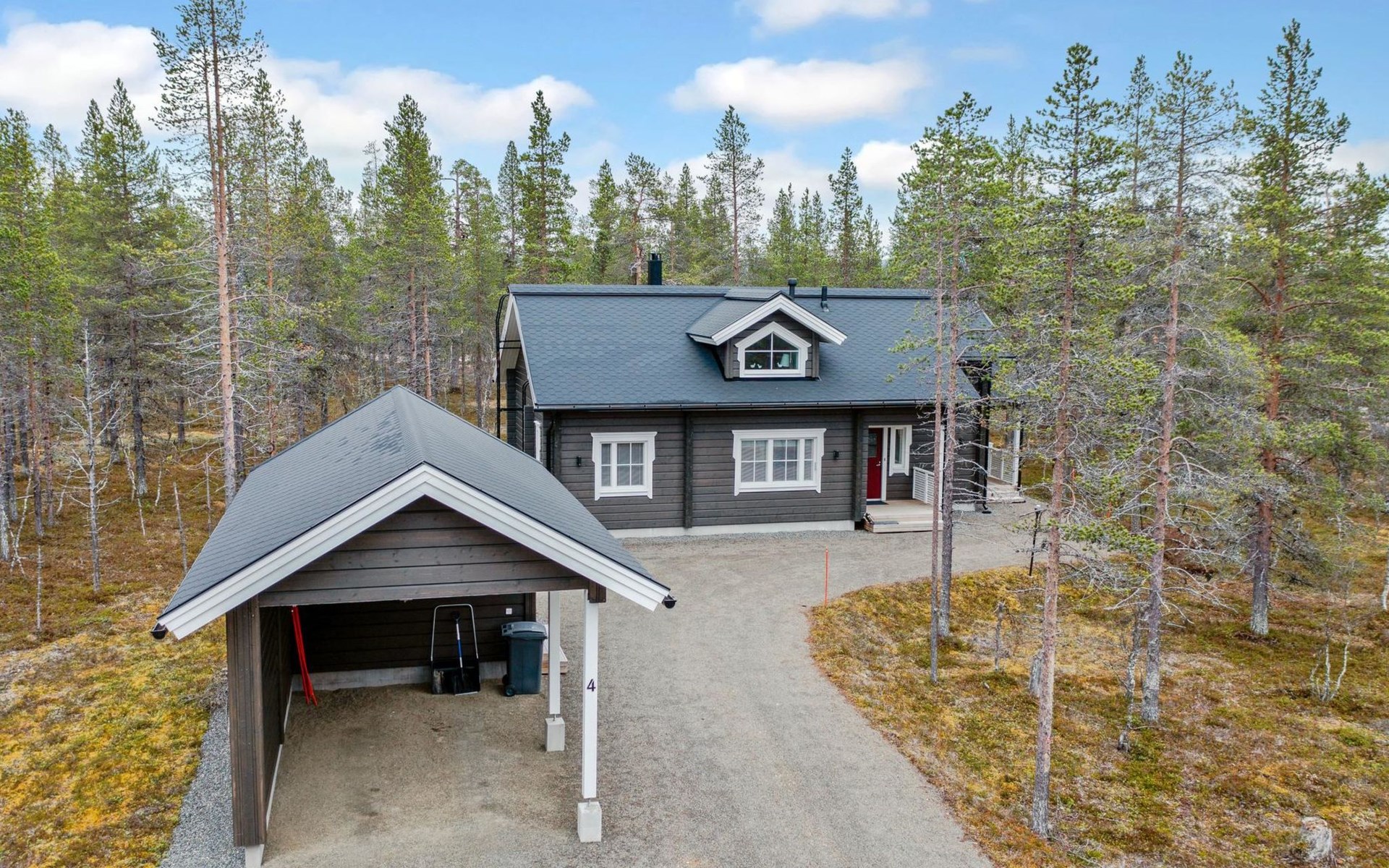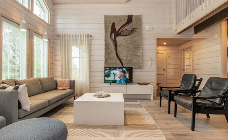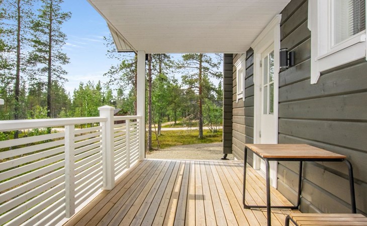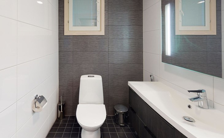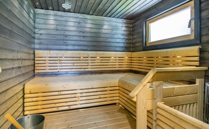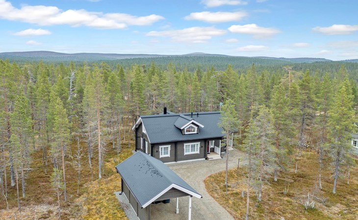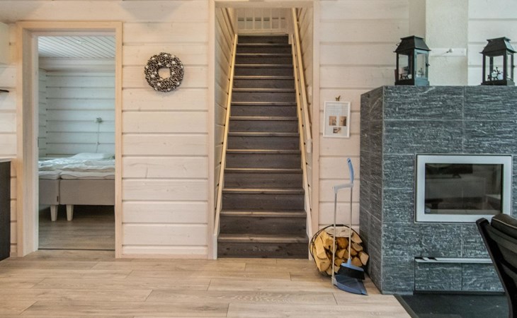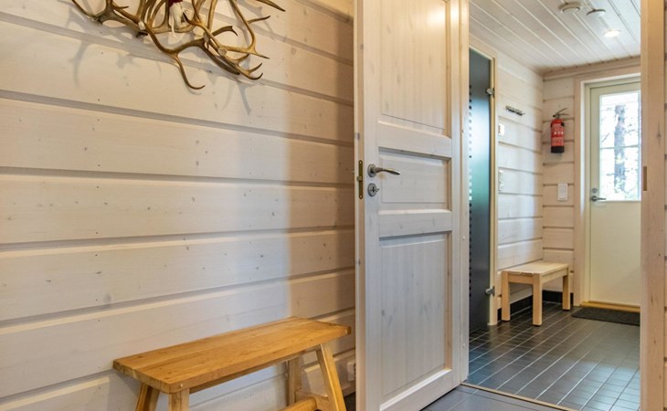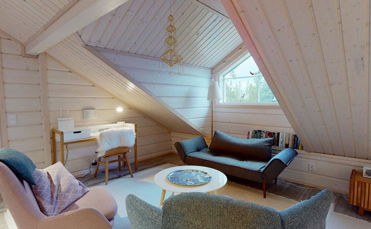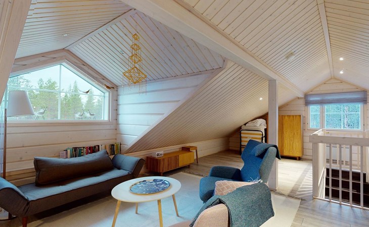 Washroom/toilet, sauna, toilet and terrace. Apartment area 109.5 m², of which 86 m² on the ground floor and 23.5 m² on the loft. In addition, a carport and a ski maintenance room with a ski lubrication rack and an iron.
