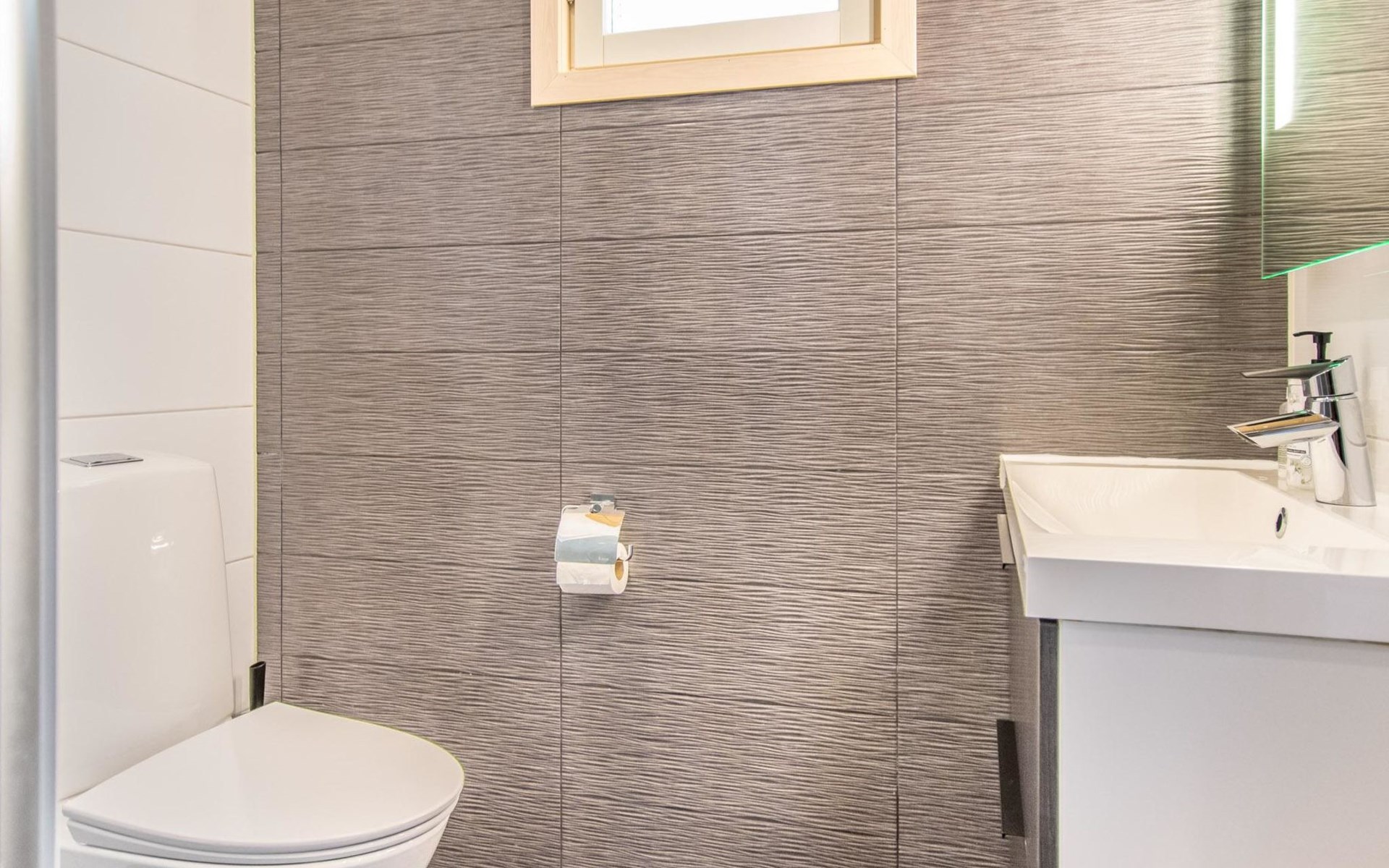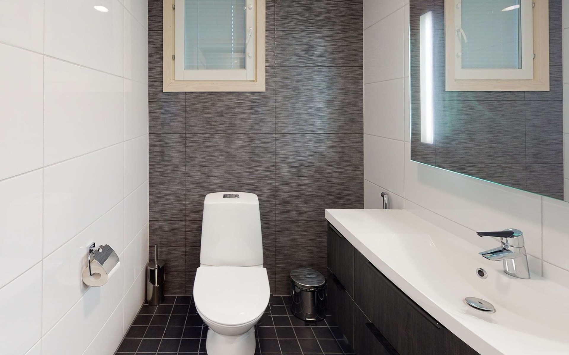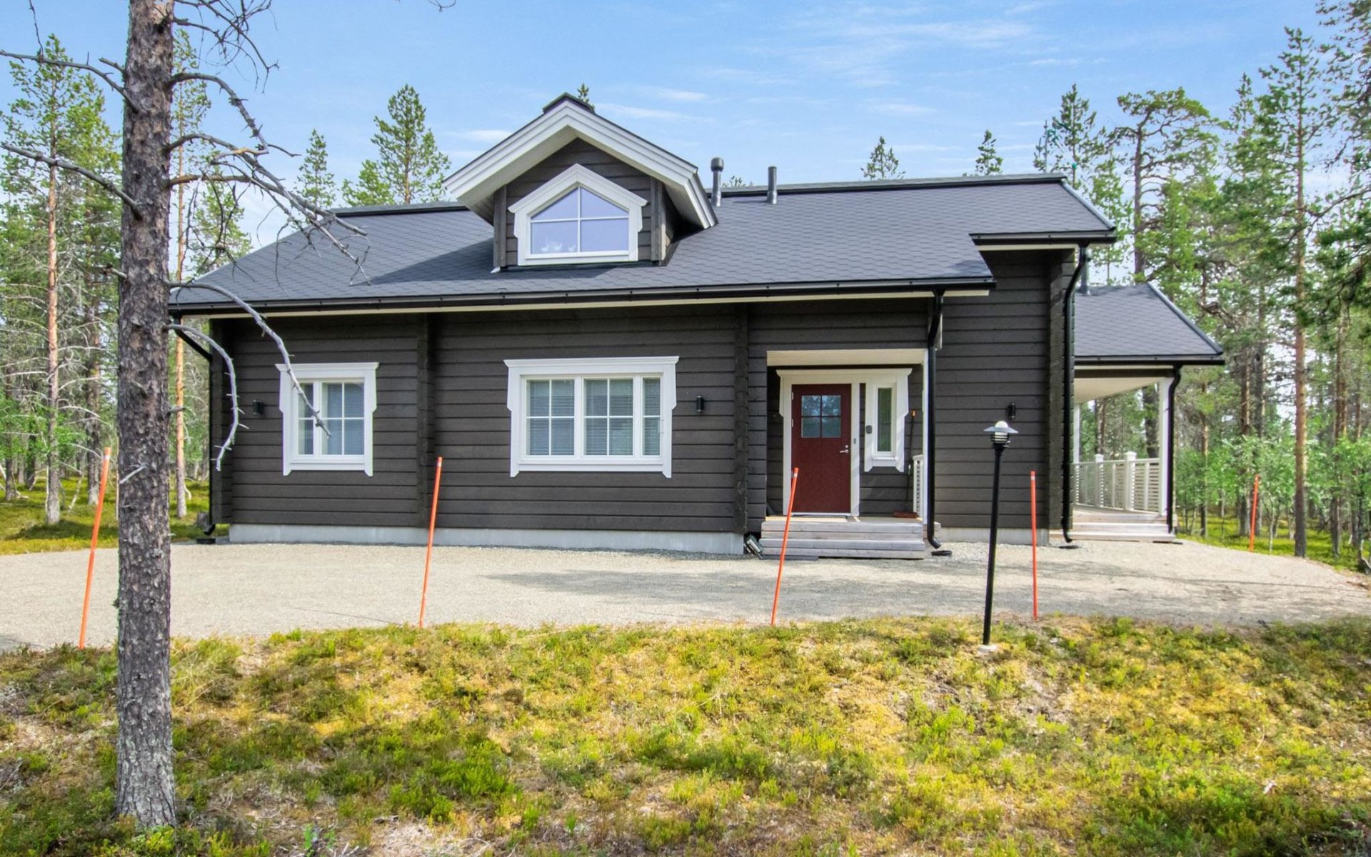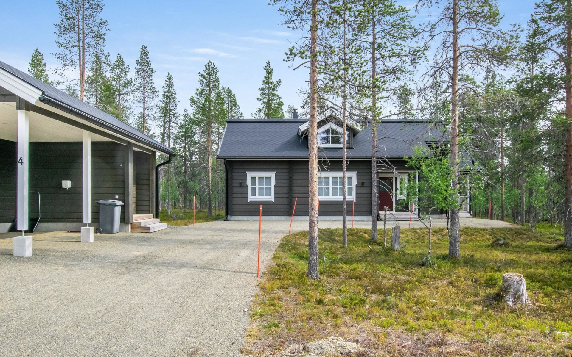 Washroom/toilet, sauna, toilet and terrace. Apartment area 109.5 m², of which 86 m² on the ground floor and 23.5 m² on the loft. In addition, a carport and a ski maintenance room with a ski lubrication rack and an iron.