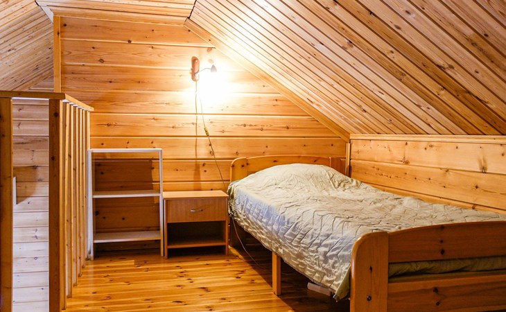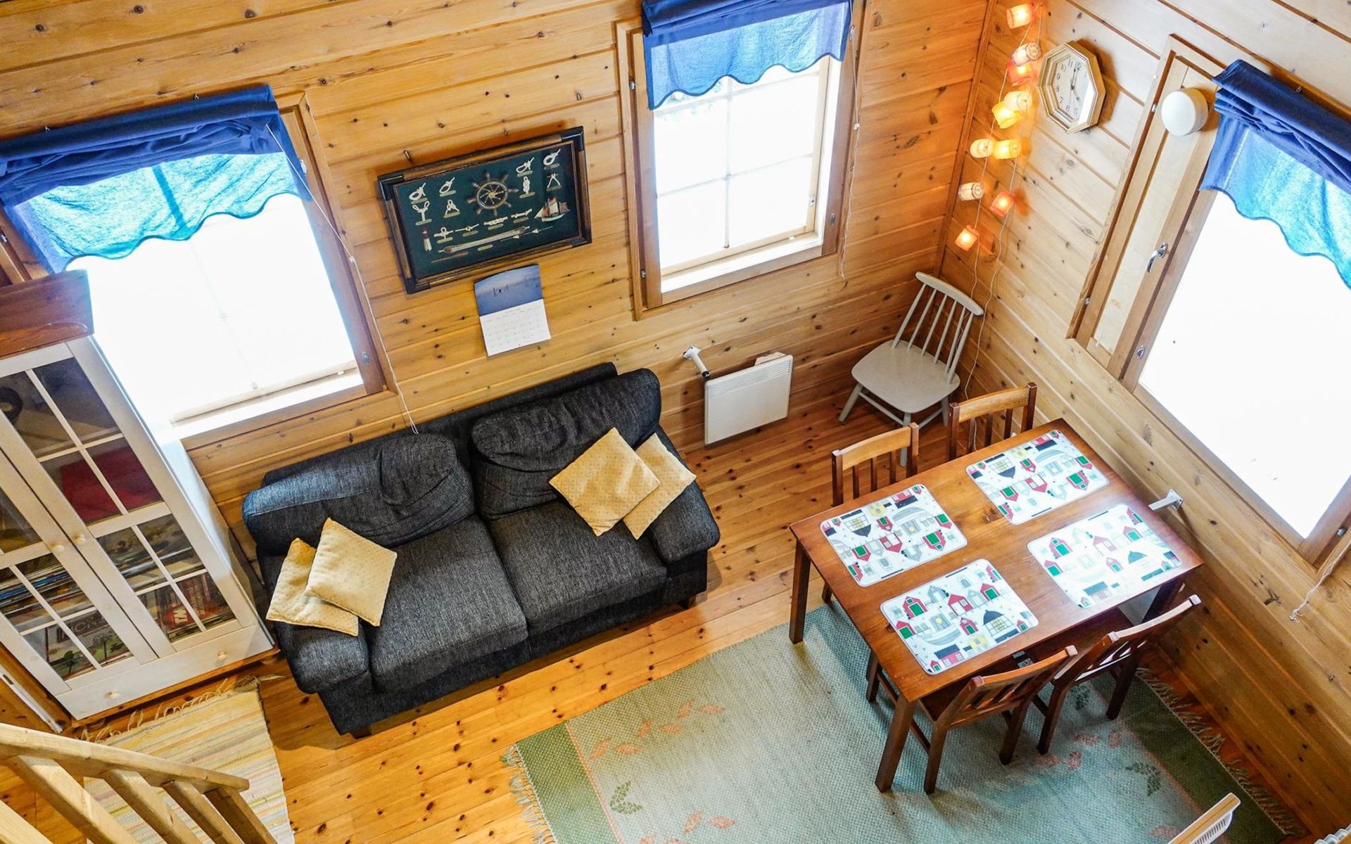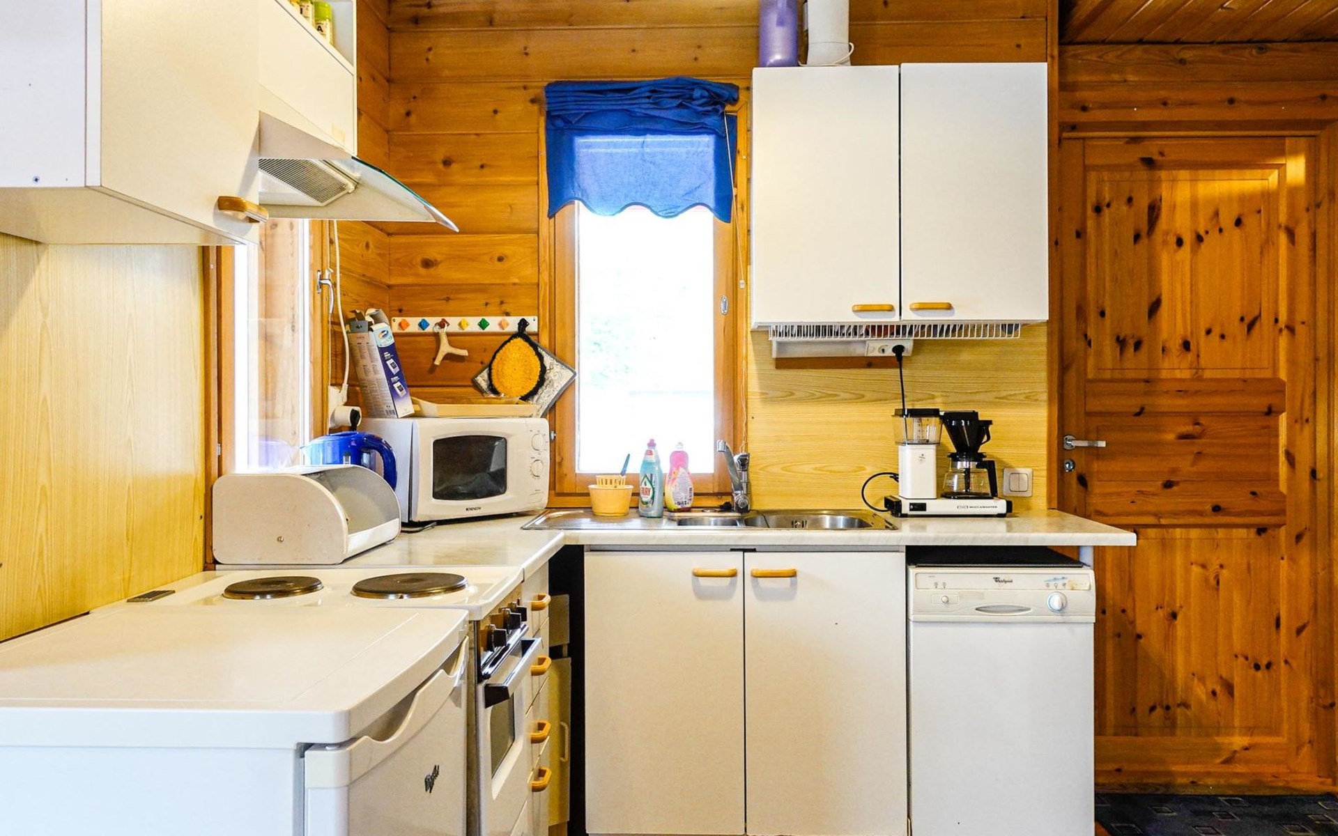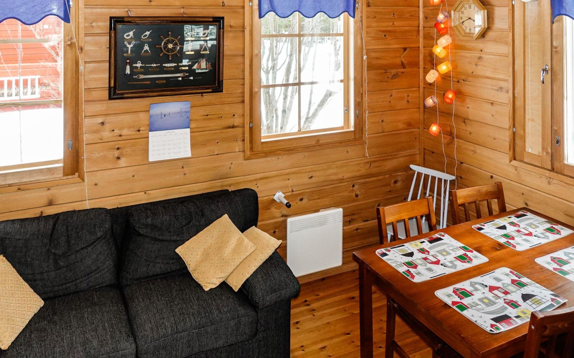 Log/panel cottage 2004, living room/kitchen, alcove 2 beds, low sleeping loft 2 beds, open porch (9 m²), washroom, sauna (electric stove).