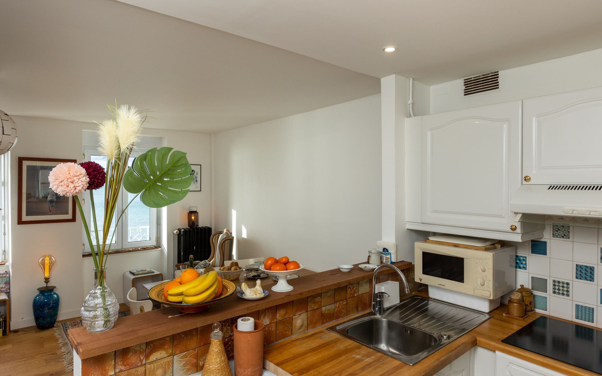 2-family house "L'émeraude", 2 storeys. In the centre of Cancale, in a central position, from the sea, 30 m from the beach. For shared use: terrace, garden furniture, single garage. Grocery 1.3 km, supermarket 13 m, restaurant 50 m, bakery 50 m, café, bus stop "place de l'église" 1.3 km, railway station "La Gouesnière" 17 km, sandy beach "Port Mer" 5 km, thermal baths "Thermes marins de St Malo" 14 km. Sports harbour 150 m. Nearby attractions: Grand aquarium de St Malo 17 km, Saint Malo intramuros 16 km, Dinan 35 km, Dinard 21 km, Dol de Bretagne 20 km, Le Mont St Michel 47 km.