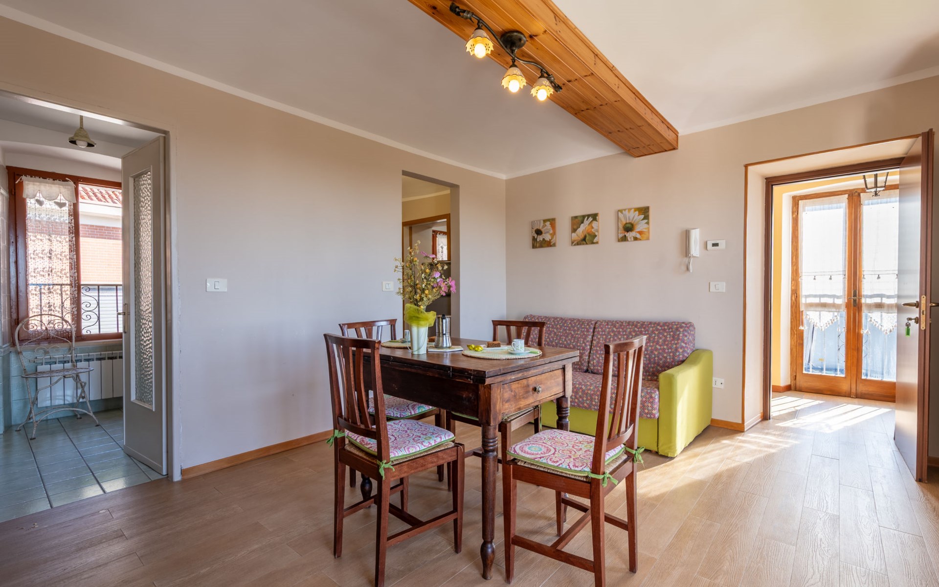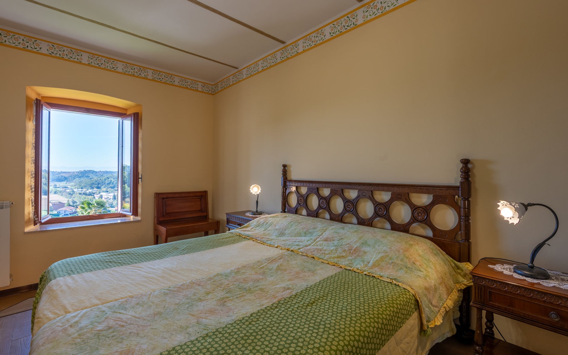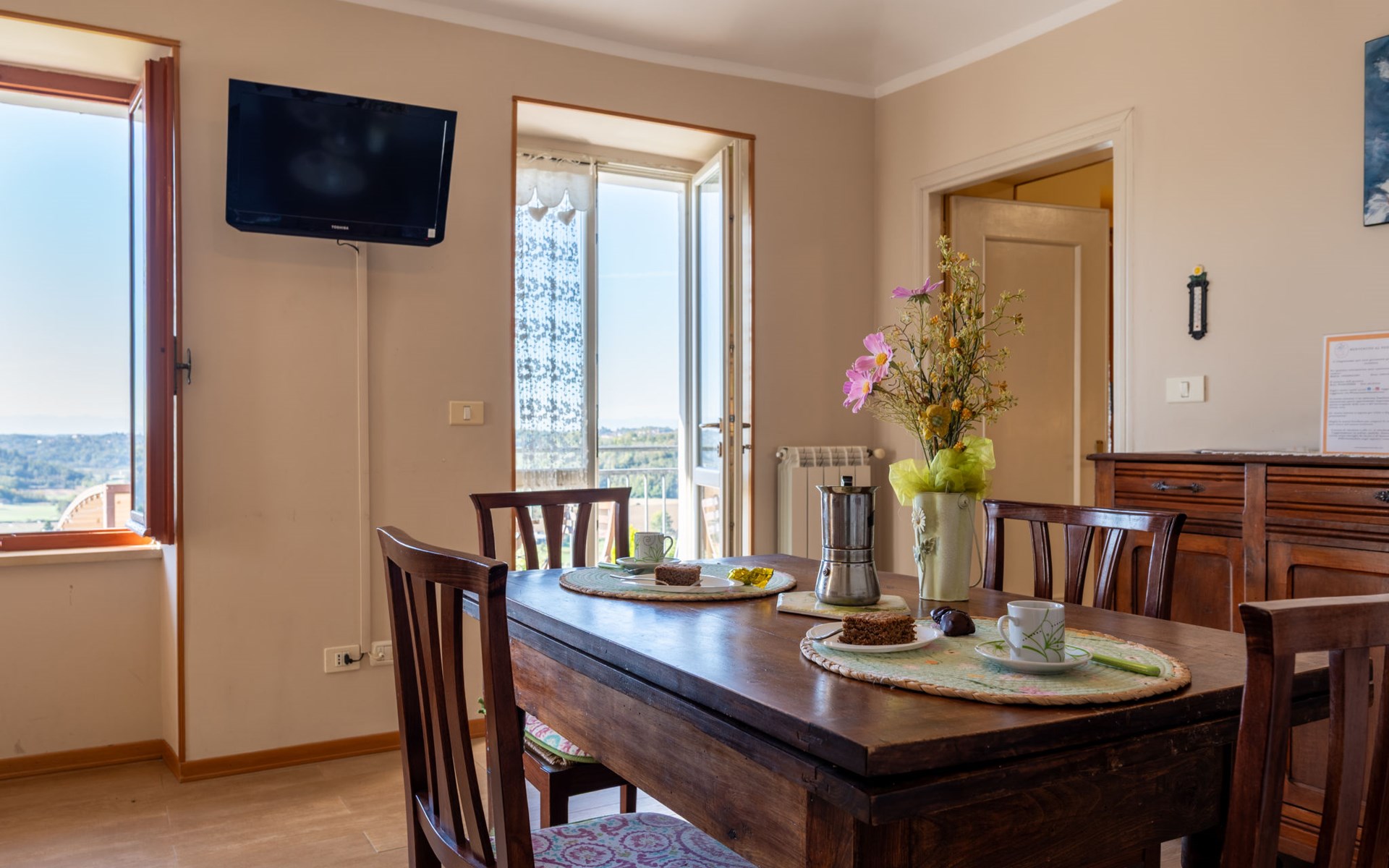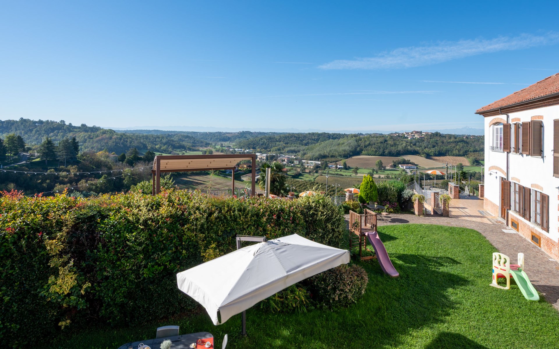 On a vinyard "Il Pozzo Fiorito", surrounded by fields and vineyards. 5 apartments in the residence. 100 m from the centre of Cossombrato, 14 km from the centre of Asti, 45 km from the centre of Turin. For shared use: property 1'200 m2 (fenced), well-kept garden with lawn, swimming pool (8 x 4 m, depth 150 cm, seasonal availability: 26.Apr. - 10.Oct.). Shower/WC in the pool area, outdoor shower, table tennis, pergola, terrace, garden furniture, barbecue. In the complex: fitness room (extra). Washing machine (for shared use, extra), bicycles available (extra). Parking at the house on the premises. Supermarket 1 km, bus stop 100 m, railway station "Asti" 14 km. Local sale of farm products. Please note: the owner lives on the same property.