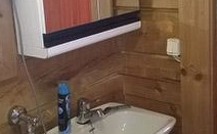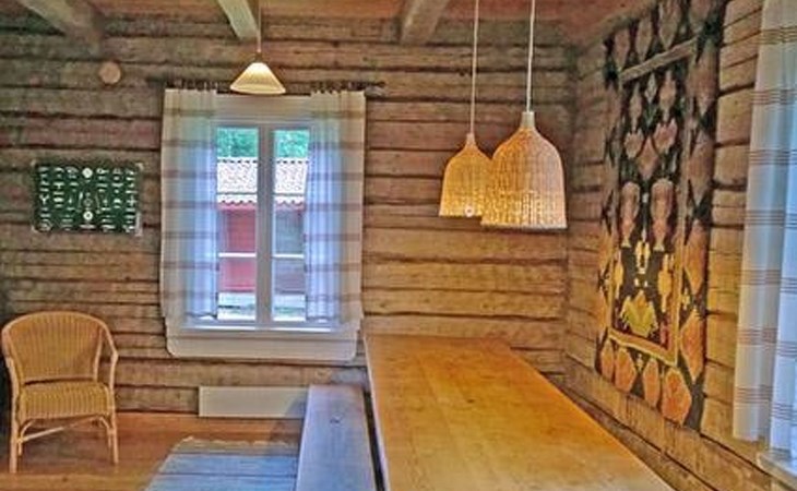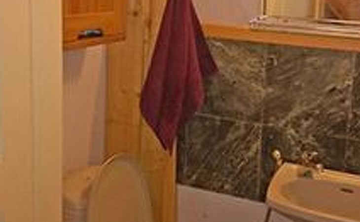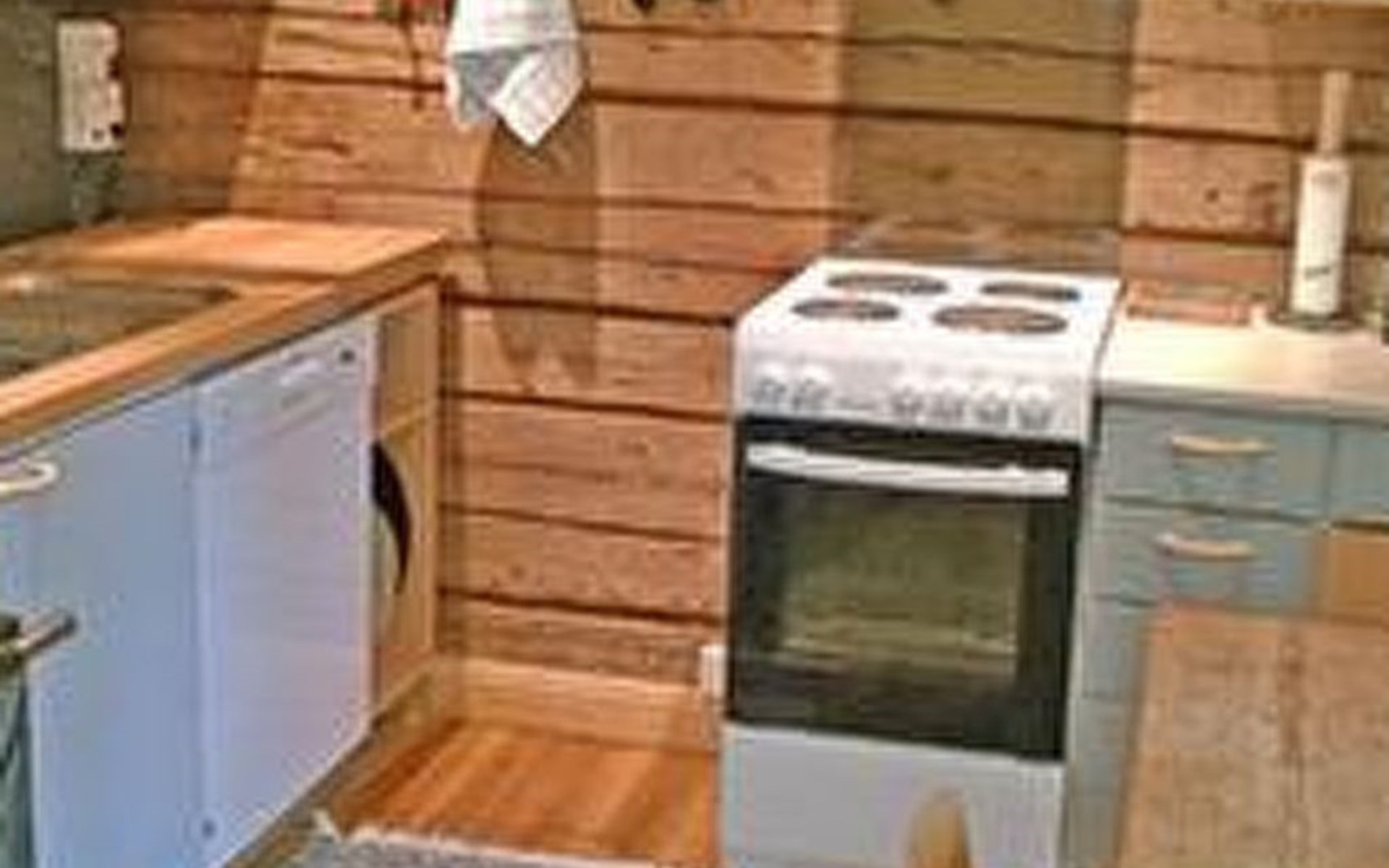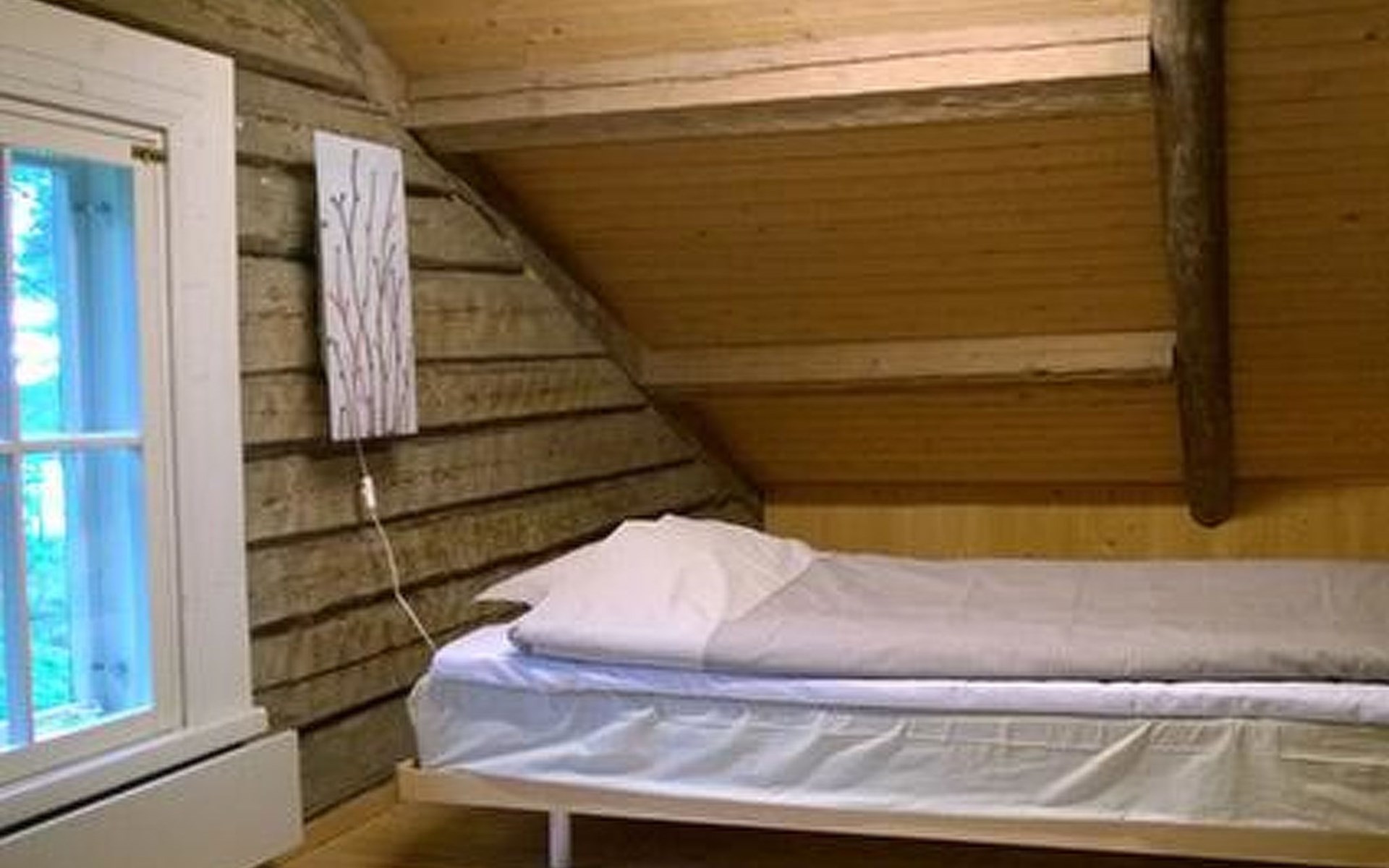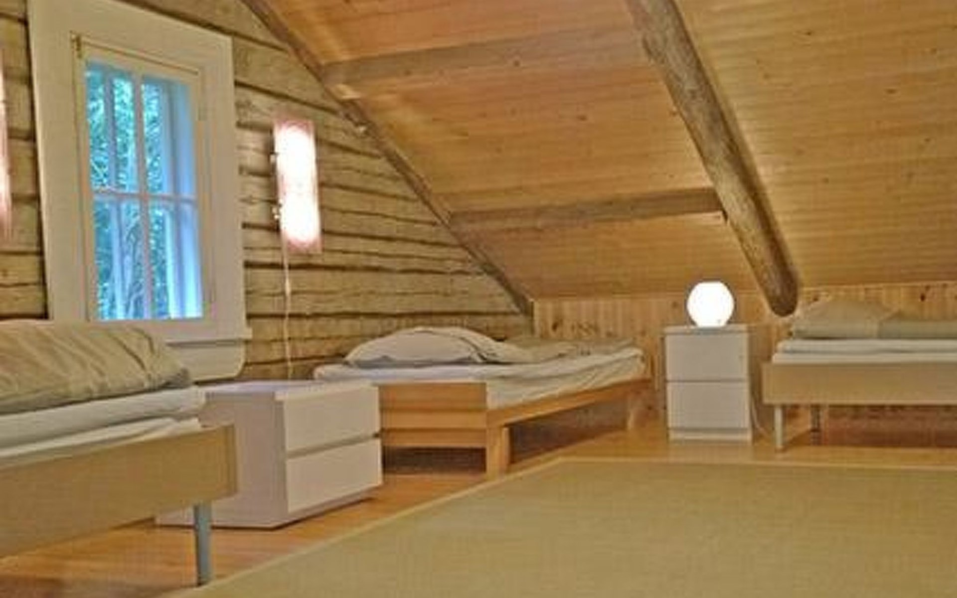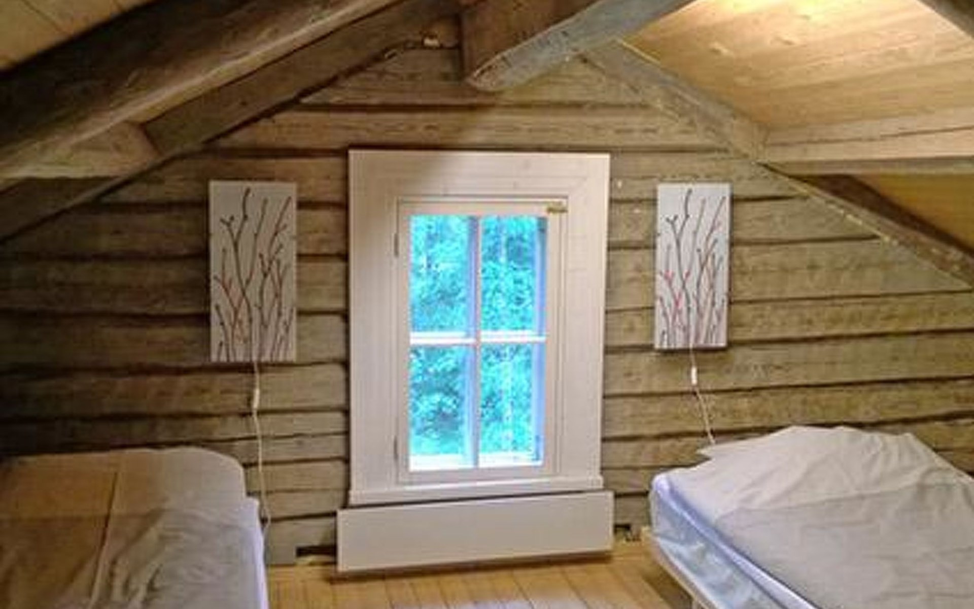 Log cottage 1986, living room/kitchen, bedroom 2 beds, upstairs 2 sleeping alcoves closed off by curtains, 3 beds in each (exceptionally in this property, alcoves are included in the number of bedrooms). Additionally 2 extra beds upstairs glazed and open porch.