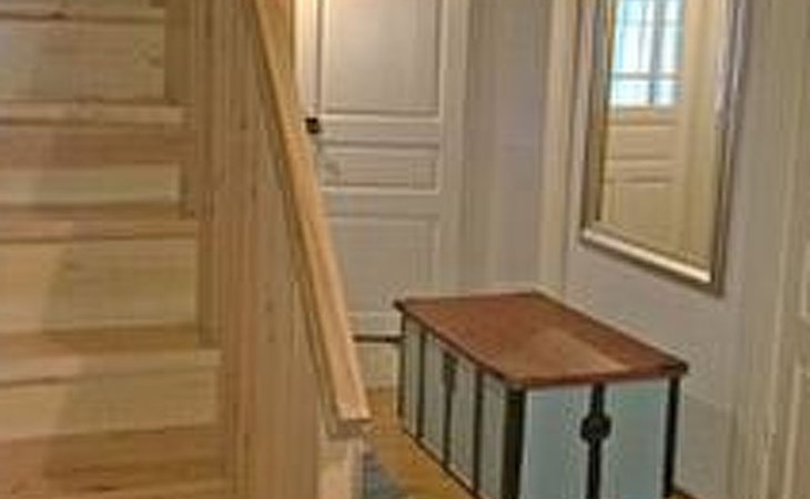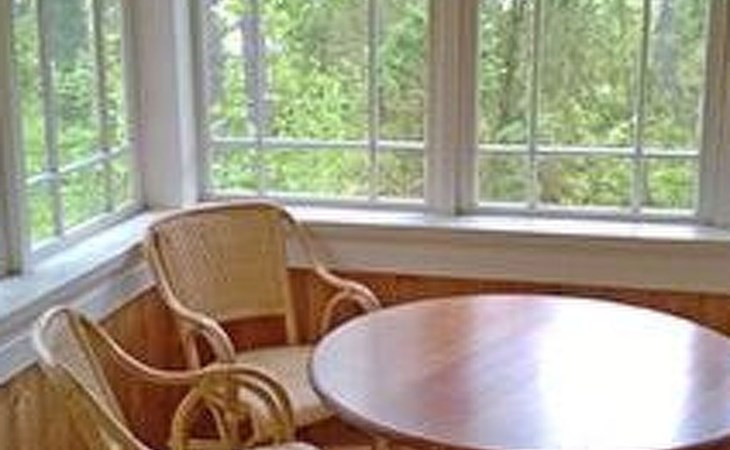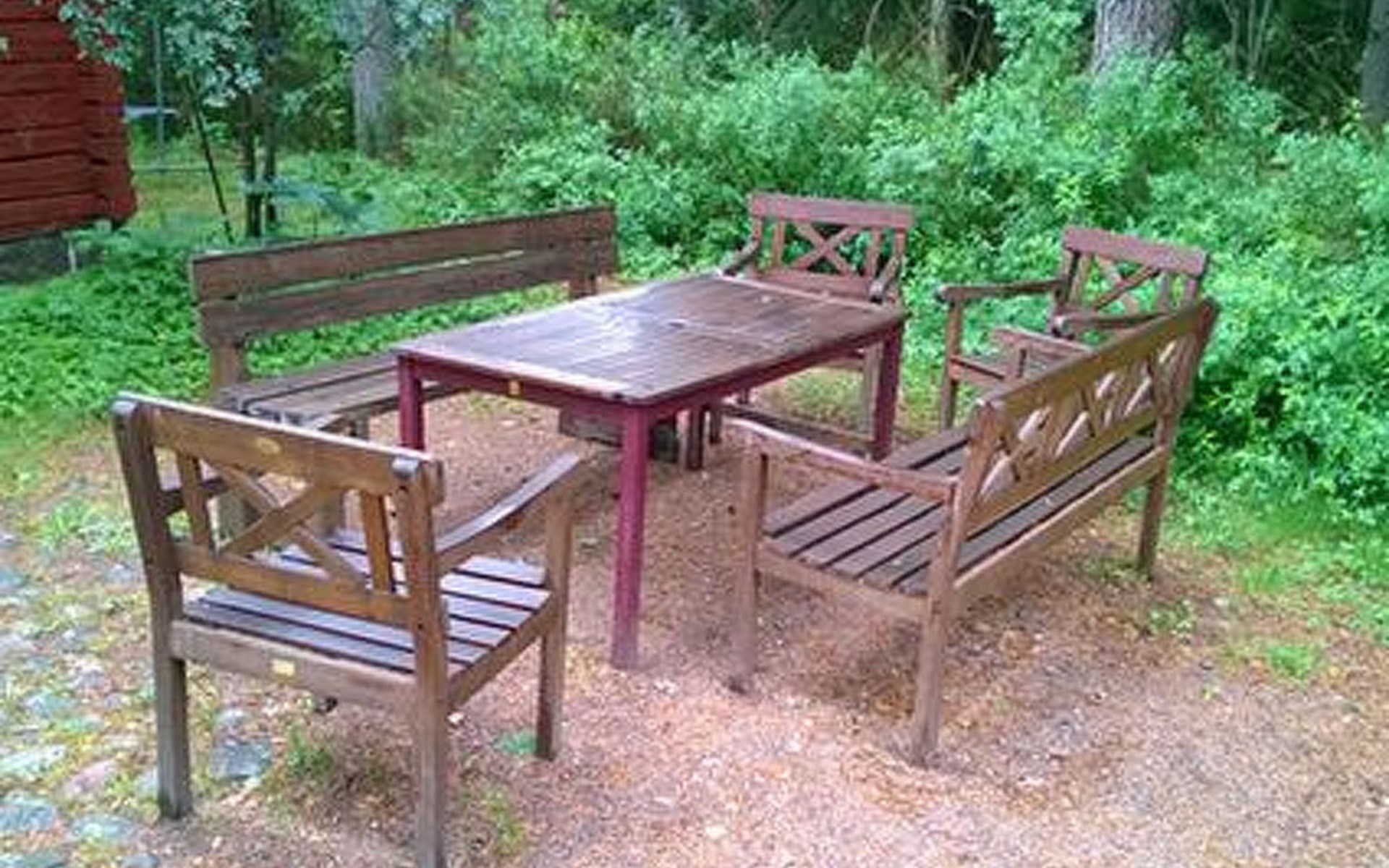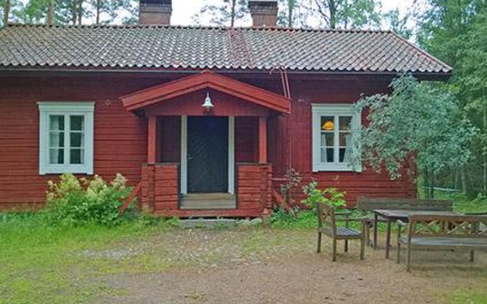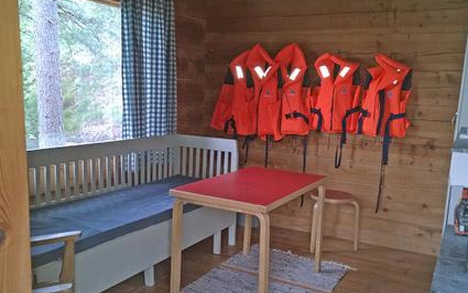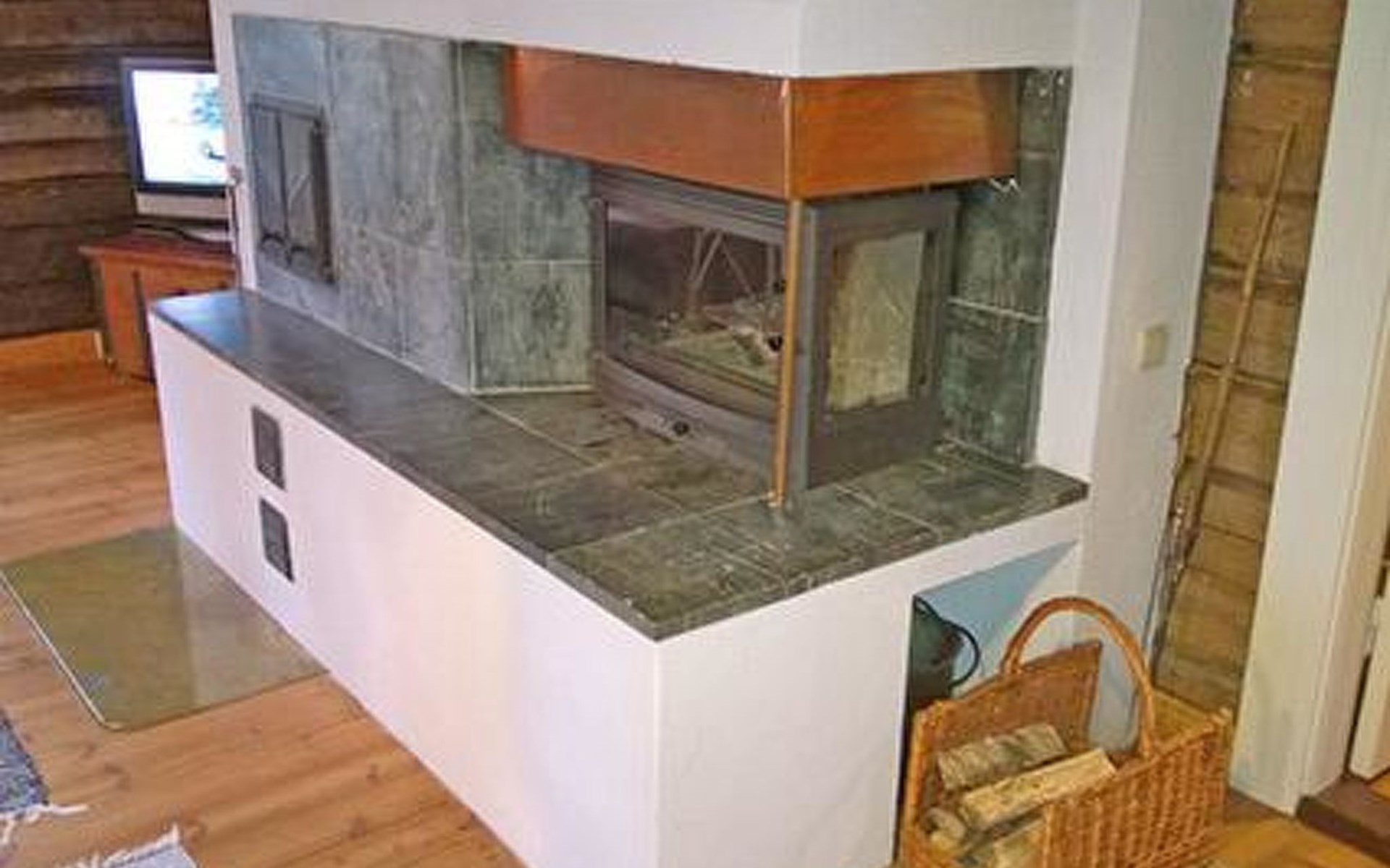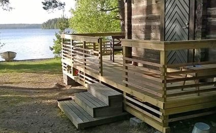 Log cottage 1986, living room/kitchen, bedroom 2 beds, upstairs 2 sleeping alcoves closed off by curtains, 3 beds in each (exceptionally in this property, alcoves are included in the number of bedrooms). Additionally 2 extra beds upstairs glazed and open porch.