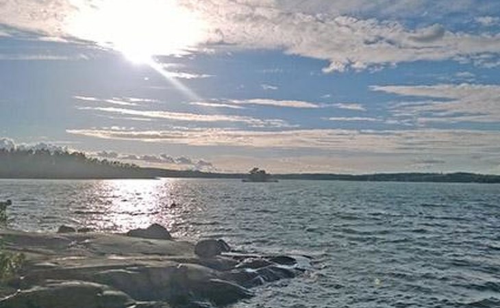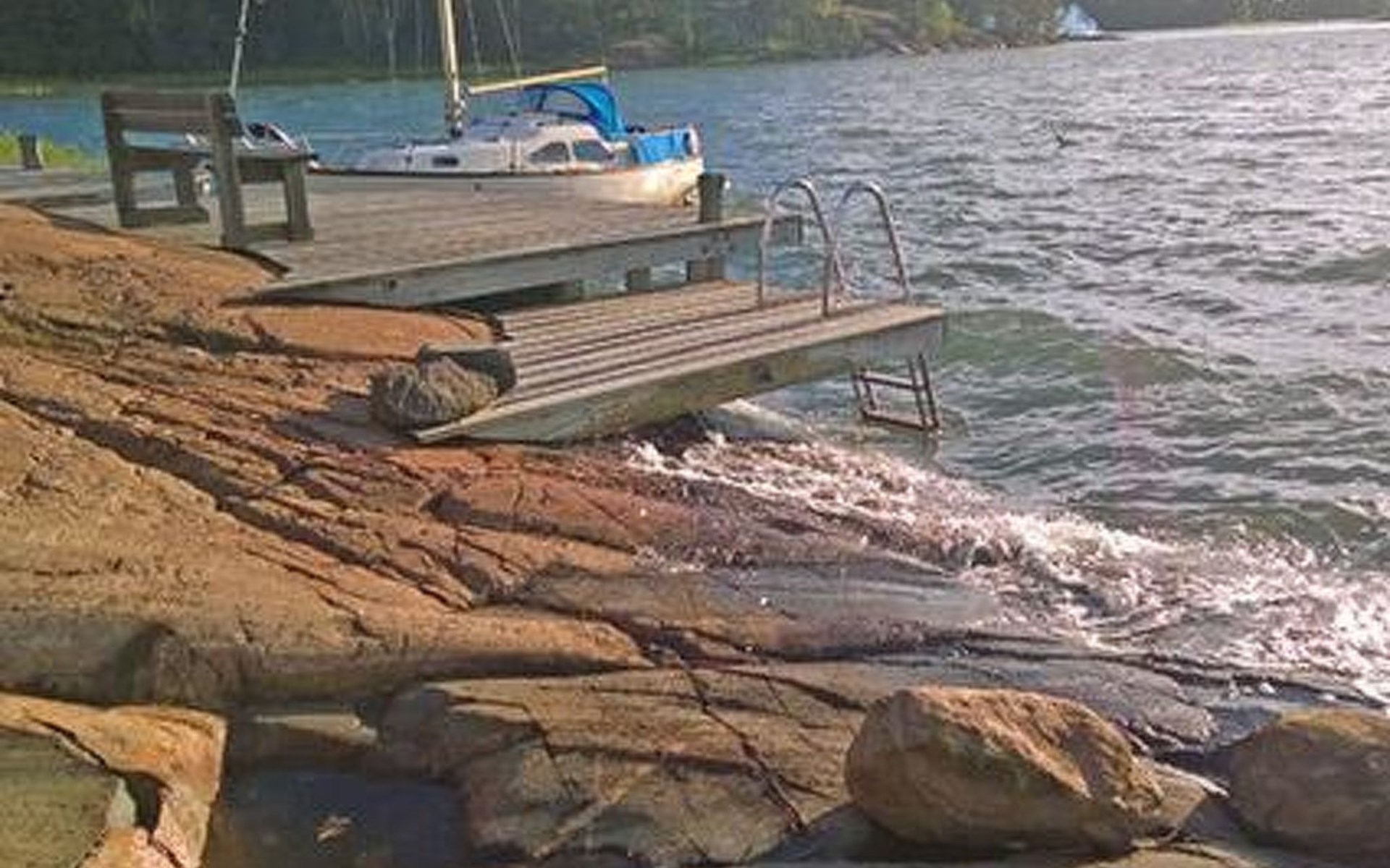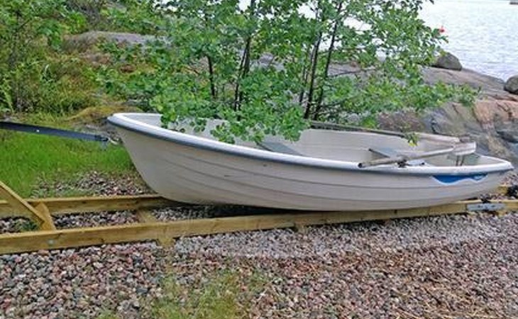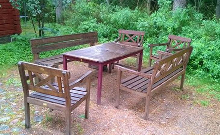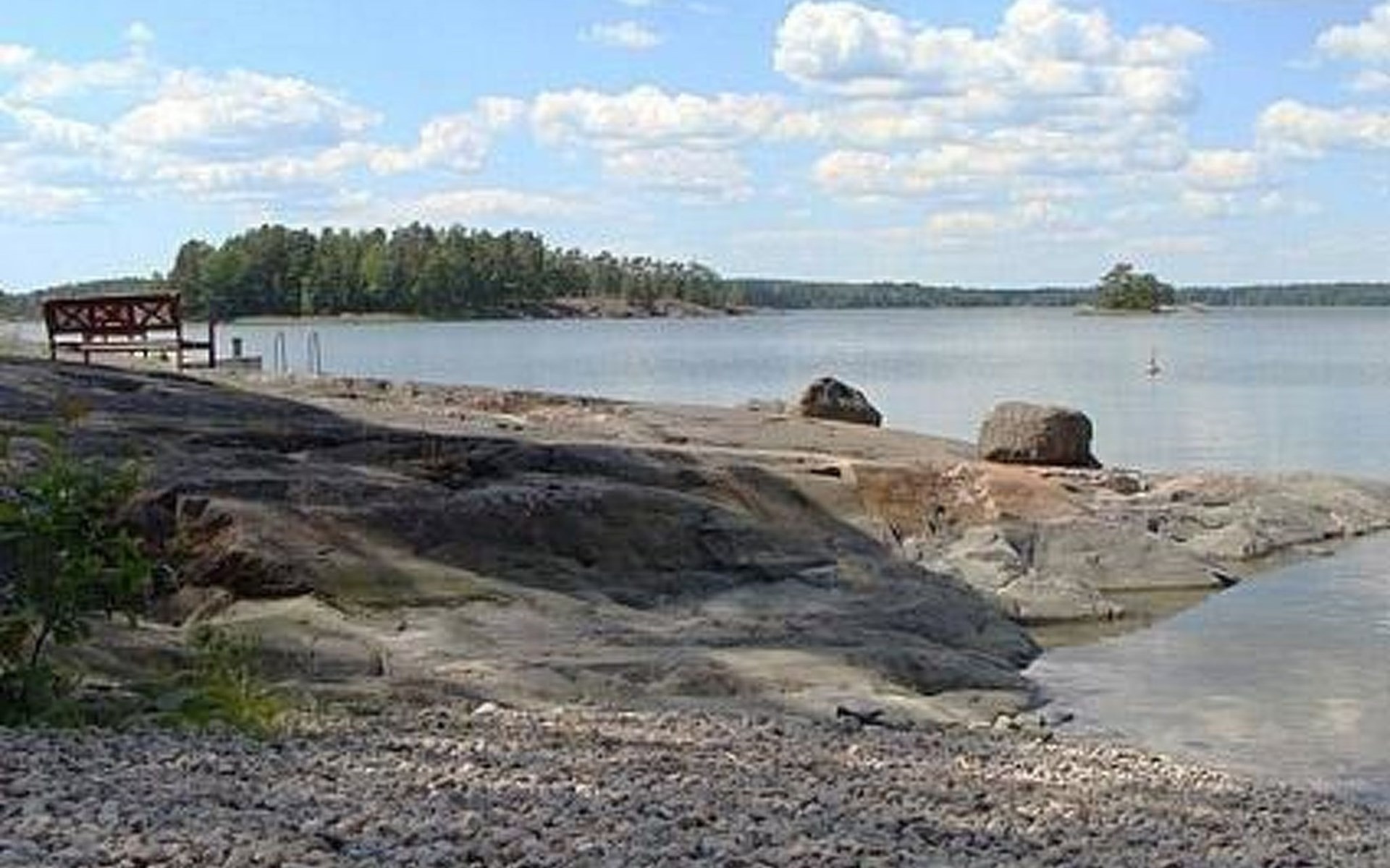 Separate seashore sauna with washroom and room with fireplace. Washing machine is in the sauna building.