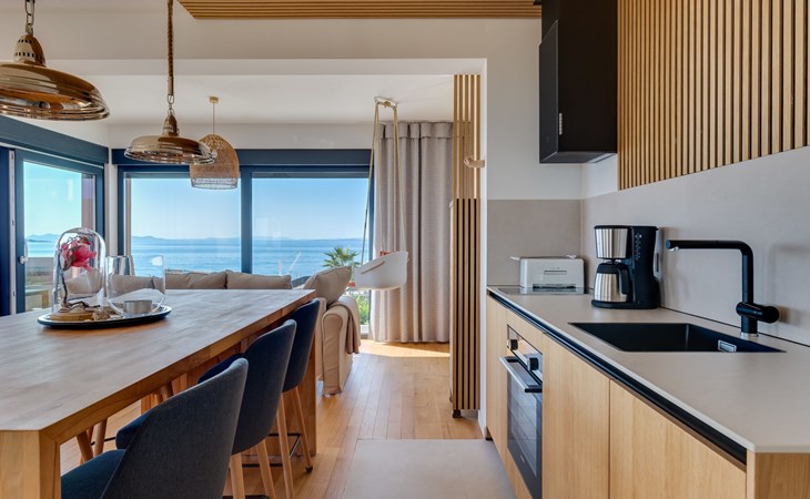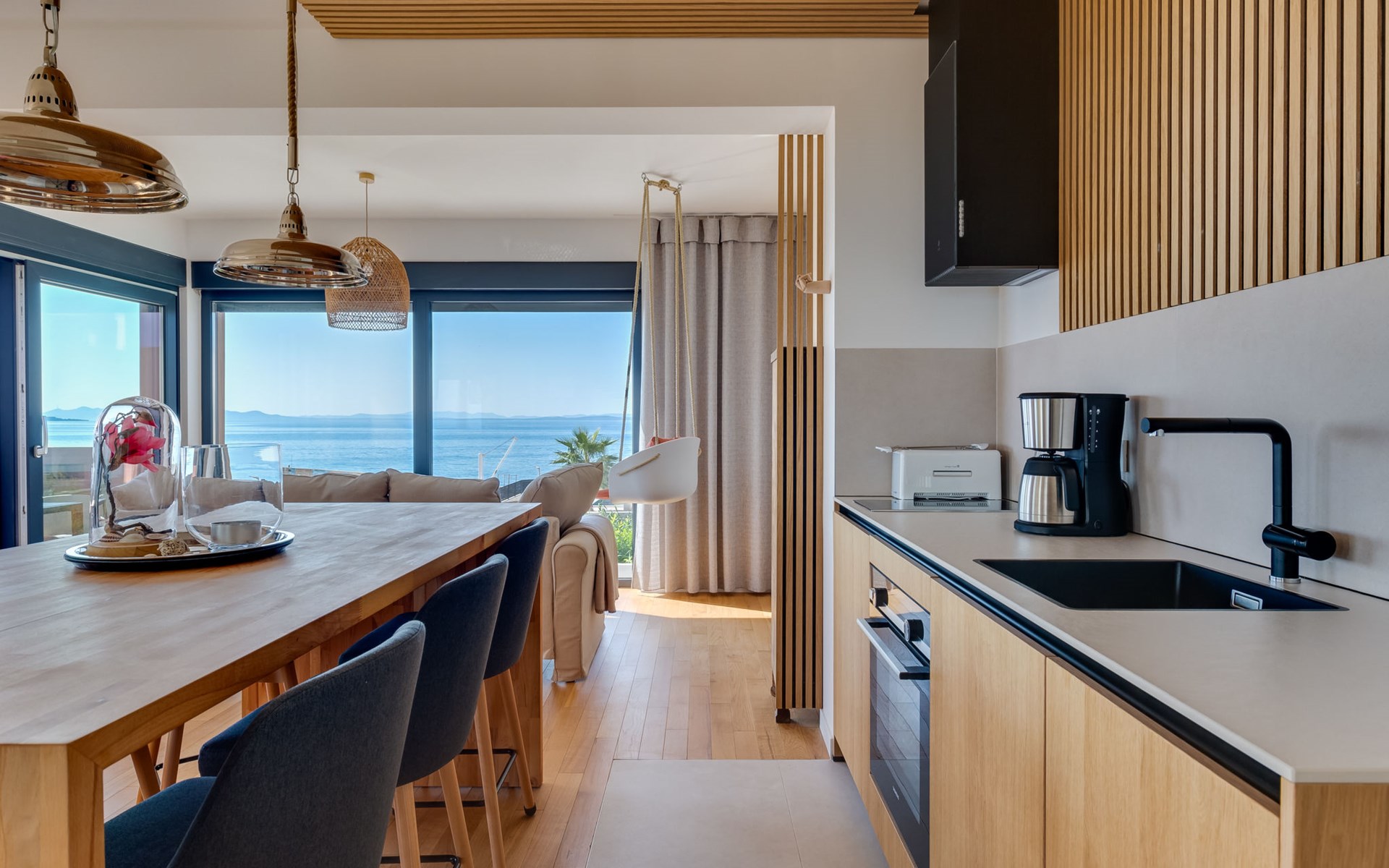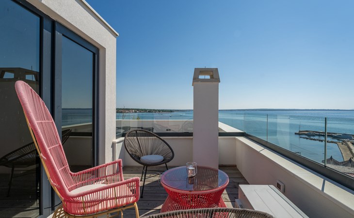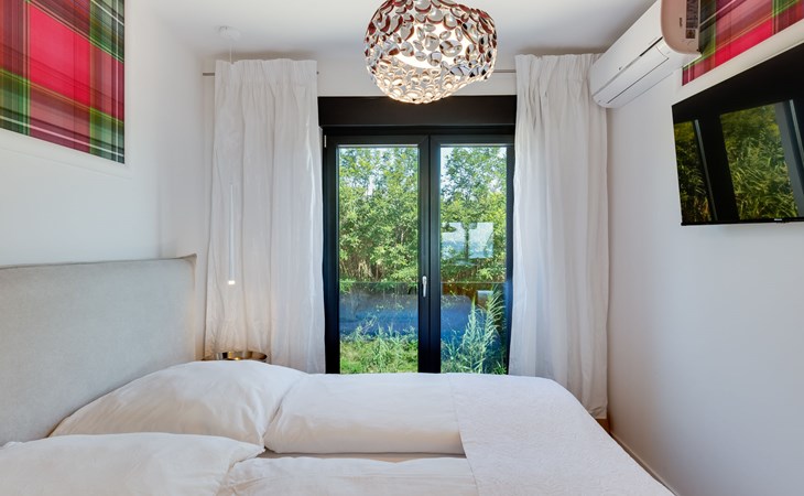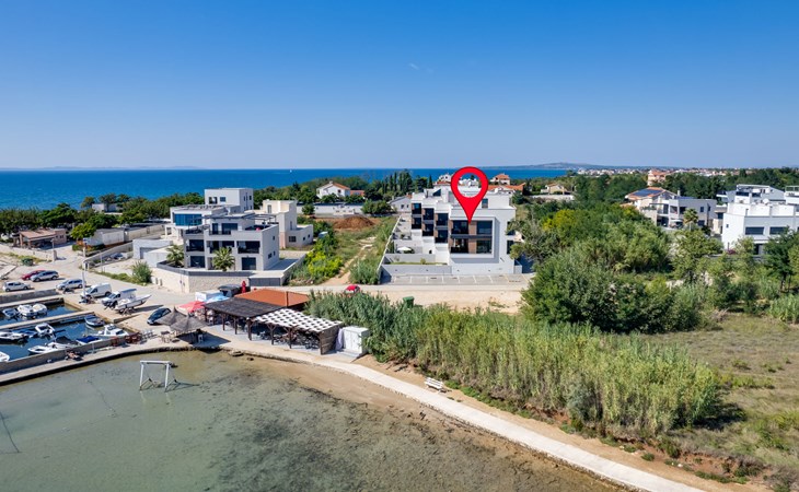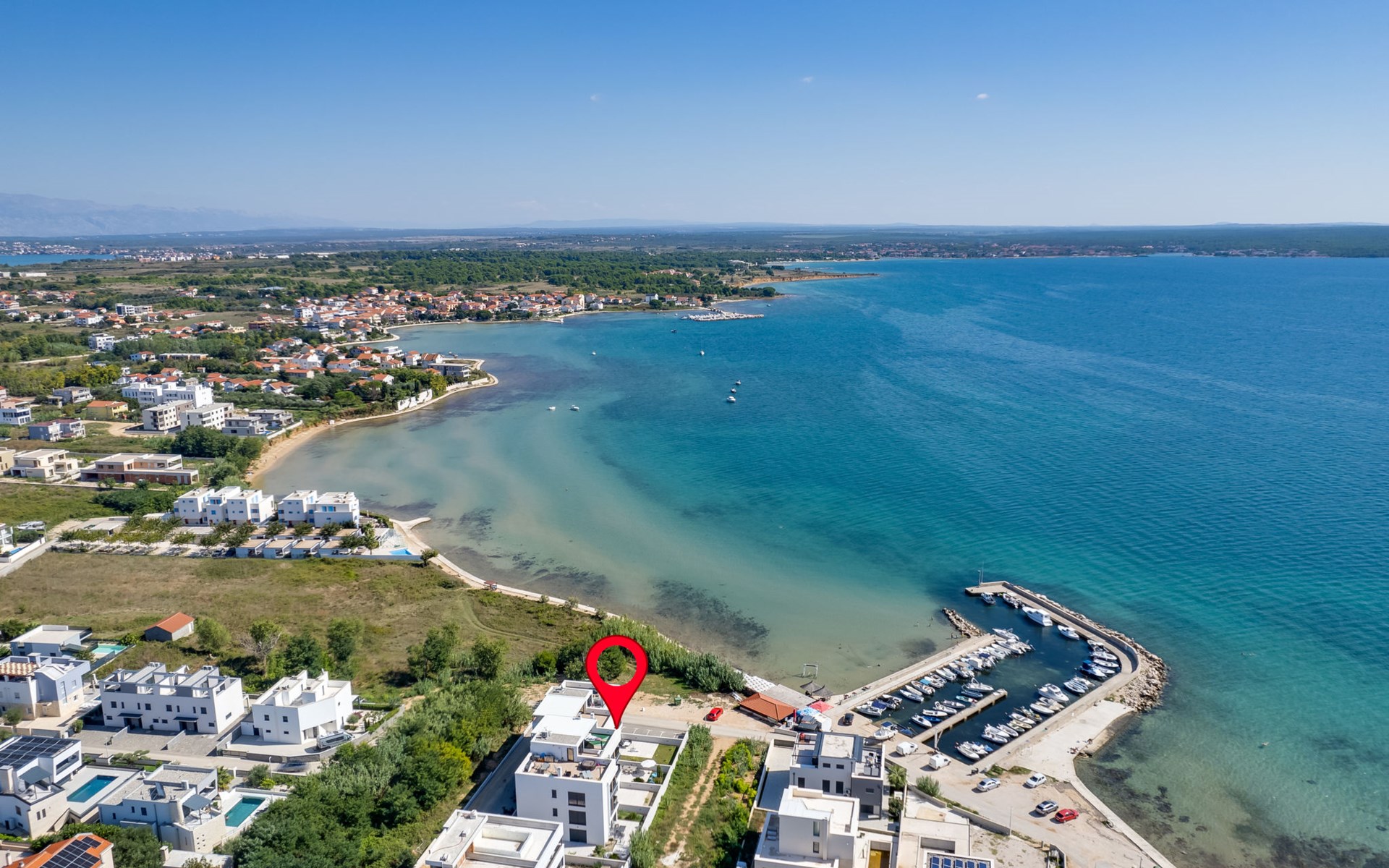 Modern apartment block, built in 2022. In the district of Mletak 3 km from the centre of Privlaka, in a sunny position, 40 m from the sea, 50 m from the beach. In the house: internet access. Parking at the house. Shop 330 m, supermarket 2 km, restaurant 2 km, bar 40 m, bus stop 3.4 km, pebble beach 50 m. Please note: airfield 33 km from the property.