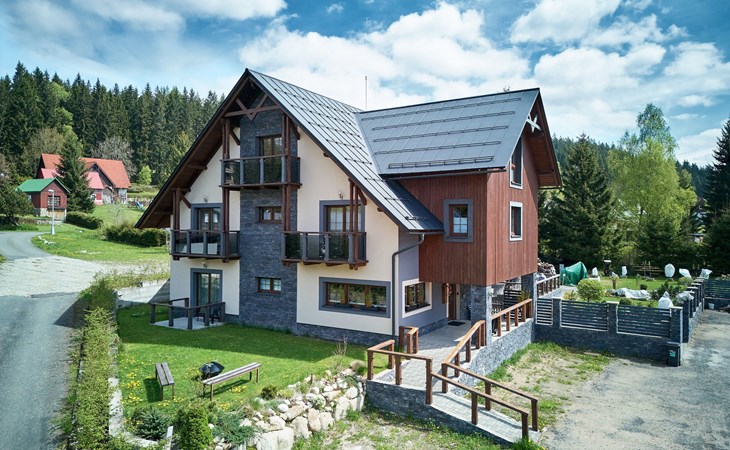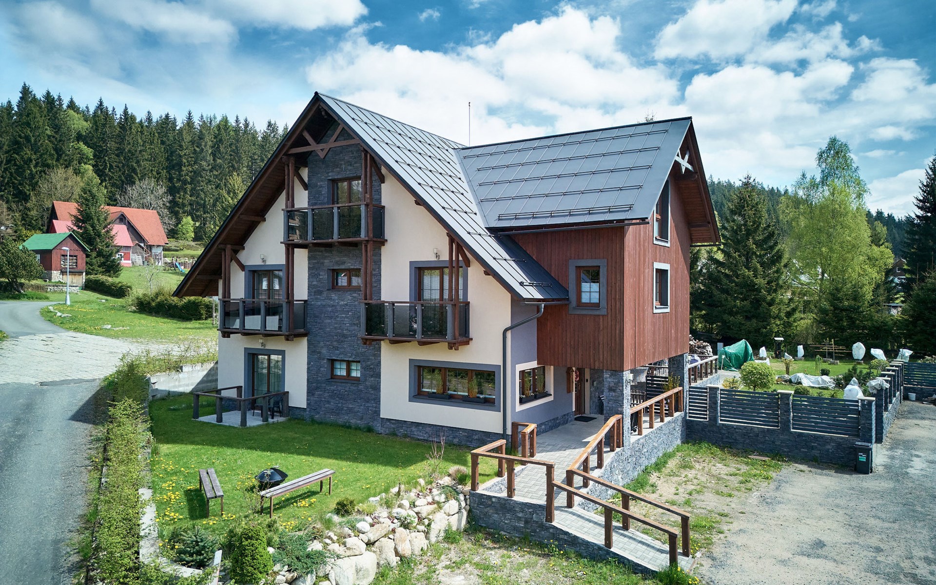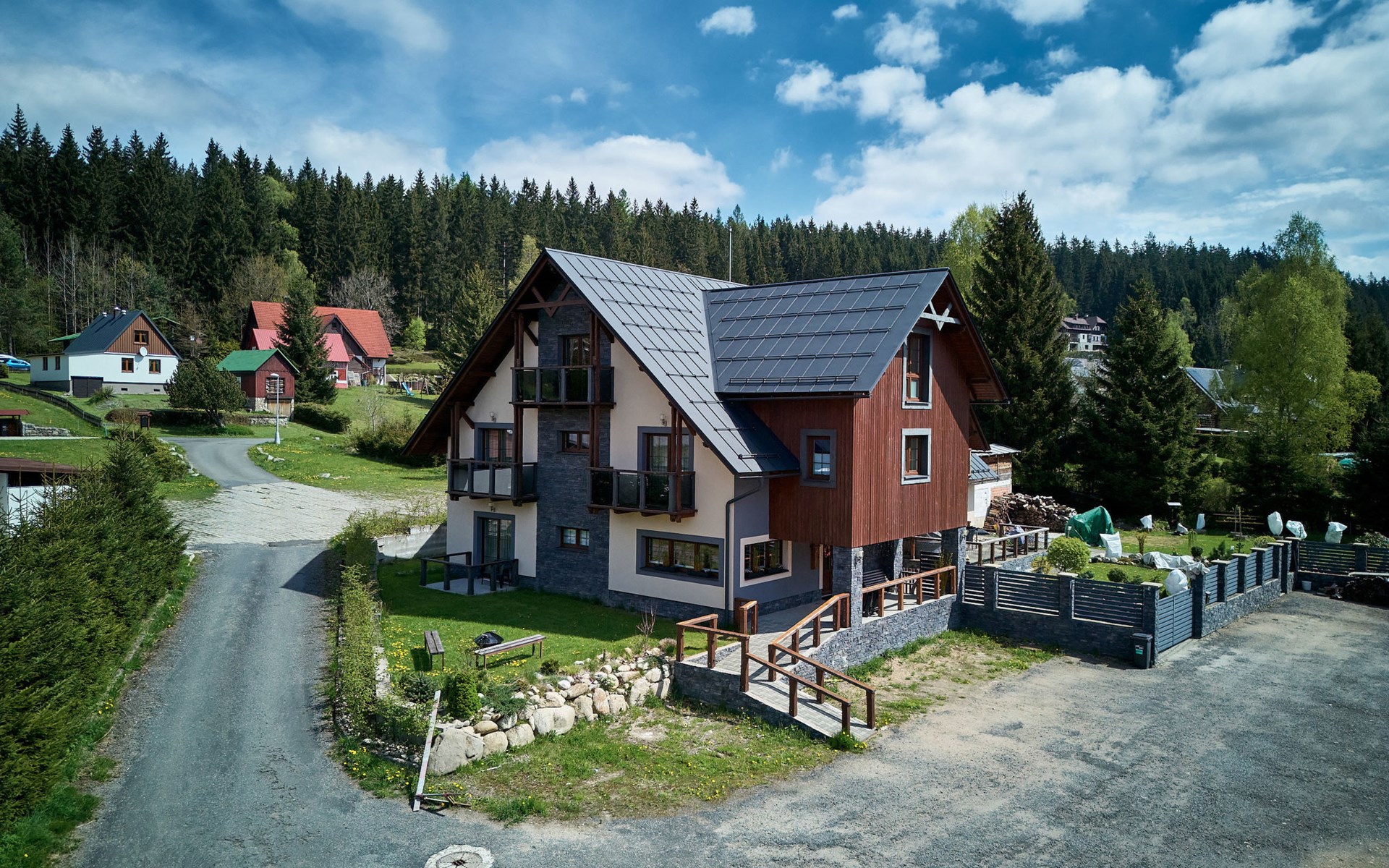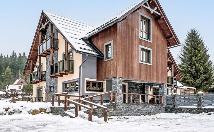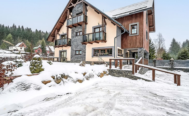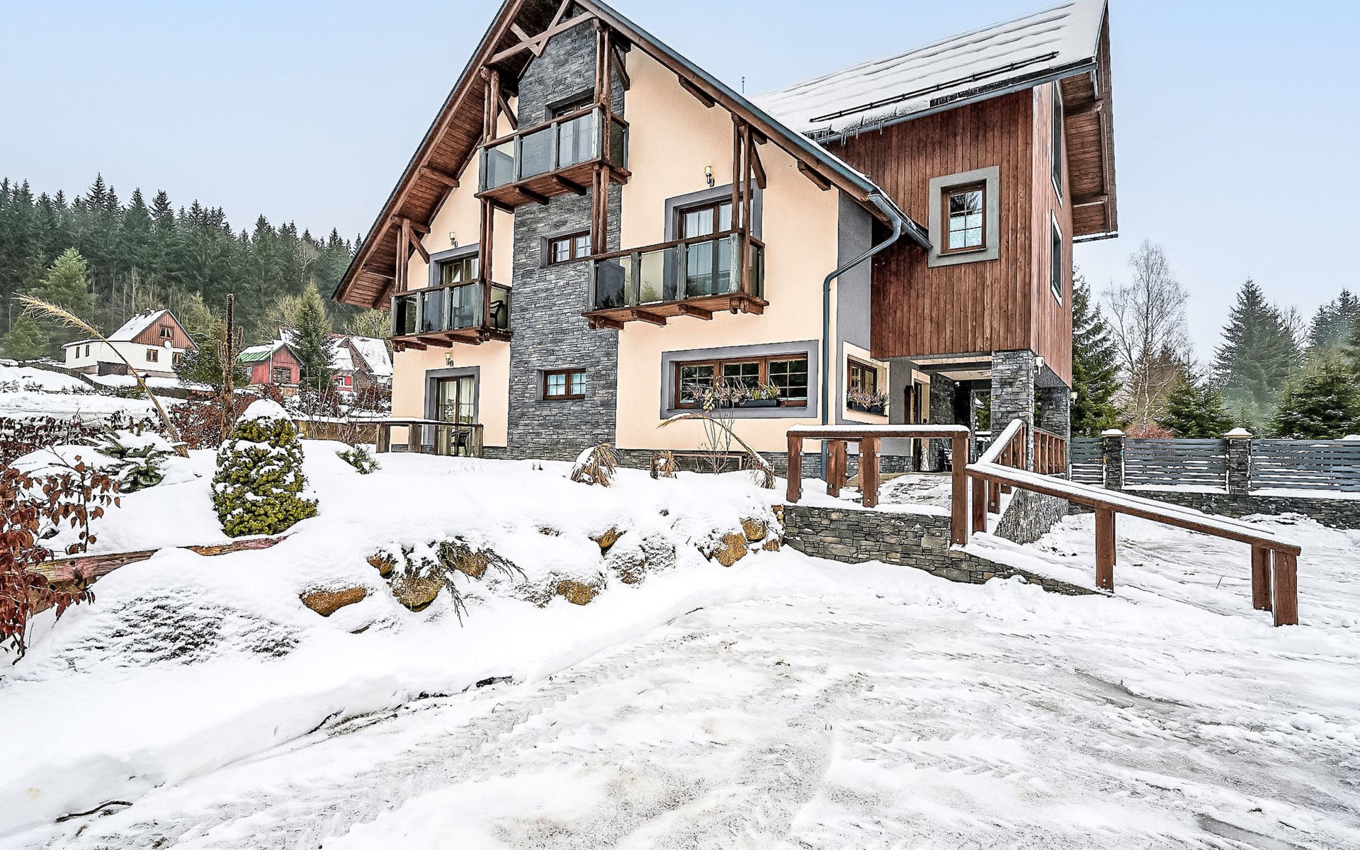 Very beautiful, cosy apartment house "Anenské údolí", 3 storeys, built in 2023. 6 apartments in the property. In a quiet, sunny position, 100 m from the edge of the forest, 800 m from the skiing area, 150 m from the stream, in a cul-de-sac. Private: terrace, garden furniture, barbecue, fireplace. In the house: lounge, WiFi, central heating system. Parking (for 6 cars) at the house. Supermarket 1 km, restaurant, café 700 m, bicycle rental 1 km, bus stop "Harrachov centrum" 1 km, railway station "Harrachov" 3 km, outdoor swimming pool 1.6 km, indoor swimming pool 1.7 km. Golf course (9 hole) 3 km, tennis 2 km, indoor tennis centre 2 km, minigolf 1.5 km, walking paths from the house 10 m, cycle lane 1 km, chair lift, slopes, ski rental, ski school, children's ski school 800 m, cross country ski track, children's playground 600 m. Nearby attractions: bobová dráha 500 m, Muzeum skla, Hornické muzeum, Šindelka 2 km, Mumlava vodopád 3 km, Skokanské můstky 1 km, Jilemnice, Jablonec nad Nisou 25 km, Liberec - zoo, aquapark, Ještěd 40 km. Well-known ski regions can easily be reached: Harrachov 800 m, Příchovice 9 km, Paseky na Jizerou, Rokytnice nad Jizerou 15 km. Well-known lakes can easily be reached: Vodní nádrž Souš 12 km. Hiking paths: Anenské údolí, Harrachova cesta, Krakonošova cesta, Čertova hora, Běžecký lyžařský areál Jakuszyce 5 km. The property consists of 6 apartments.