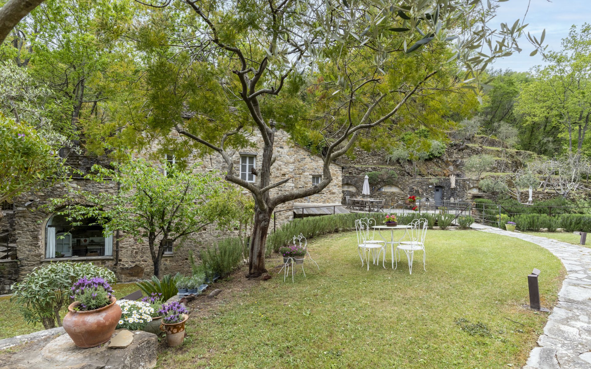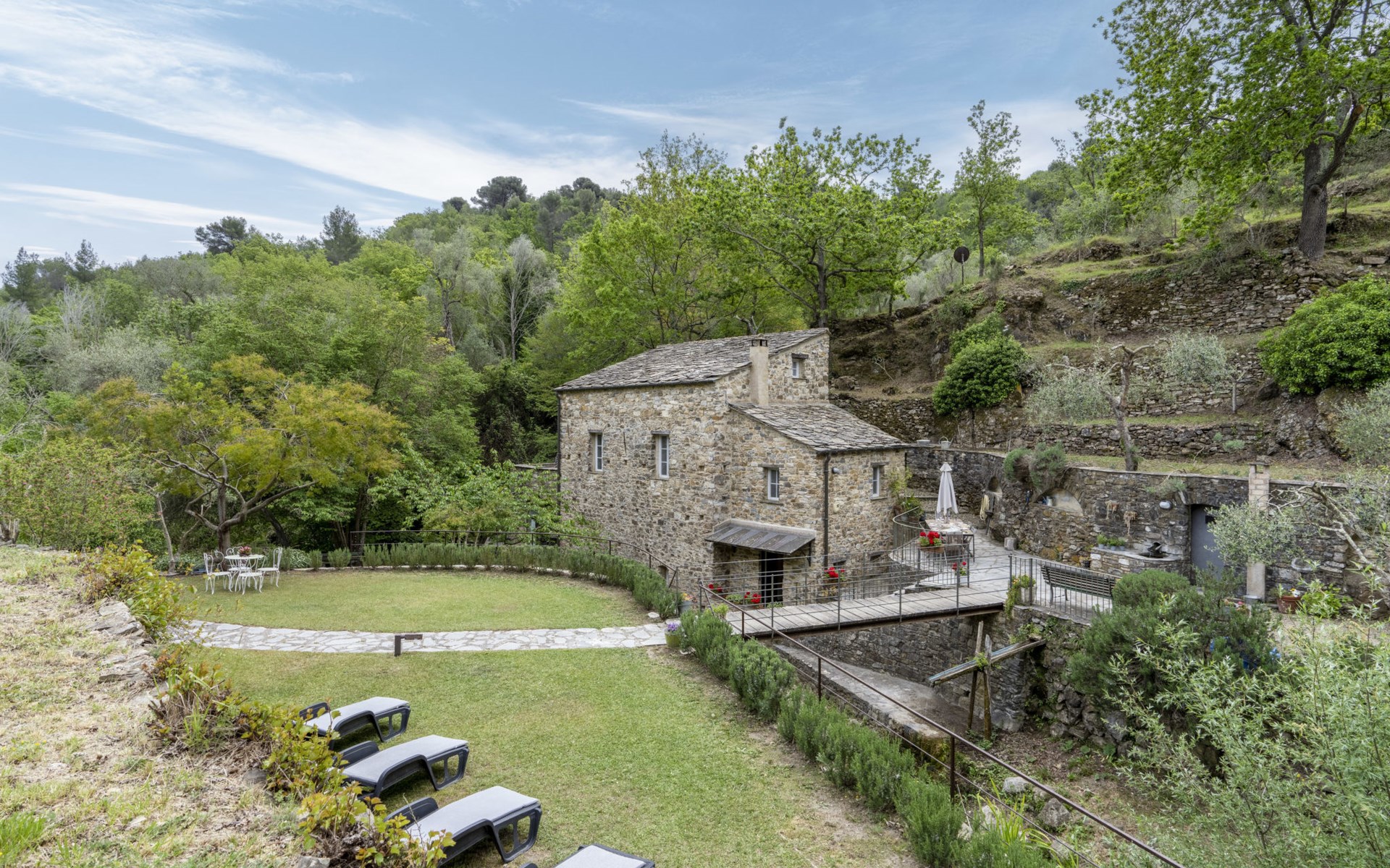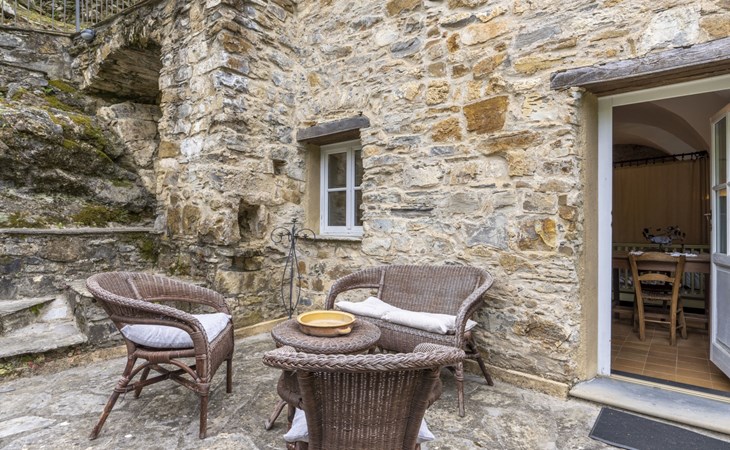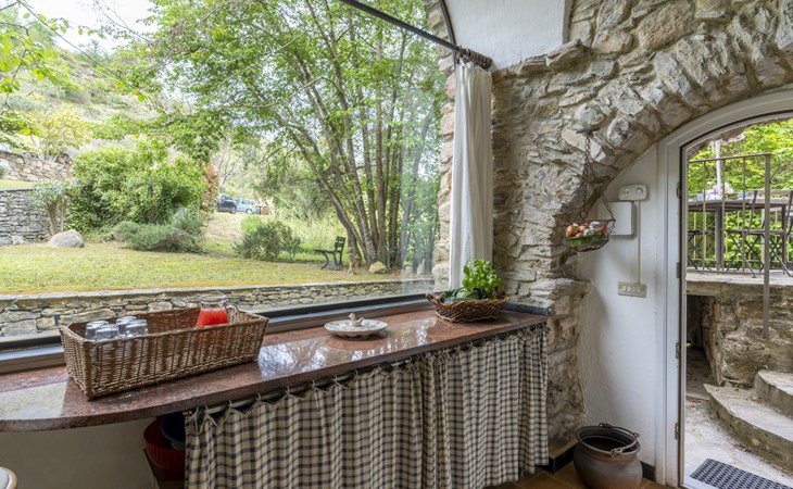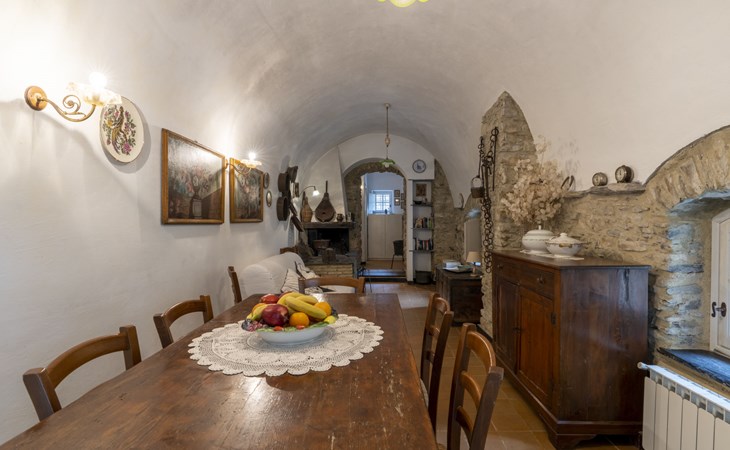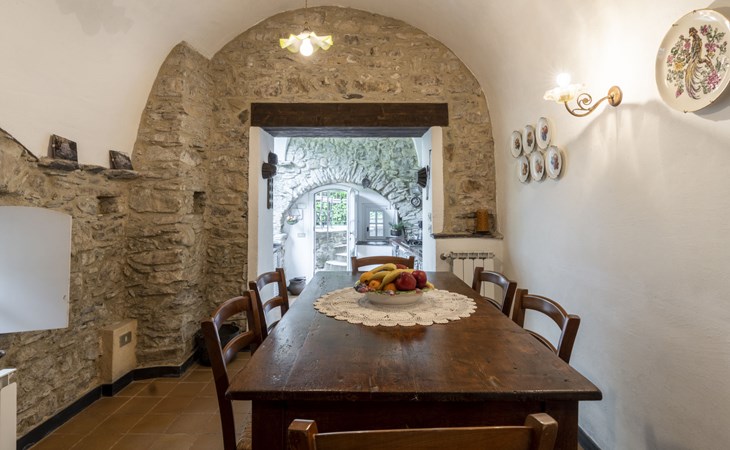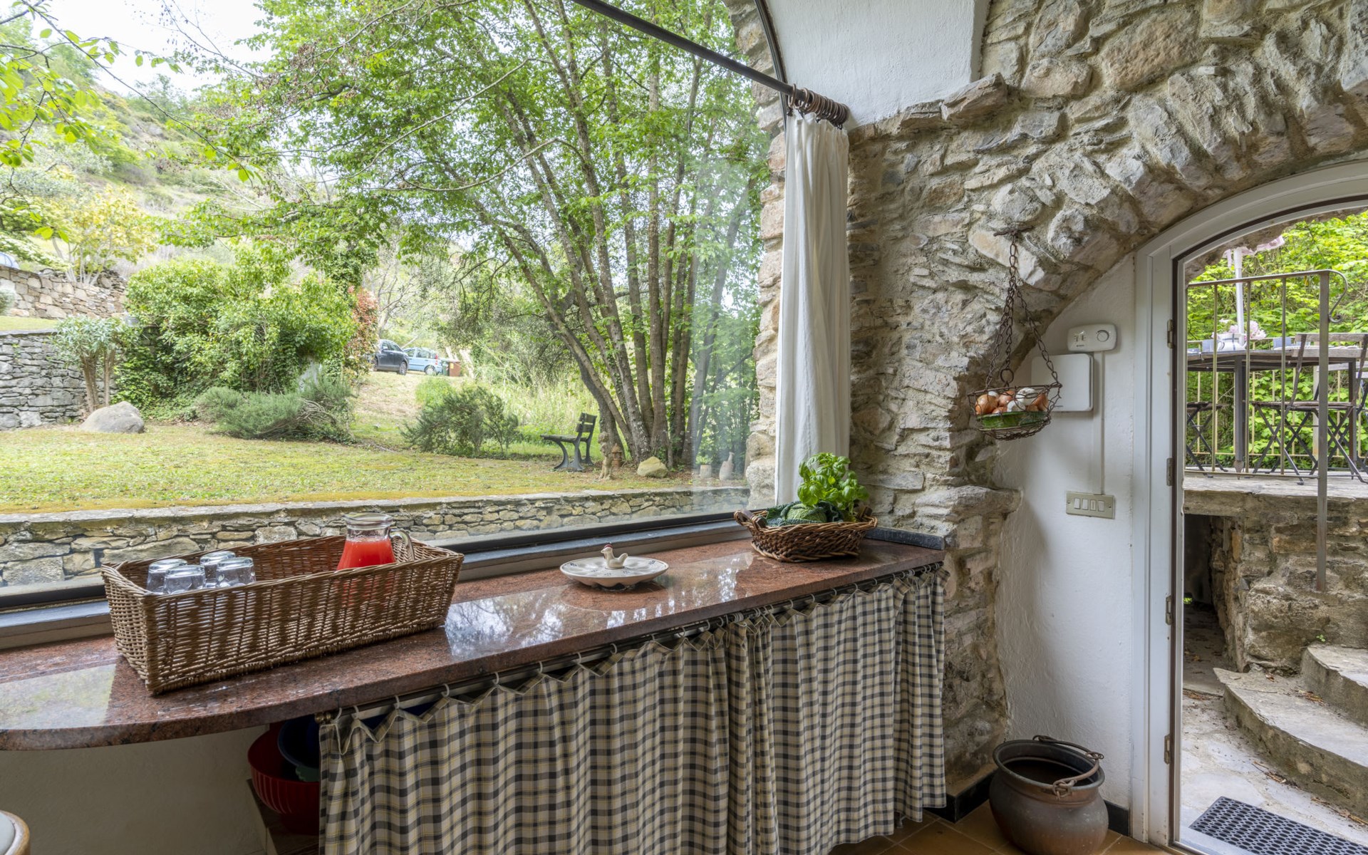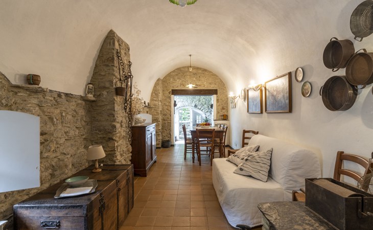 Rustic cottage "Muin du Pie", detached, surrounded by trees and meadows. Above San Lorenzo al Mare 2 km from the centre of San Lorenzo al Mare, 8 km from the centre of Imperia, 20 km from the centre of San Remo, in an elevated position on a slope, traffic calmed area, 2 km from the sea, in the countryside. Private: large, well-kept garden with lawn and trees. 50 m long bumpy motor access to the house. Parking (for 4 cars) on the premises. Grocery 3 km, supermarket 2 km, restaurant 2 km, bakery 3 km, café 3 km, bicycle rental 3 km, bus stop 6.9 km, railway station "Imperia /Oneglio" 15 km, sandy beach "San Lorenzo al Mare" 3 km, indoor swimming pool 10 km. Marina 3 km.