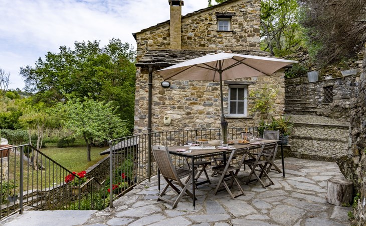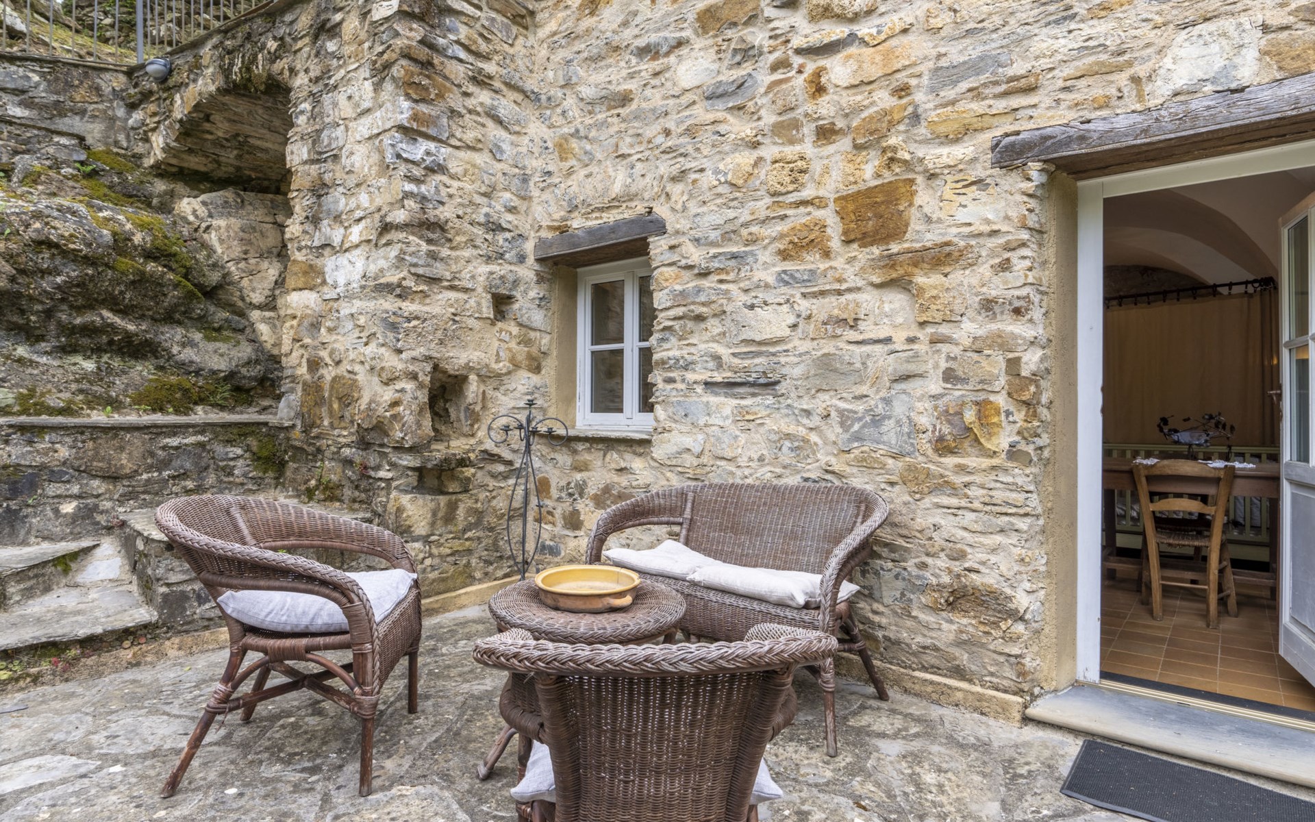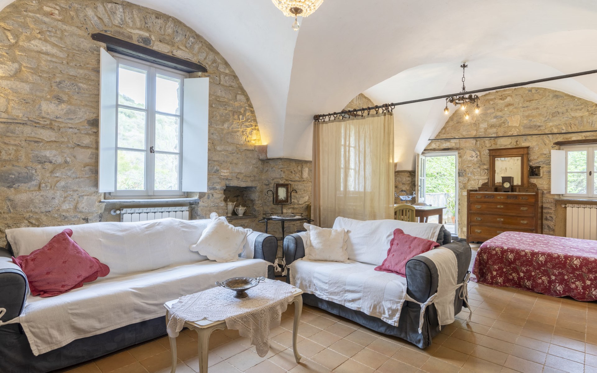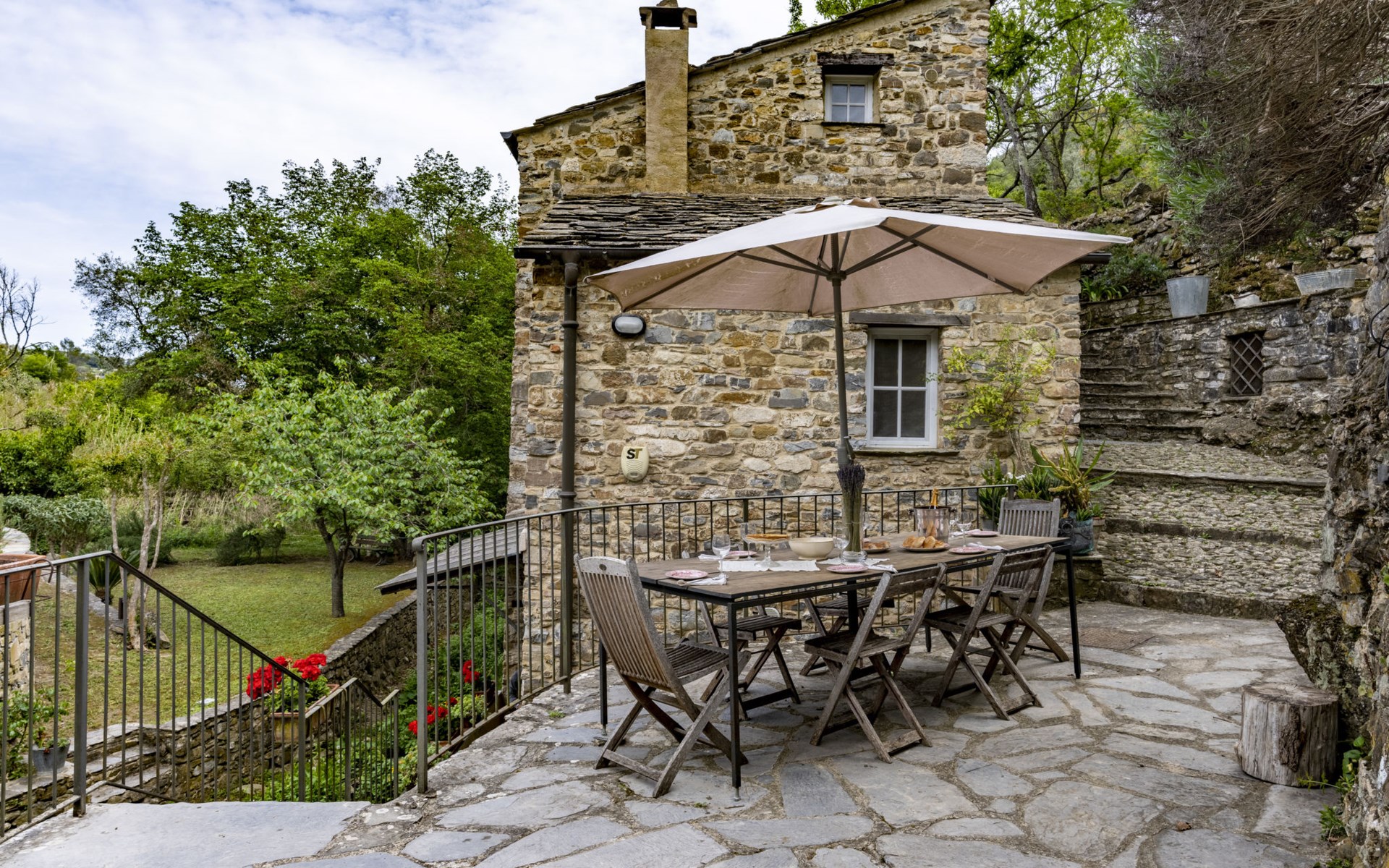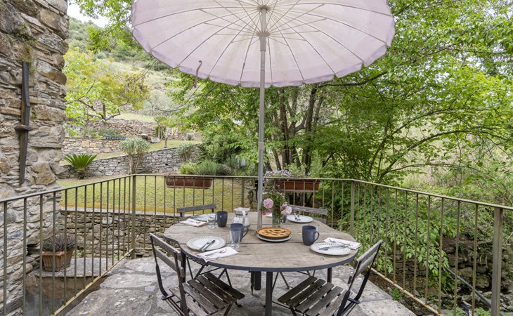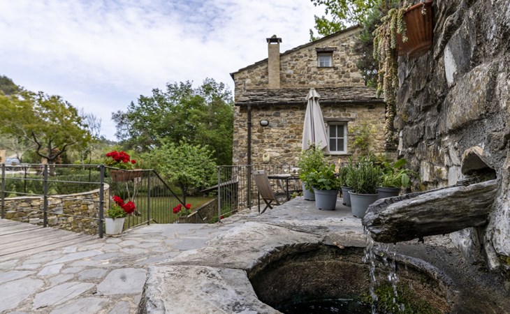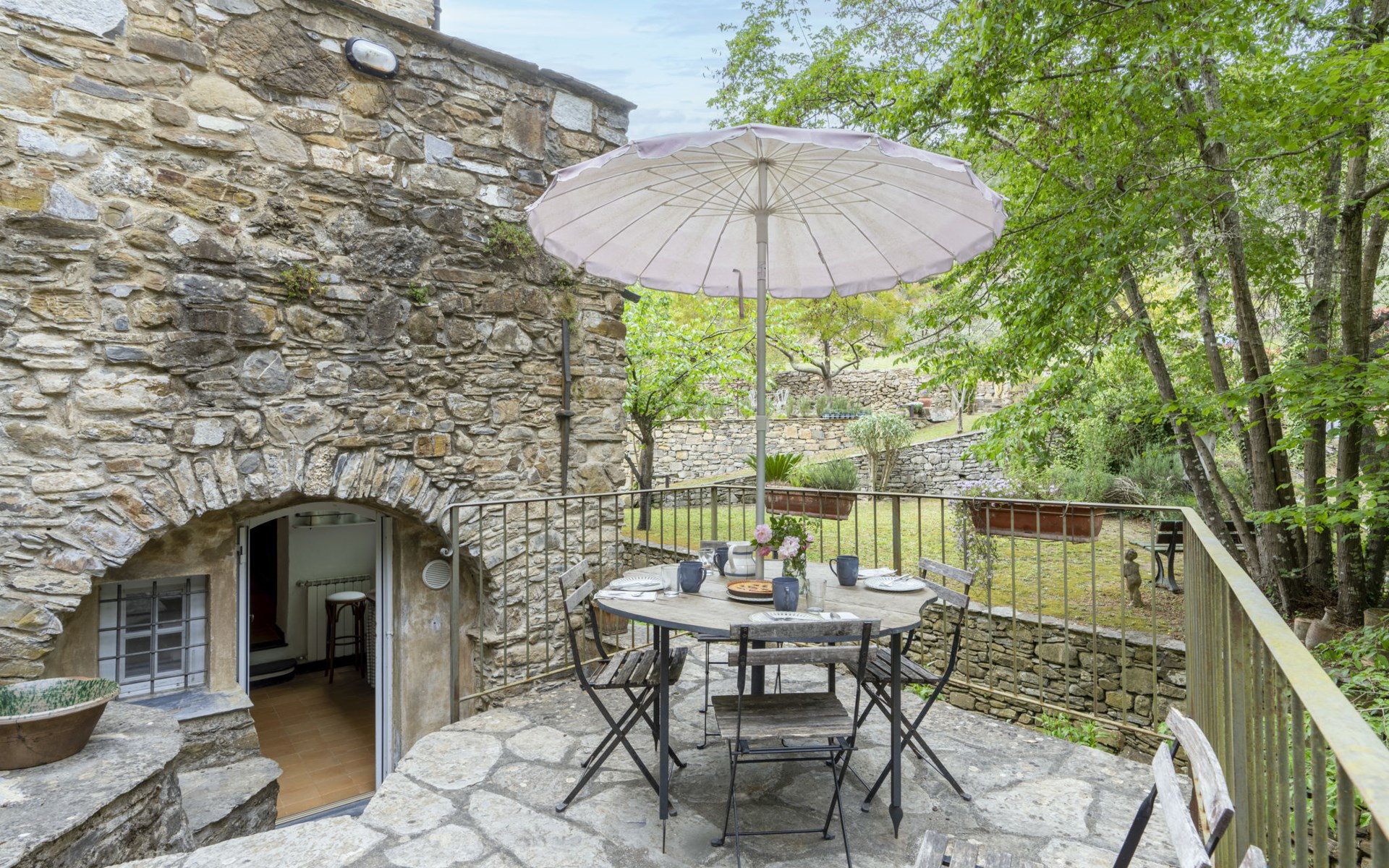 Rustic cottage "Muin du Pie", detached, surrounded by trees and meadows. Above San Lorenzo al Mare 2 km from the centre of San Lorenzo al Mare, 8 km from the centre of Imperia, 20 km from the centre of San Remo, in an elevated position on a slope, traffic calmed area, 2 km from the sea, in the countryside. Private: large, well-kept garden with lawn and trees. 50 m long bumpy motor access to the house. Parking (for 4 cars) on the premises. Grocery 3 km, supermarket 2 km, restaurant 2 km, bakery 3 km, café 3 km, bicycle rental 3 km, bus stop 6.9 km, railway station "Imperia /Oneglio" 15 km, sandy beach "San Lorenzo al Mare" 3 km, indoor swimming pool 10 km. Marina 3 km.