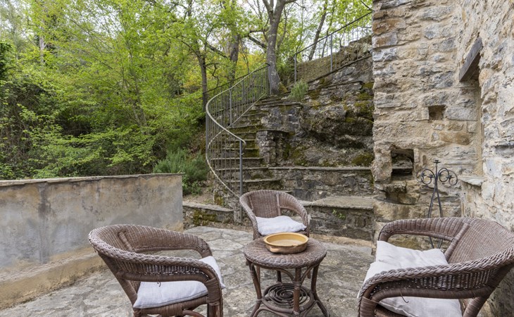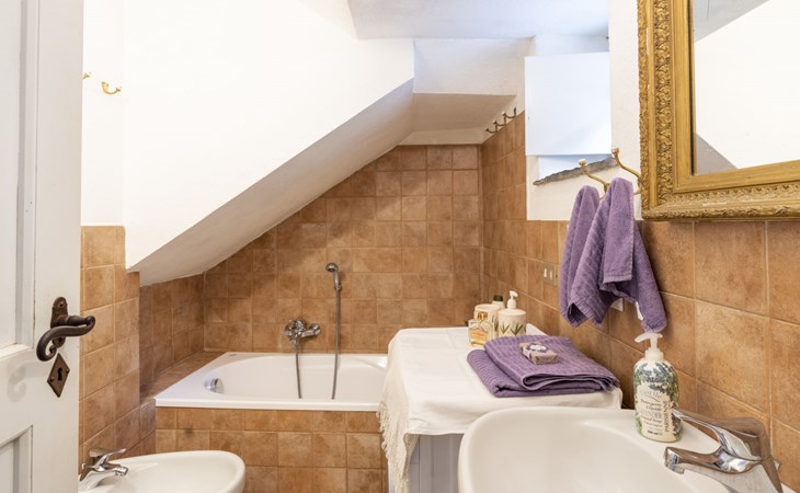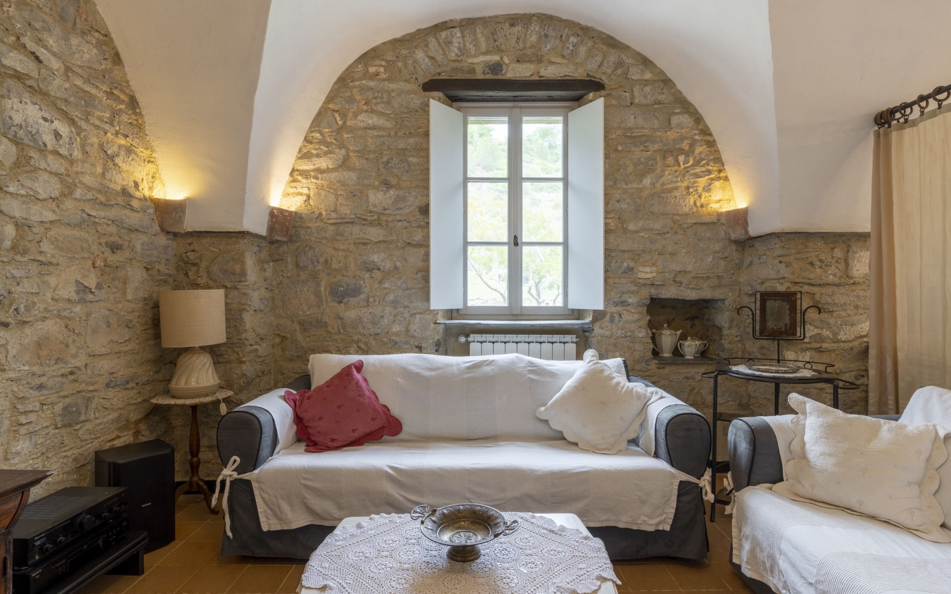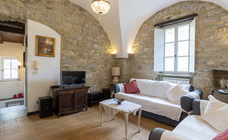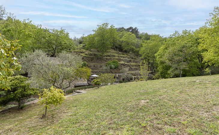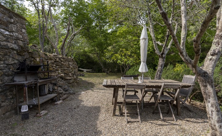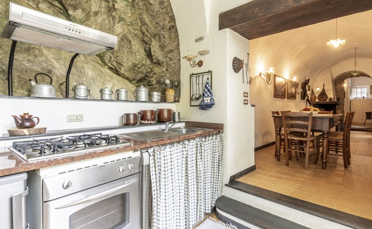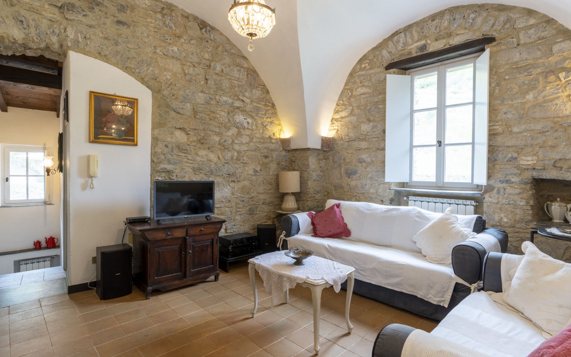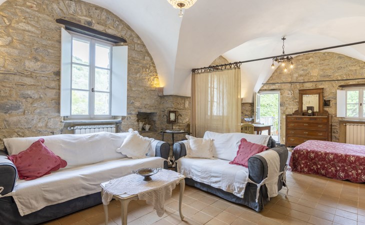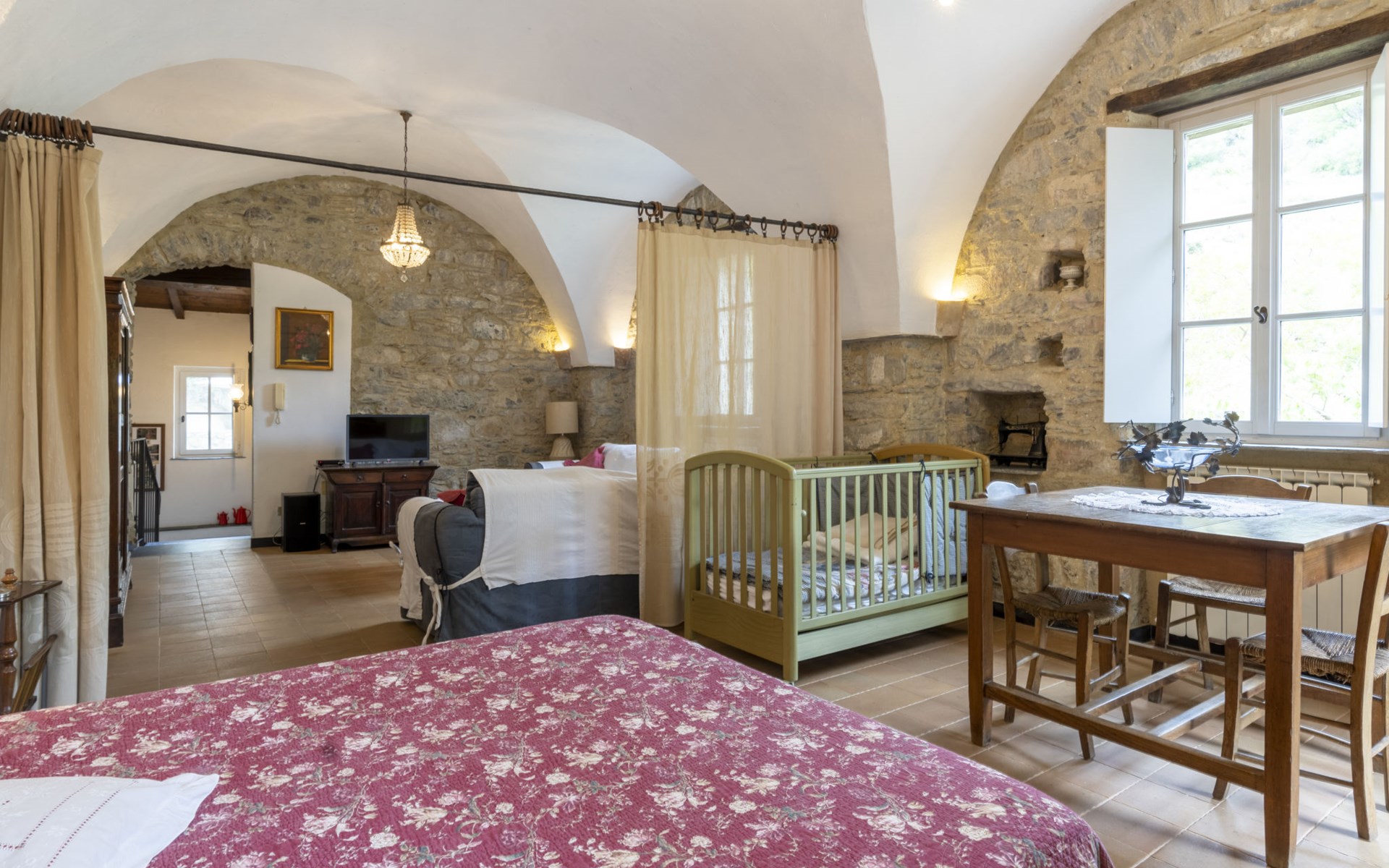 Rustic cottage "Muin du Pie", detached, surrounded by trees and meadows. Above San Lorenzo al Mare 2 km from the centre of San Lorenzo al Mare, 8 km from the centre of Imperia, 20 km from the centre of San Remo, in an elevated position on a slope, traffic calmed area, 2 km from the sea, in the countryside. Private: large, well-kept garden with lawn and trees. 50 m long bumpy motor access to the house. Parking (for 4 cars) on the premises. Grocery 3 km, supermarket 2 km, restaurant 2 km, bakery 3 km, café 3 km, bicycle rental 3 km, bus stop 6.9 km, railway station "Imperia /Oneglio" 15 km, sandy beach "San Lorenzo al Mare" 3 km, indoor swimming pool 10 km. Marina 3 km.