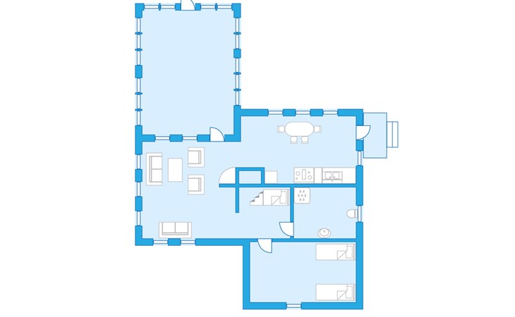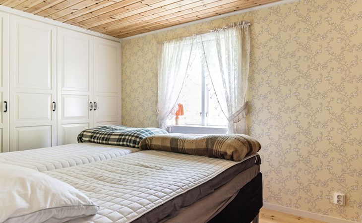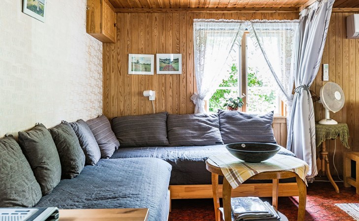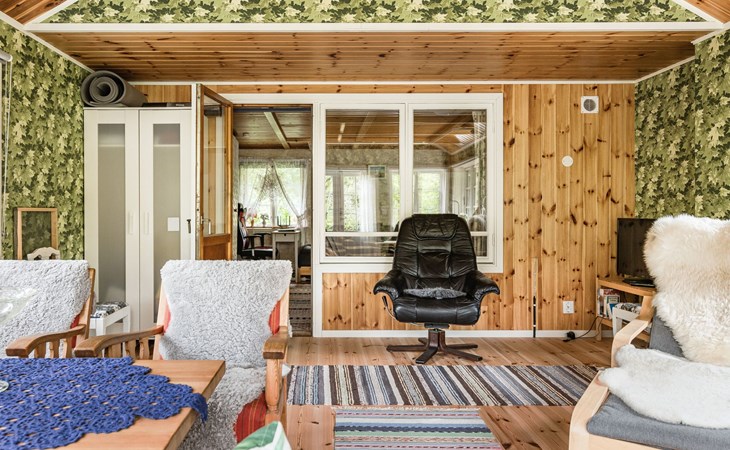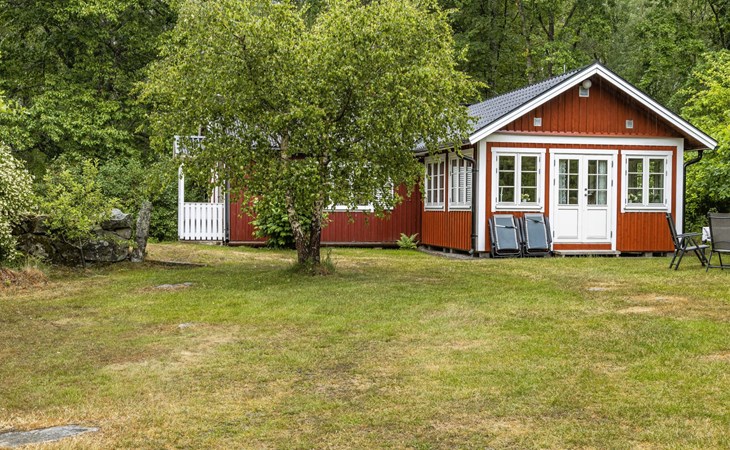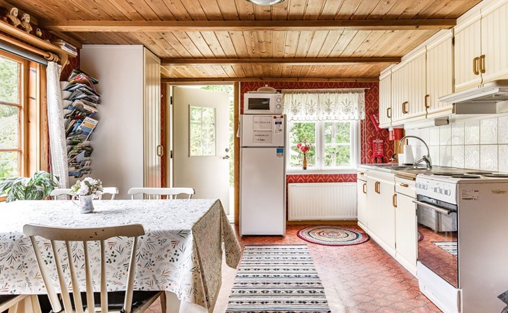 Beautiful cottage "Röshult". 6 km from the centre of Kyrkhult, 20 km from the centre of Olofström, 30 km from the centre of Karlshamn, 1.5 km from the lake, 2 km from the river, in the countryside. Private: natural state property 5'000 m2 with trees, meadow. Rowing boat. 800 m long very bumpy motor access. Parking (for 2 cars) on the premises. Supermarket 20 km, bus stop 6.9 km, railway station "Karlshamn" 30 km, ferry "Helsingborg" 155 km, sandy beach 3 km, indoor swimming pool 20 km, lake Aborrasjön 3 km. Golf course (18 hole) 20 km, fishing possibilities 1.5 km.