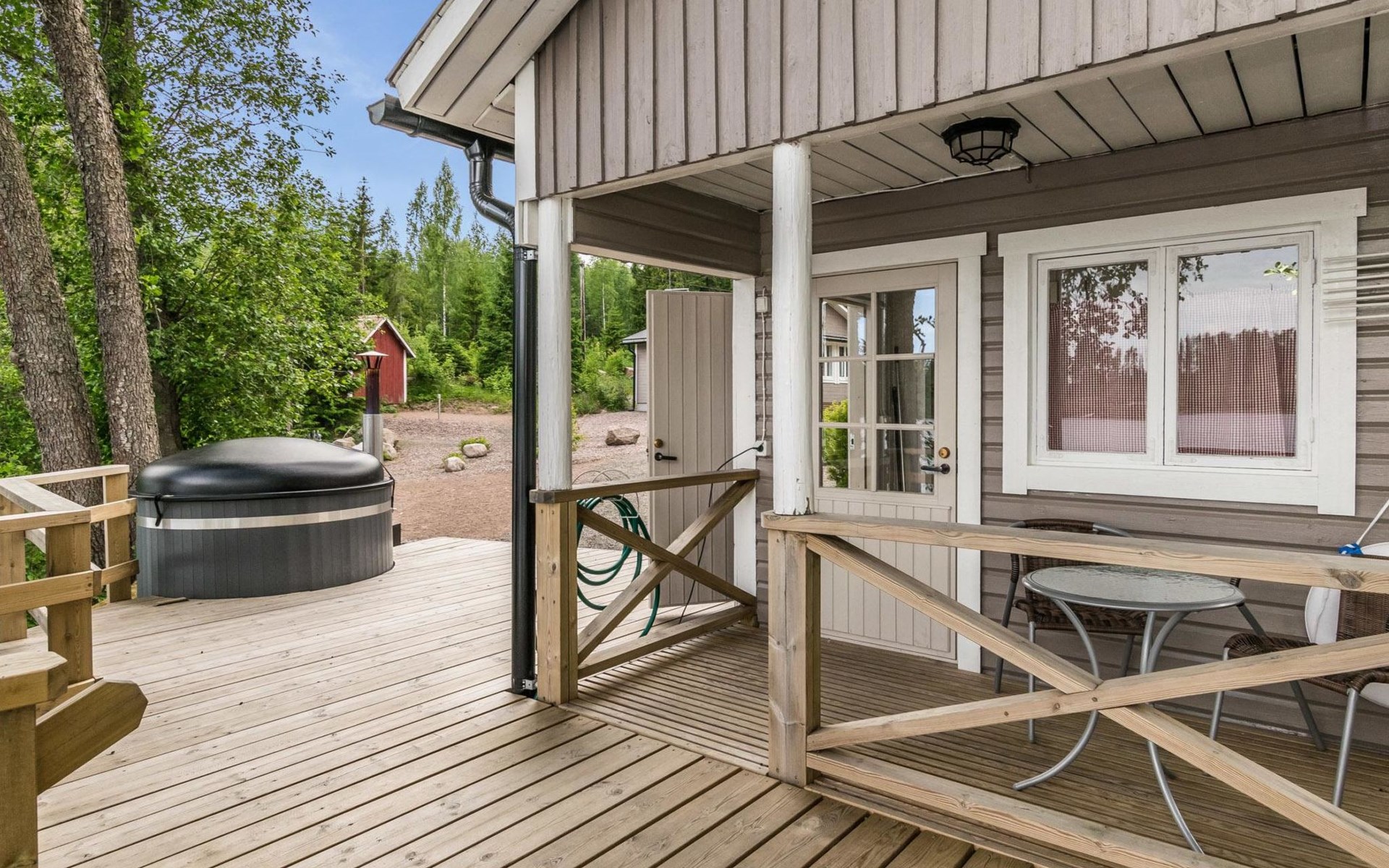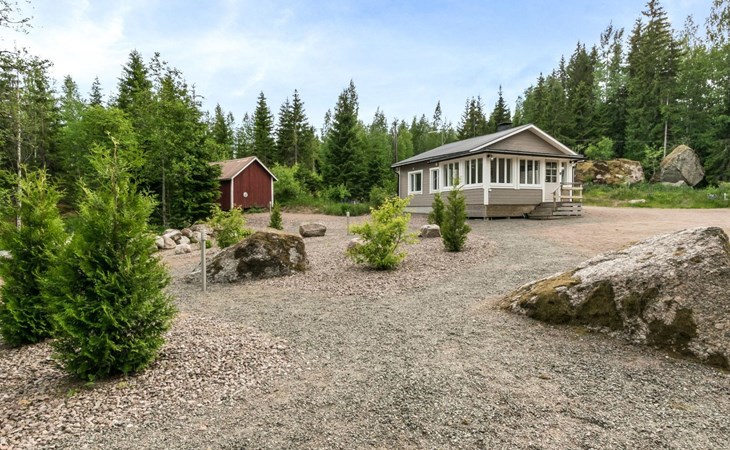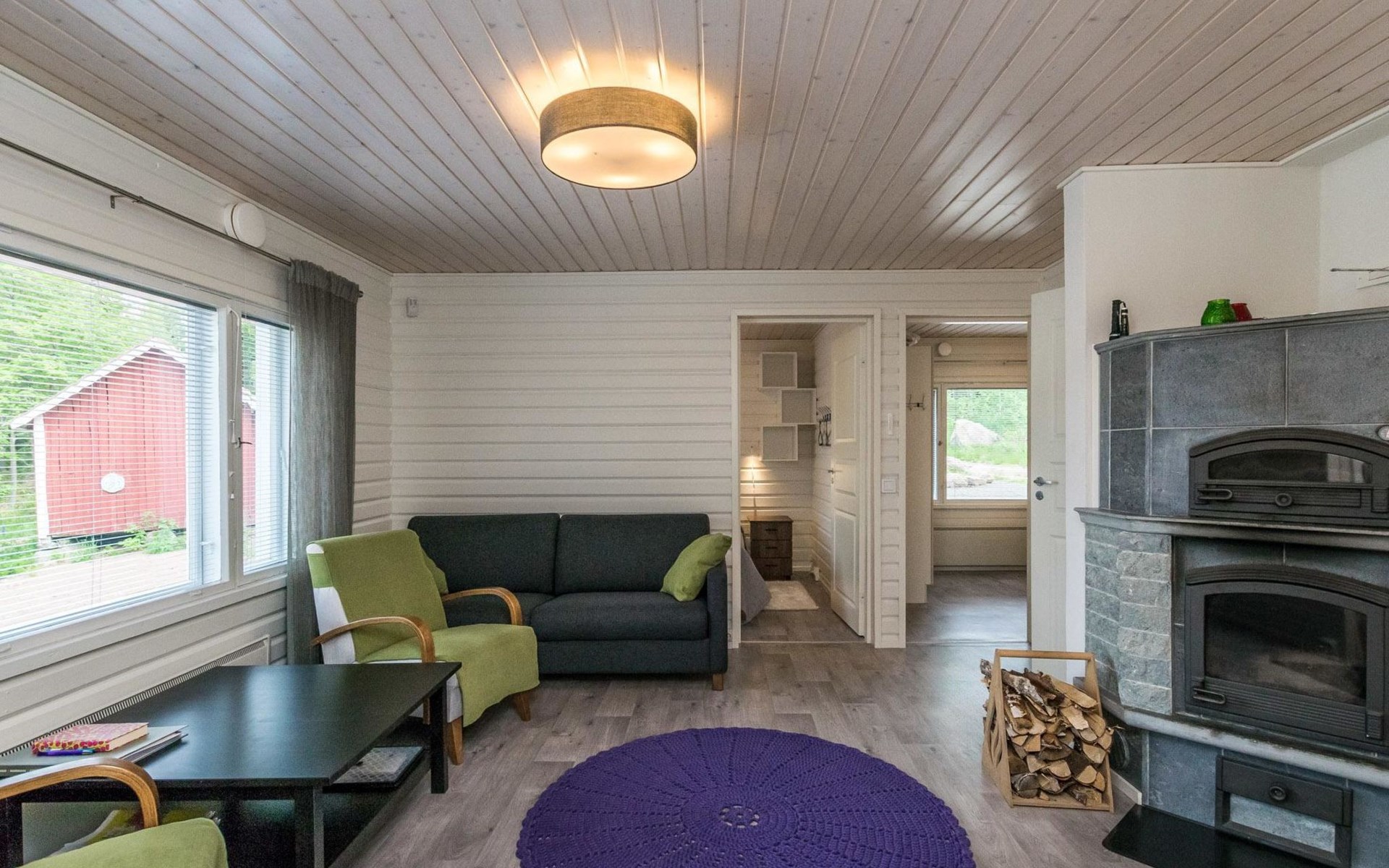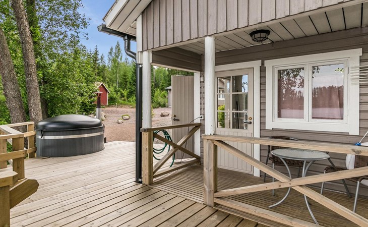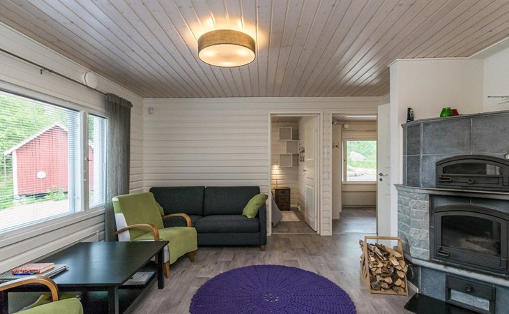 Woodshed and storage. Beautifully remodeled and redecorated old cottage. Comfortable cottage eg. for a family or for two couples. Dining table in a bright, spacious veranda, kitchen with a small table. Baby bed and high chair available on request.