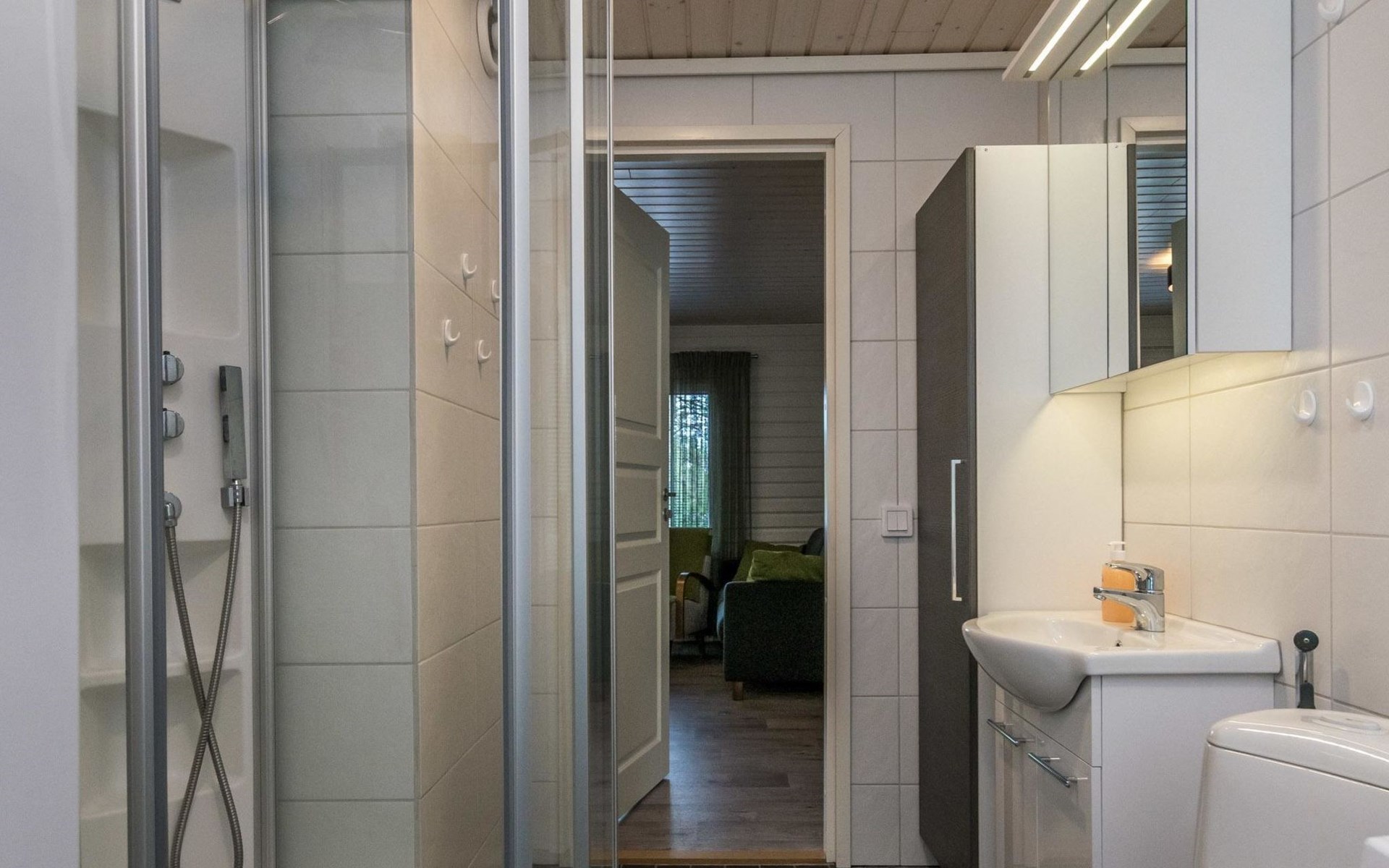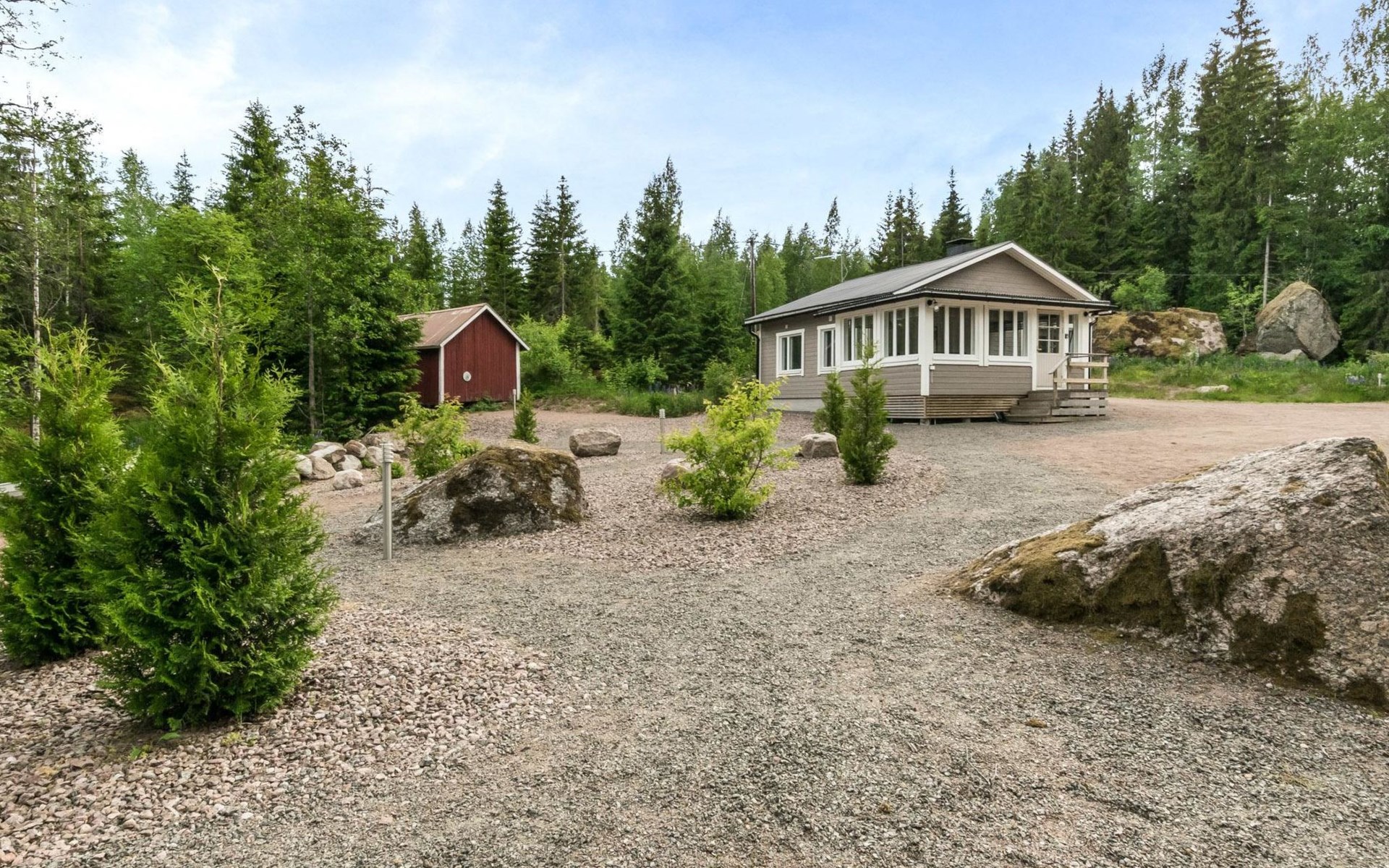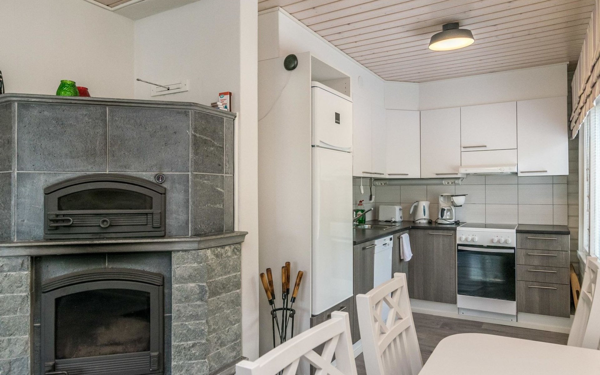Woodshed and storage. Beautifully remodeled and redecorated old cottage. Comfortable cottage eg. for a family or for two couples. Dining table in a bright, spacious veranda, kitchen with a small table. Baby bed and high chair available on request.