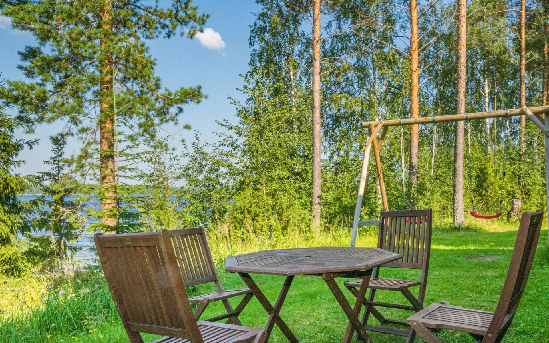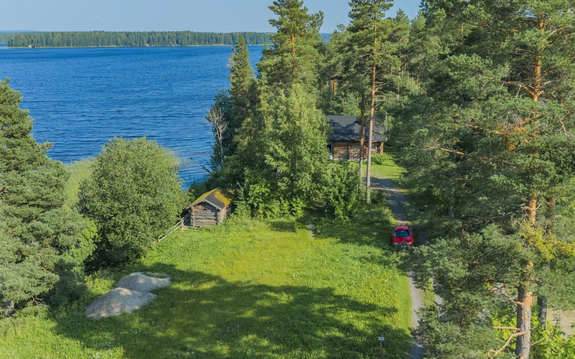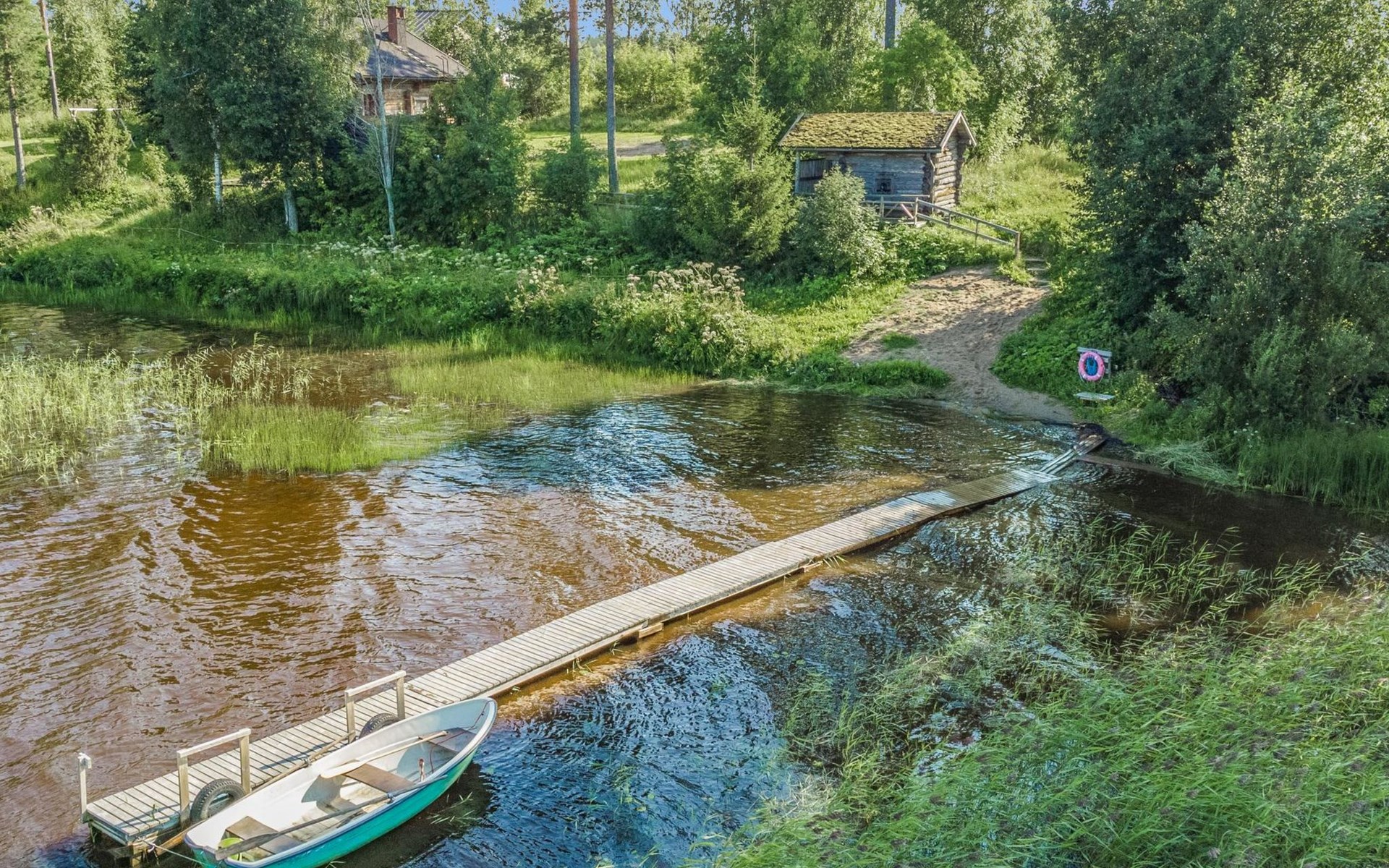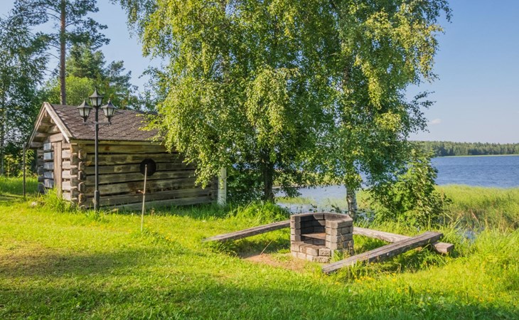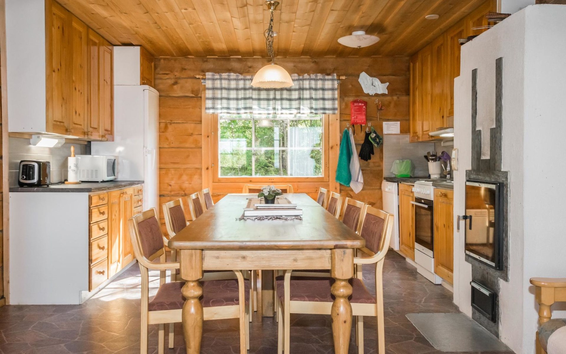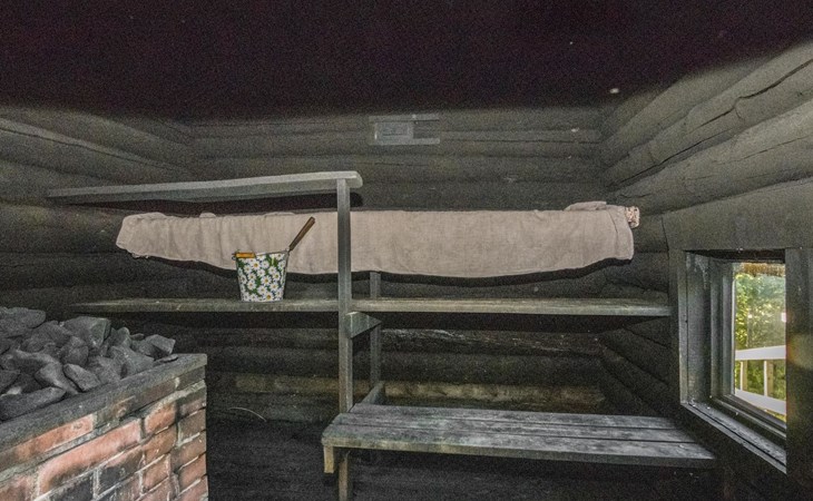 The two-storey log chalet 1994, on the ground floor a large kitchen-living room, bedroom with double bed and a cot, bathroom, dressing room, sauna, separate toilet and a terrace.