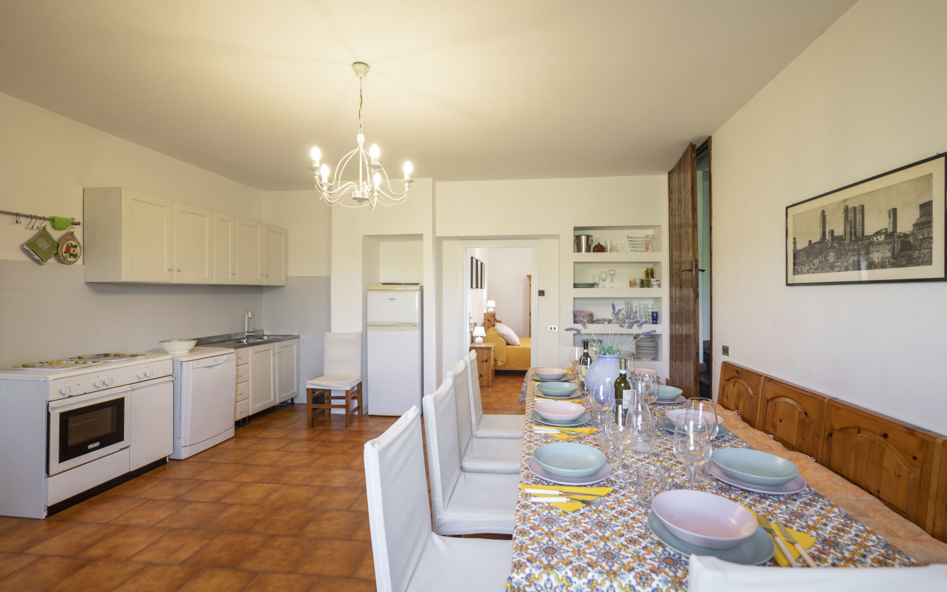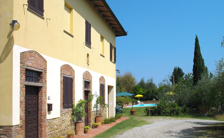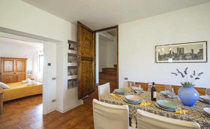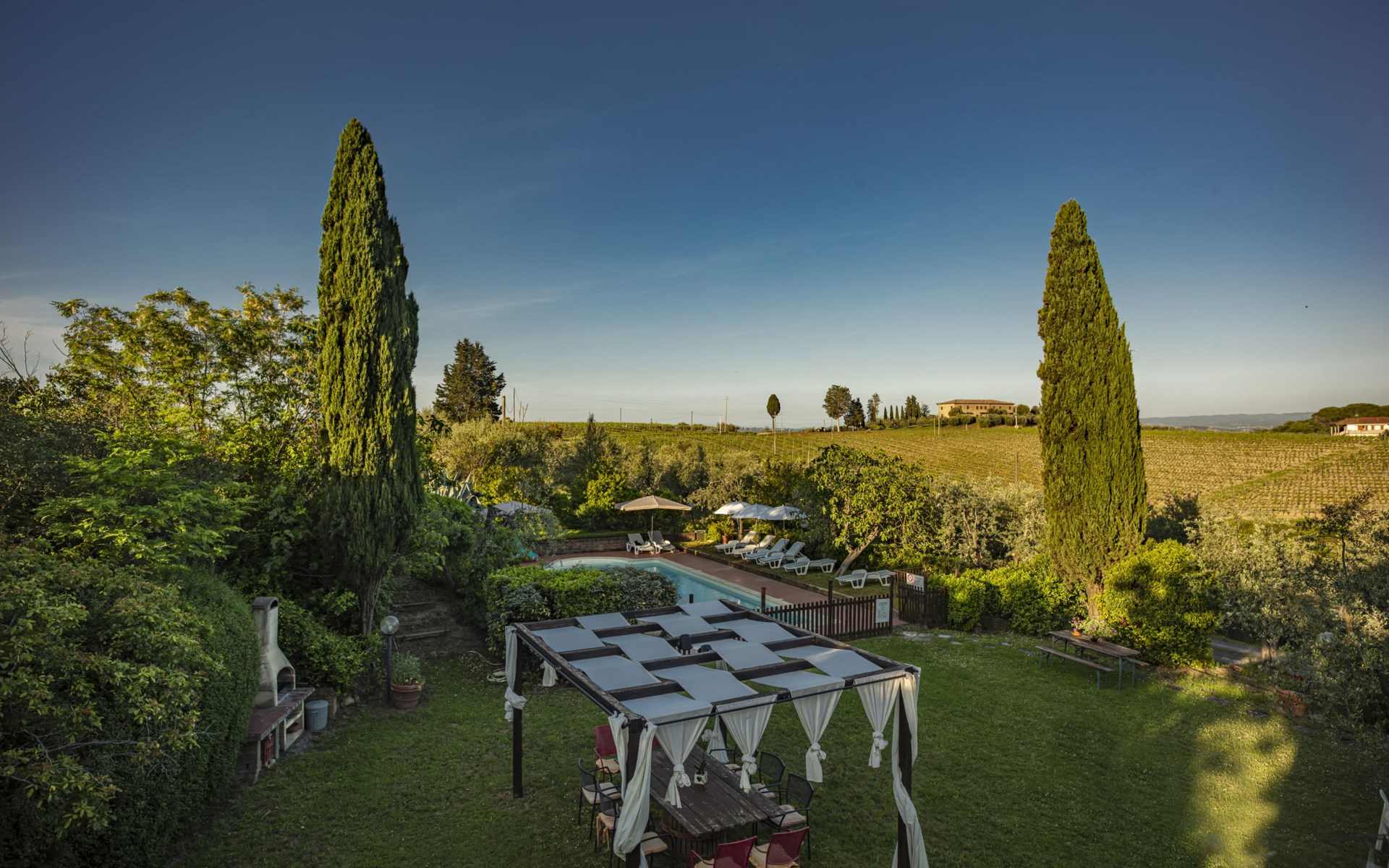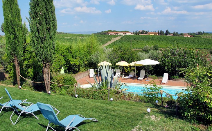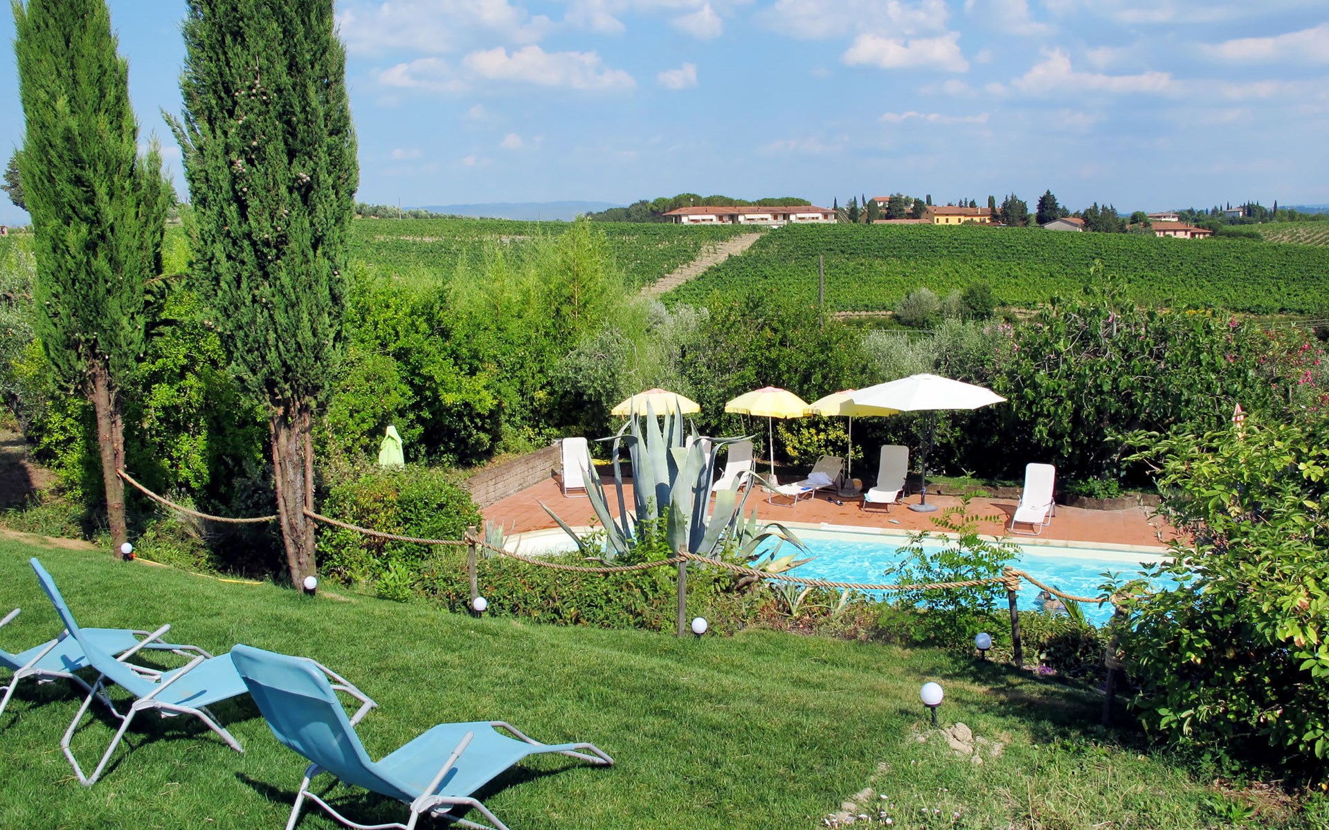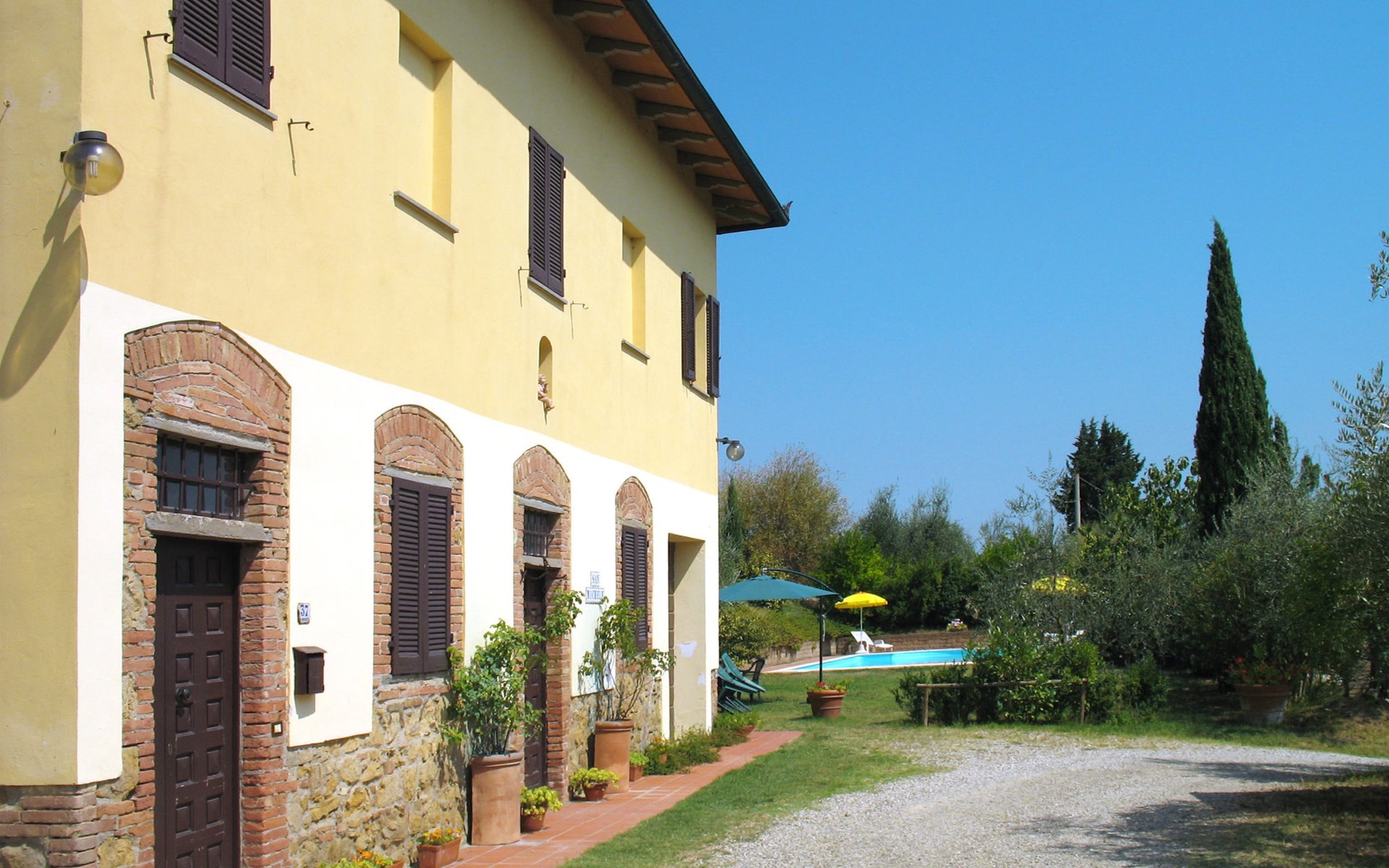 Beautiful country house "Podere San Michele", detached, surrounded by meadows and vineyards. 6 km from the centre of San Gimignano, 14 km from the centre of Poggibonsi, 45 km from the centre of Siena, in a secluded, sunny position, in the countryside. For shared use: property 20'000 m2, meadow. Private: swimming pool fenced (12 x 6 m, seasonal availability: 20.May. - 30.Sep.) with internal staircase. Outdoor shower, pergola, terrace, garden furniture, barbecue, pool maintenance by the owner/gardener. 200 m long narrow motor access to the house. Parking on the premises. Shop 5 km, grocery 5 km, supermarket 5 km, restaurant 3 km, bakery 5 km, bicycle rental 7 km, bus stop 2 km, railway station "Poggibonsi" 14 km, sandy beach "Cecina Mare" 70 km, indoor swimming pool 7 km. Tennis 7 km, indoor tennis centre 7 km, riding stable 3 km, walking paths from the house 100 m. Nearby attractions: Volterra 36 km, Siena 47 km, Firenze 56 m, Pisa 80 m. Please note: car recommended. Baby equipment (included). Groups of teenagers on request only. Part of the house is closed and unoccupied. The owner lives on the same property.
