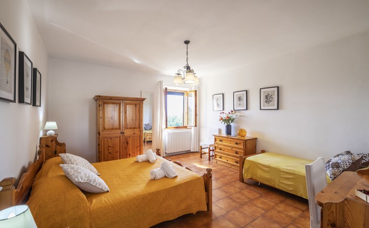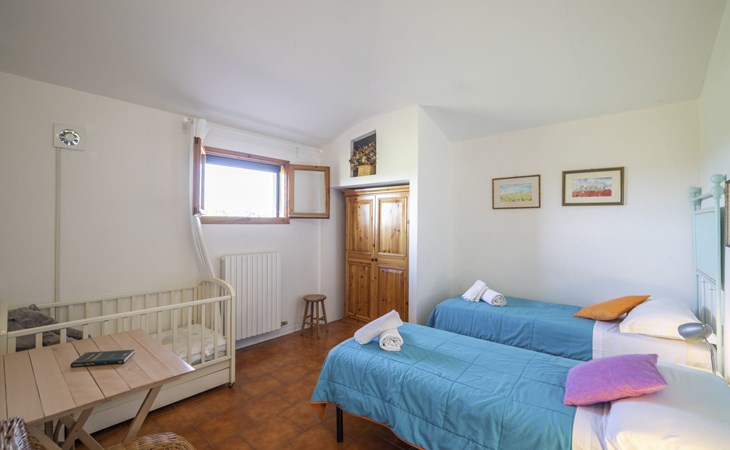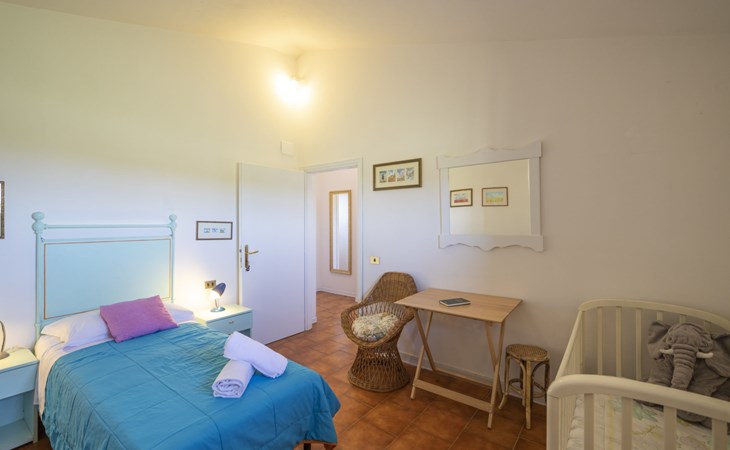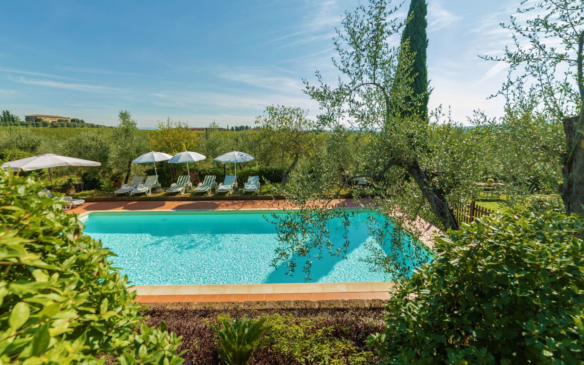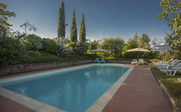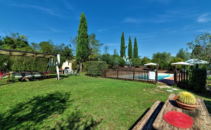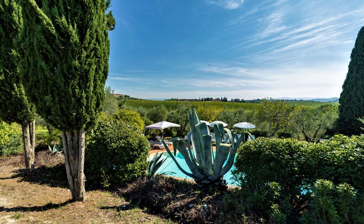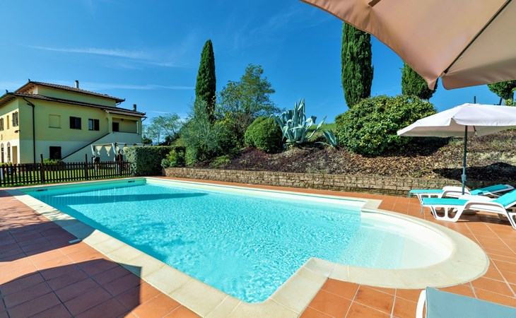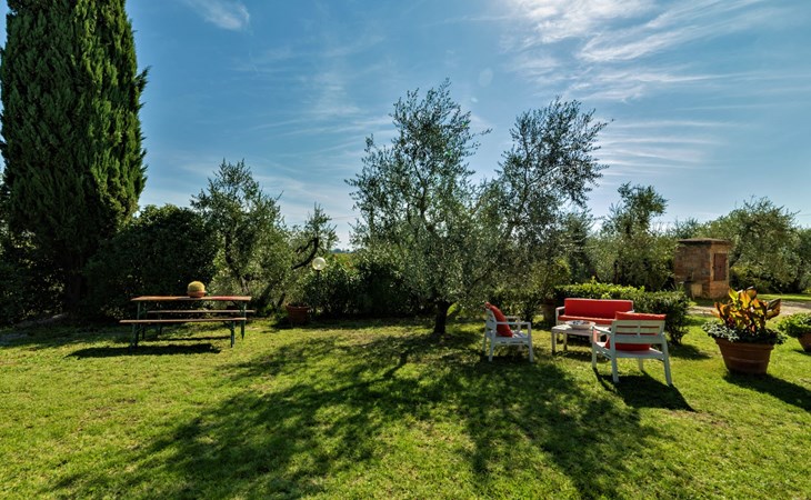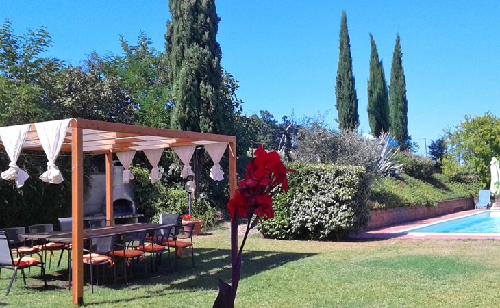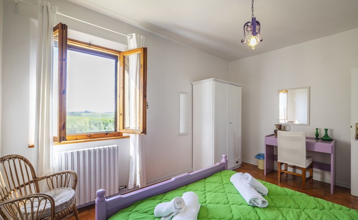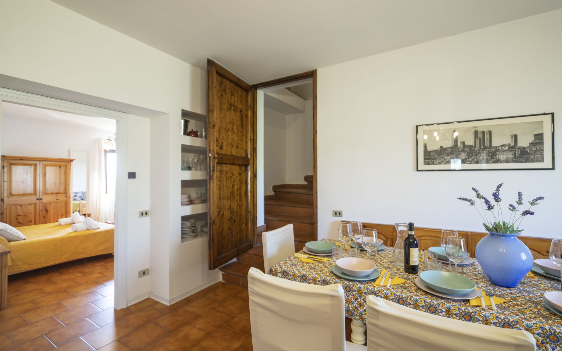 Beautiful country house "Podere San Michele", detached, surrounded by meadows and vineyards. 6 km from the centre of San Gimignano, 14 km from the centre of Poggibonsi, 45 km from the centre of Siena, in a secluded, sunny position, in the countryside. For shared use: property 20'000 m2, meadow. Private: swimming pool fenced (12 x 6 m, seasonal availability: 20.May. - 30.Sep.) with internal staircase. Outdoor shower, pergola, terrace, garden furniture, barbecue, pool maintenance by the owner/gardener. 200 m long narrow motor access to the house. Parking on the premises. Shop 5 km, grocery 5 km, supermarket 5 km, restaurant 3 km, bakery 5 km, bicycle rental 7 km, bus stop 2 km, railway station "Poggibonsi" 14 km, sandy beach "Cecina Mare" 70 km, indoor swimming pool 7 km. Tennis 7 km, indoor tennis centre 7 km, riding stable 3 km, walking paths from the house 100 m. Nearby attractions: Volterra 36 km, Siena 47 km, Firenze 56 m, Pisa 80 m. Please note: car recommended. Baby equipment (included). Groups of teenagers on request only. Part of the house is closed and unoccupied. The owner lives on the same property.