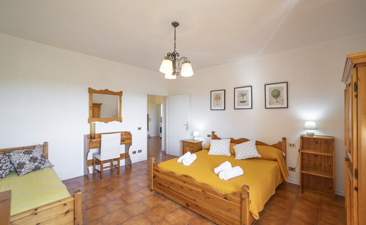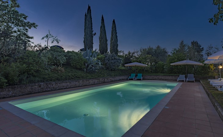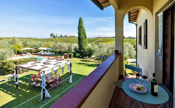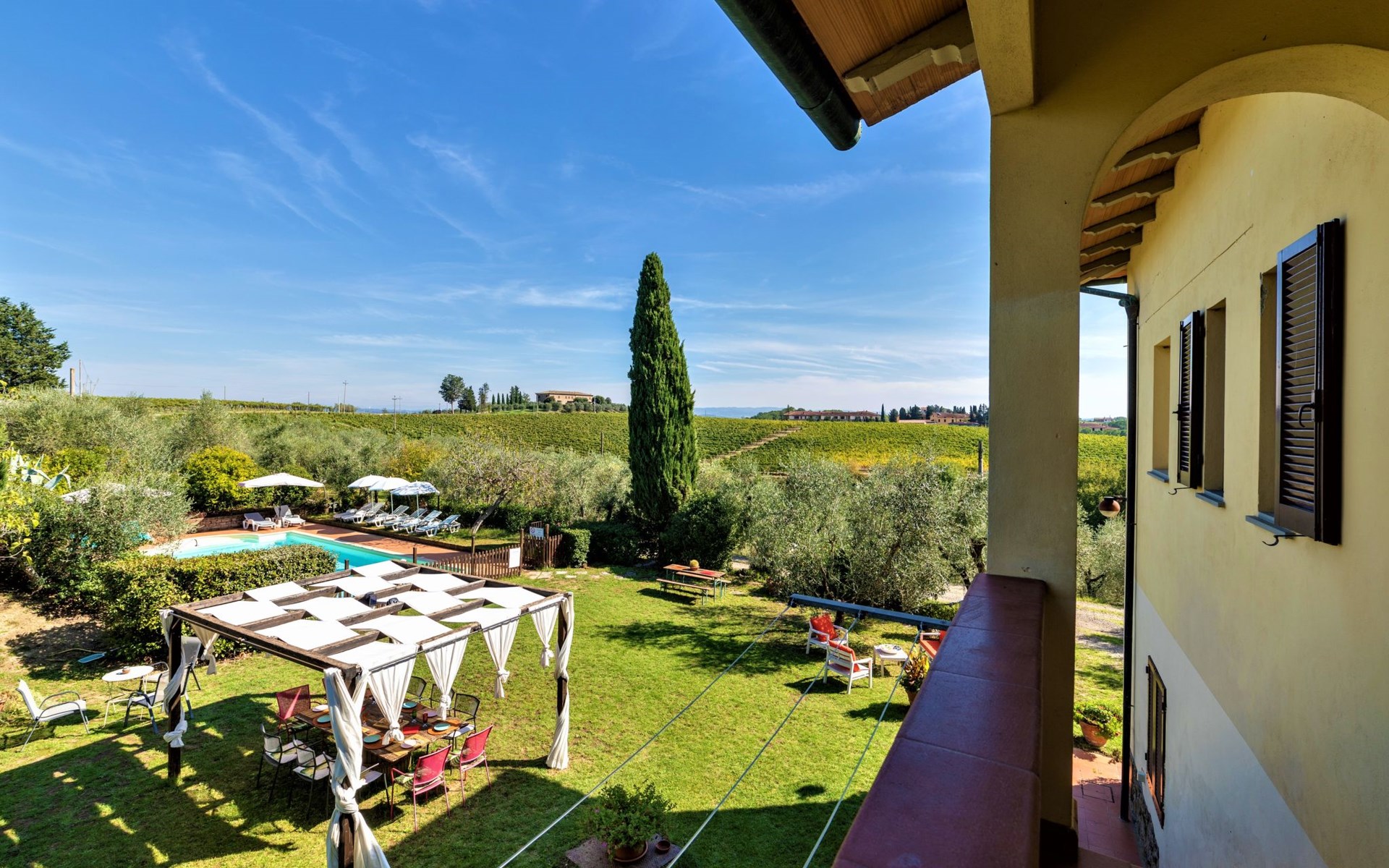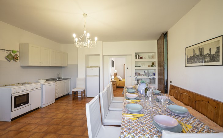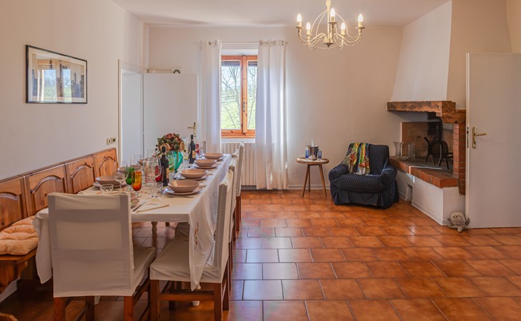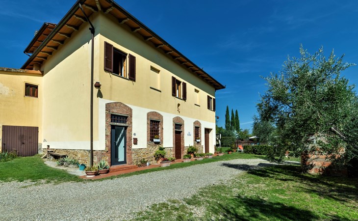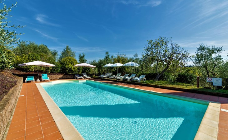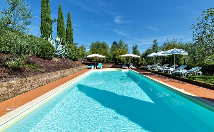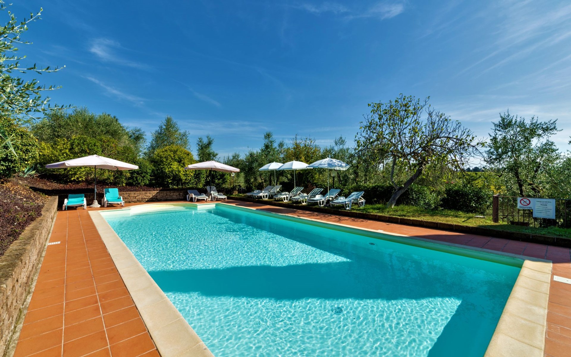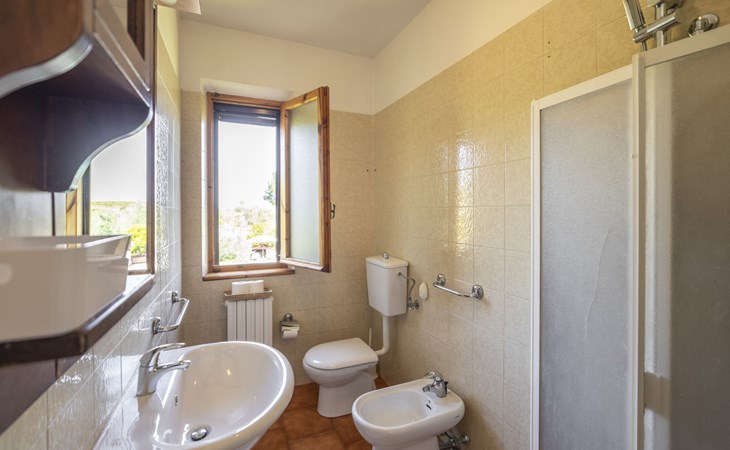 Beautiful country house "Podere San Michele", detached, surrounded by meadows and vineyards. 6 km from the centre of San Gimignano, 14 km from the centre of Poggibonsi, 45 km from the centre of Siena, in a secluded, sunny position, in the countryside. For shared use: property 20'000 m2, meadow. Private: swimming pool fenced (12 x 6 m, seasonal availability: 20.May. - 30.Sep.) with internal staircase. Outdoor shower, pergola, terrace, garden furniture, barbecue, pool maintenance by the owner/gardener. 200 m long narrow motor access to the house. Parking on the premises. Shop 5 km, grocery 5 km, supermarket 5 km, restaurant 3 km, bakery 5 km, bicycle rental 7 km, bus stop 2 km, railway station "Poggibonsi" 14 km, sandy beach "Cecina Mare" 70 km, indoor swimming pool 7 km. Tennis 7 km, indoor tennis centre 7 km, riding stable 3 km, walking paths from the house 100 m. Nearby attractions: Volterra 36 km, Siena 47 km, Firenze 56 m, Pisa 80 m. Please note: car recommended. Baby equipment (included). Groups of teenagers on request only. Part of the house is closed and unoccupied. The owner lives on the same property.