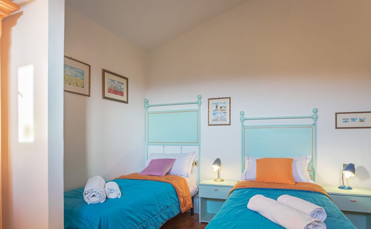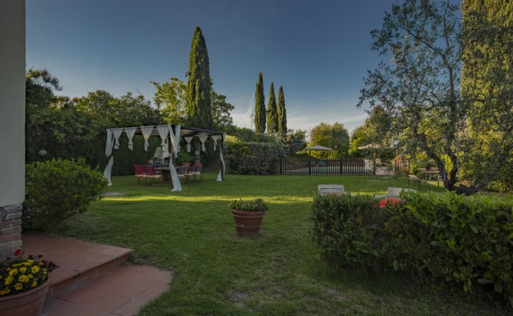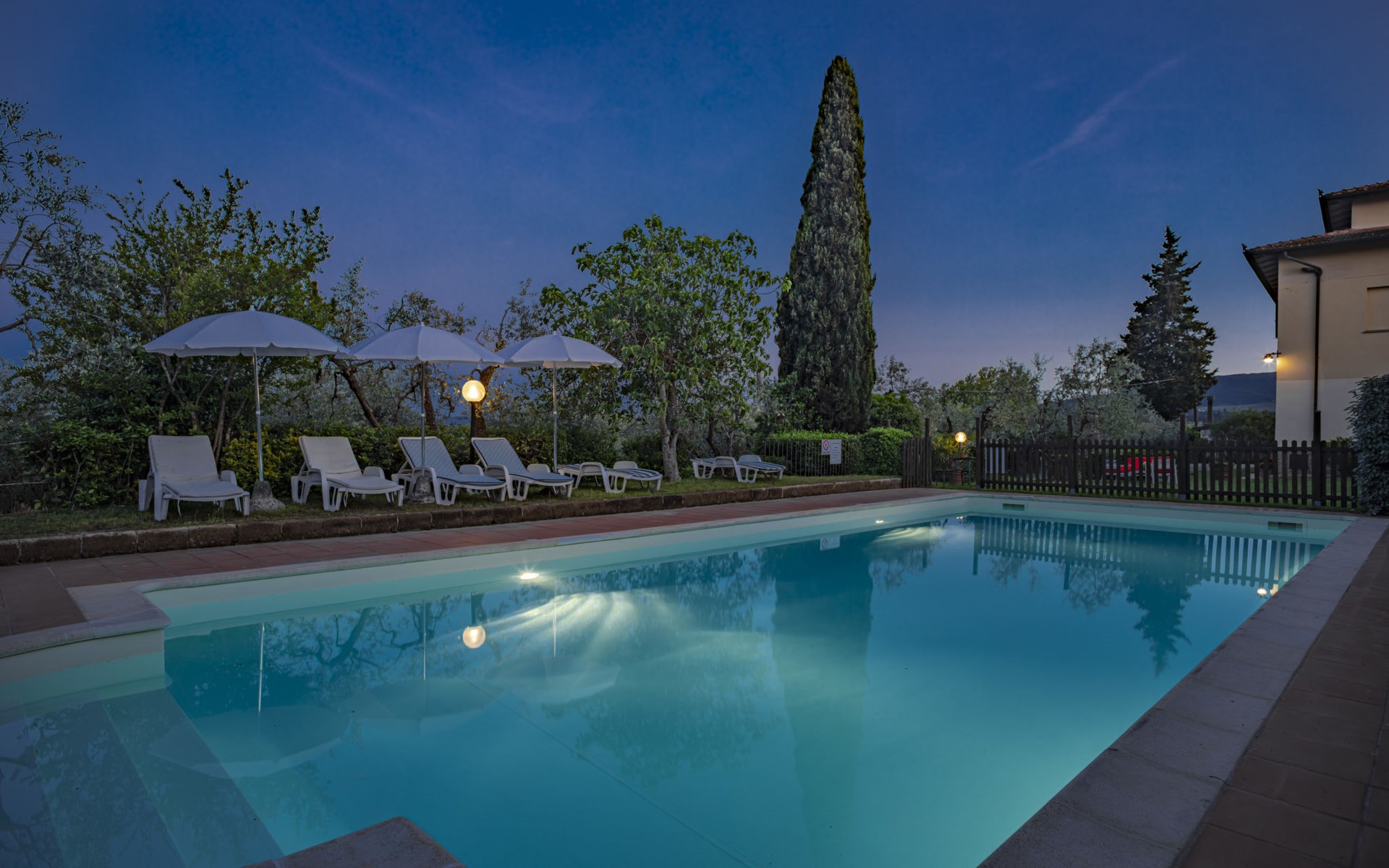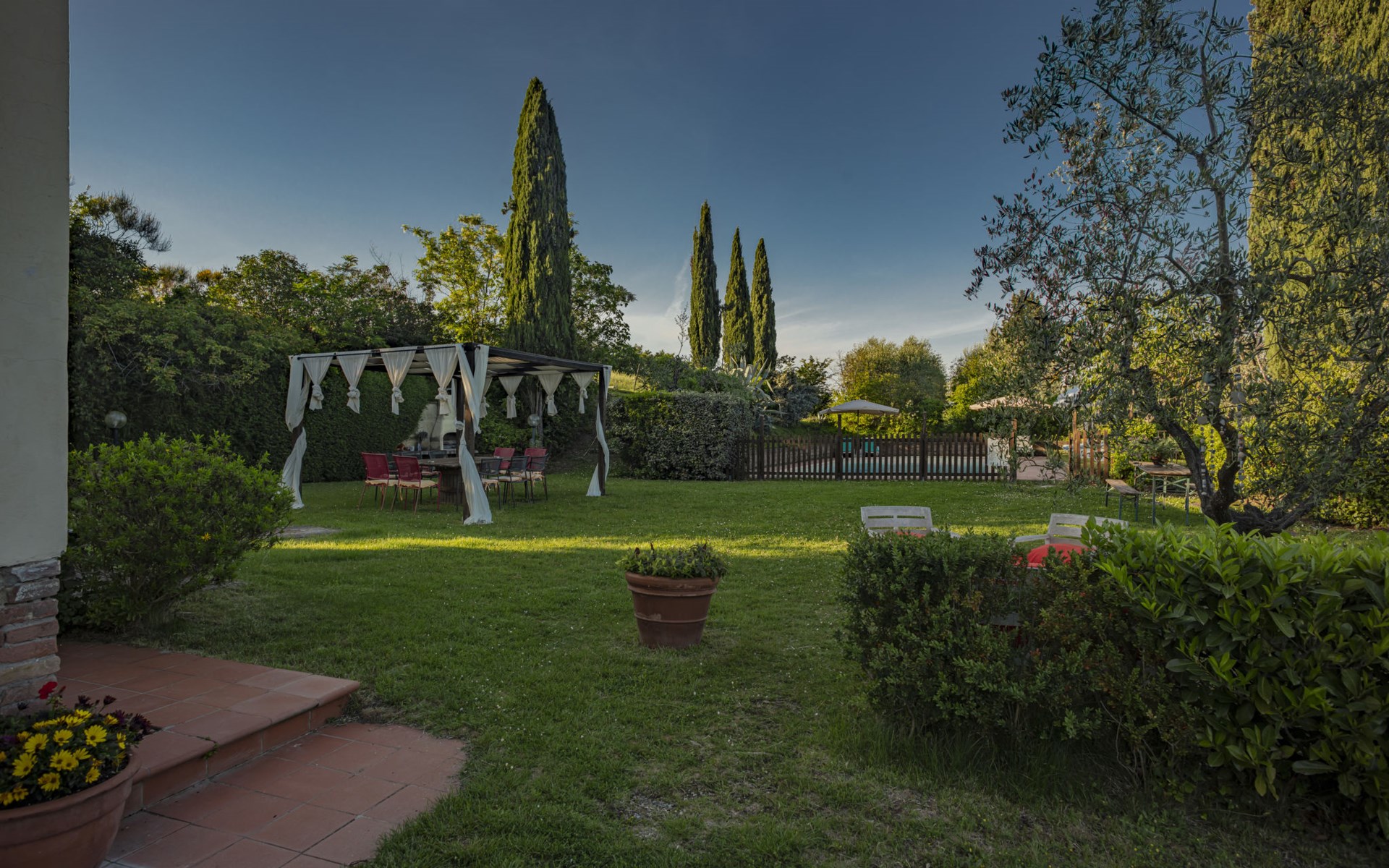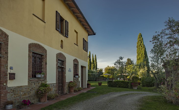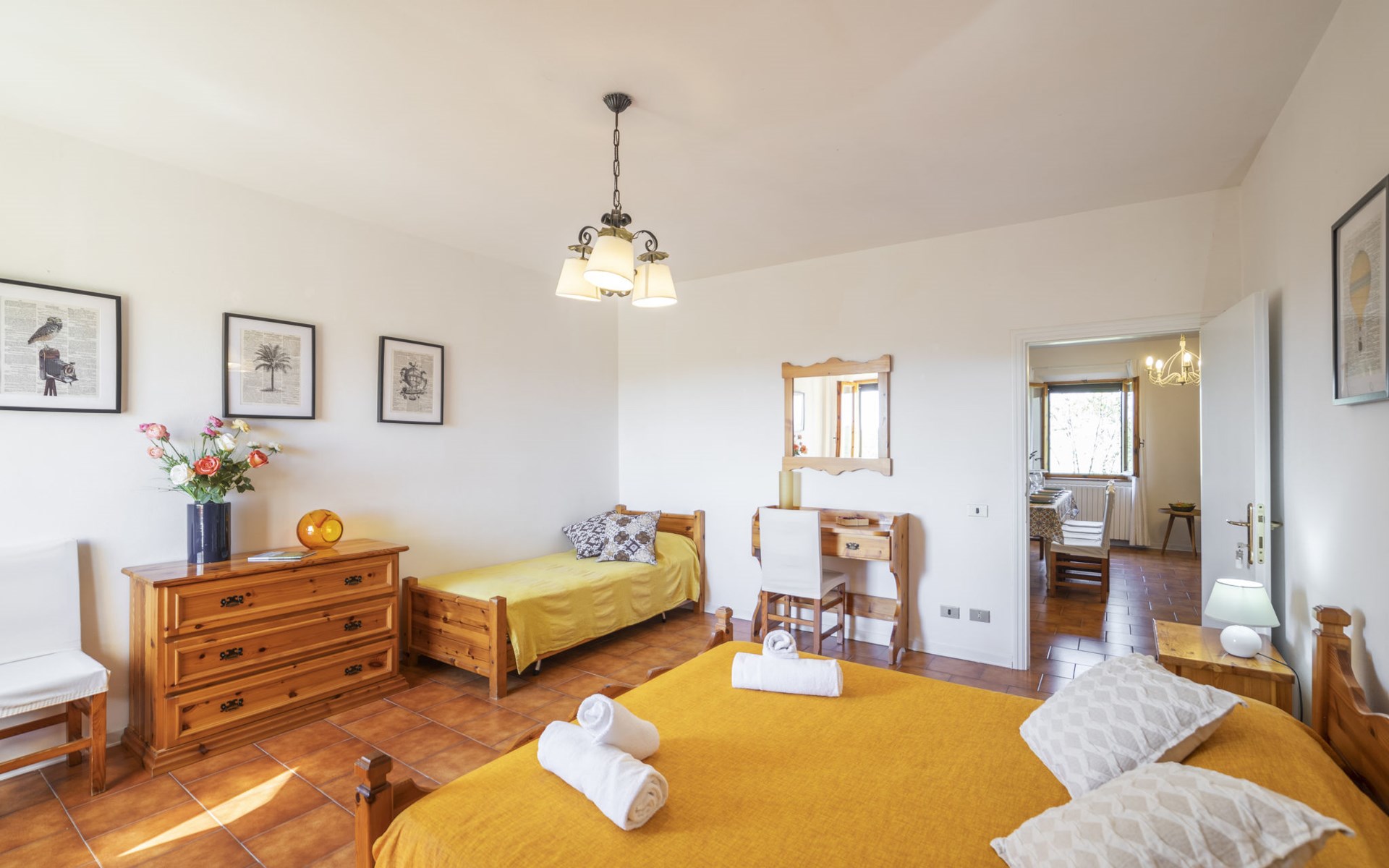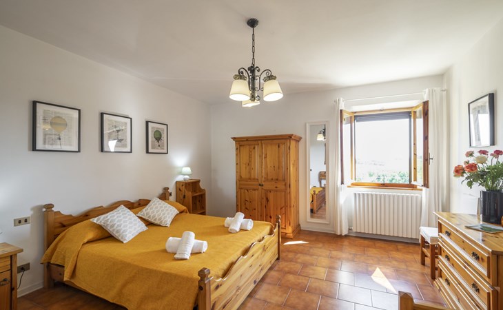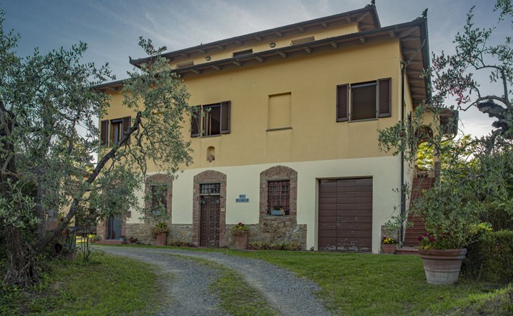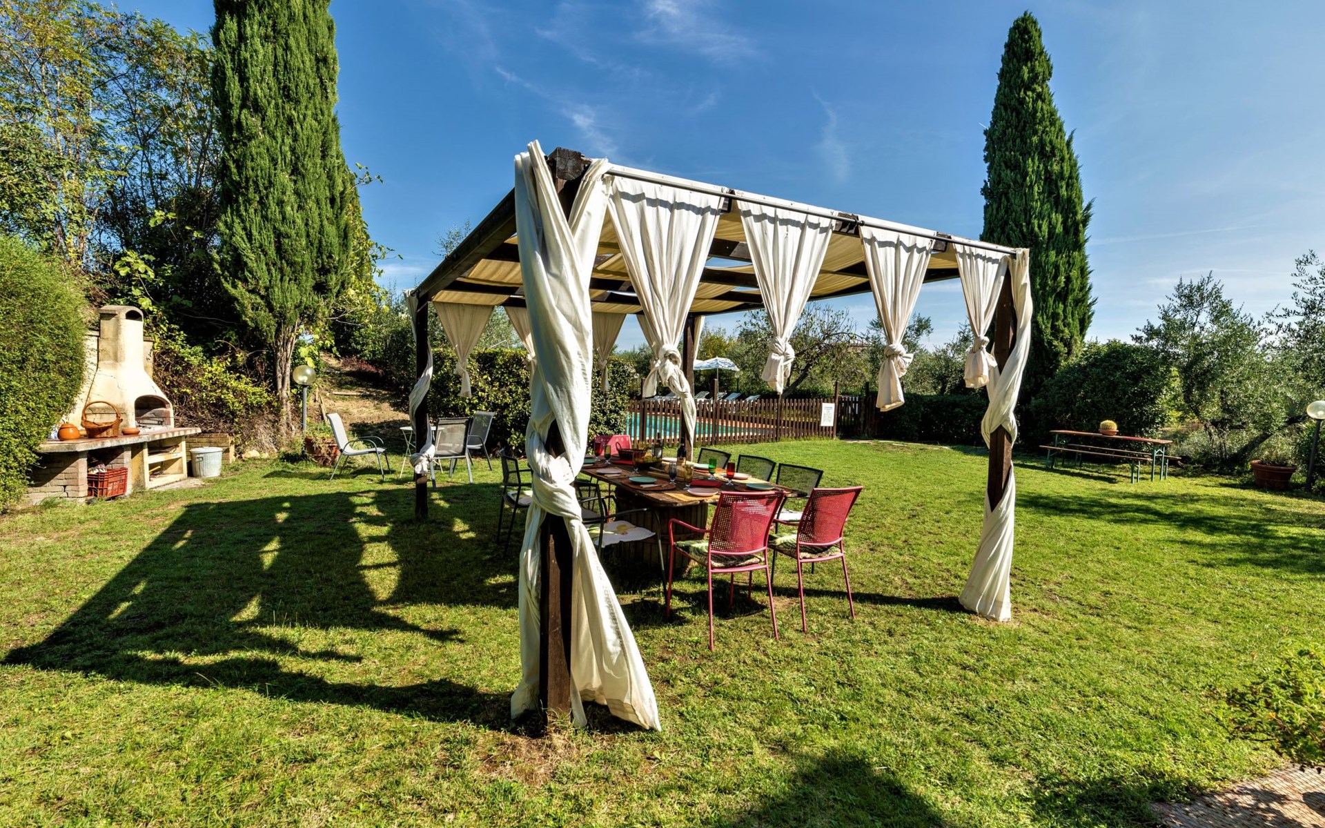 Beautiful country house "Podere San Michele", detached, surrounded by meadows and vineyards. 6 km from the centre of San Gimignano, 14 km from the centre of Poggibonsi, 45 km from the centre of Siena, in a secluded, sunny position, in the countryside. For shared use: property 20'000 m2, meadow. Private: swimming pool fenced (12 x 6 m, seasonal availability: 20.May. - 30.Sep.) with internal staircase. Outdoor shower, pergola, terrace, garden furniture, barbecue, pool maintenance by the owner/gardener. 200 m long narrow motor access to the house. Parking on the premises. Shop 5 km, grocery 5 km, supermarket 5 km, restaurant 3 km, bakery 5 km, bicycle rental 7 km, bus stop 2 km, railway station "Poggibonsi" 14 km, sandy beach "Cecina Mare" 70 km, indoor swimming pool 7 km. Tennis 7 km, indoor tennis centre 7 km, riding stable 3 km, walking paths from the house 100 m. Nearby attractions: Volterra 36 km, Siena 47 km, Firenze 56 m, Pisa 80 m. Please note: car recommended. Baby equipment (included). Groups of teenagers on request only. Part of the house is closed and unoccupied. The owner lives on the same property.