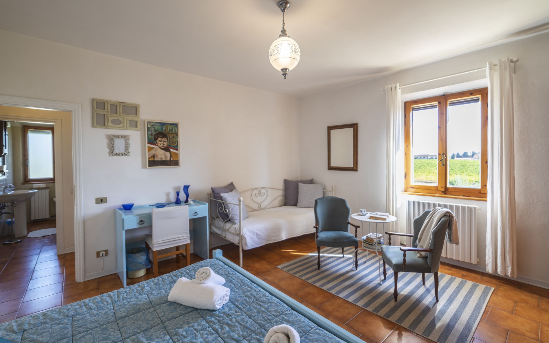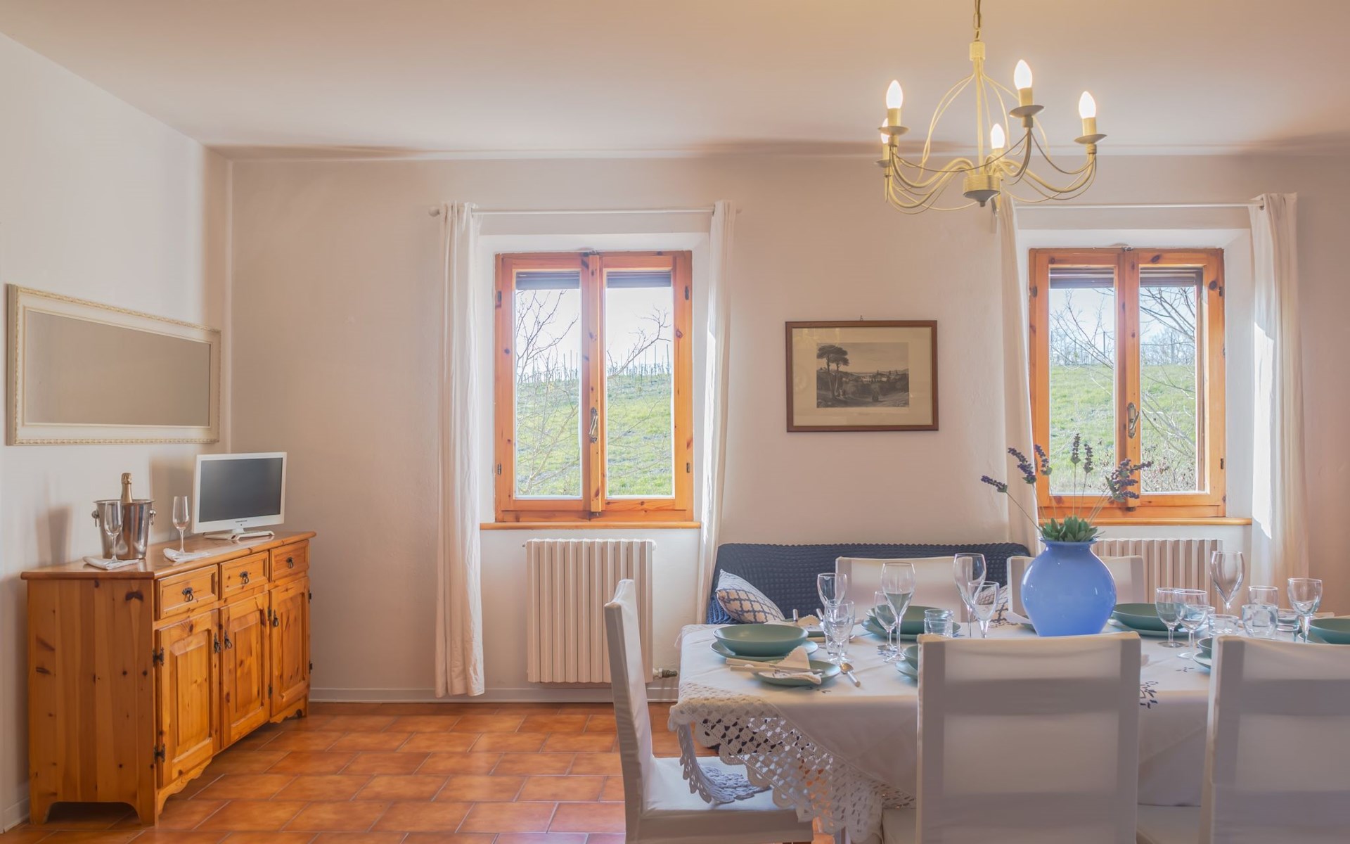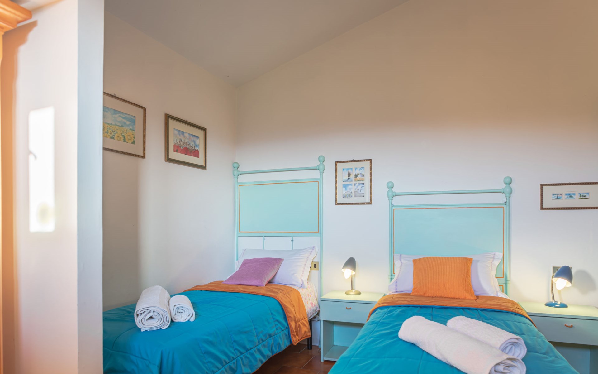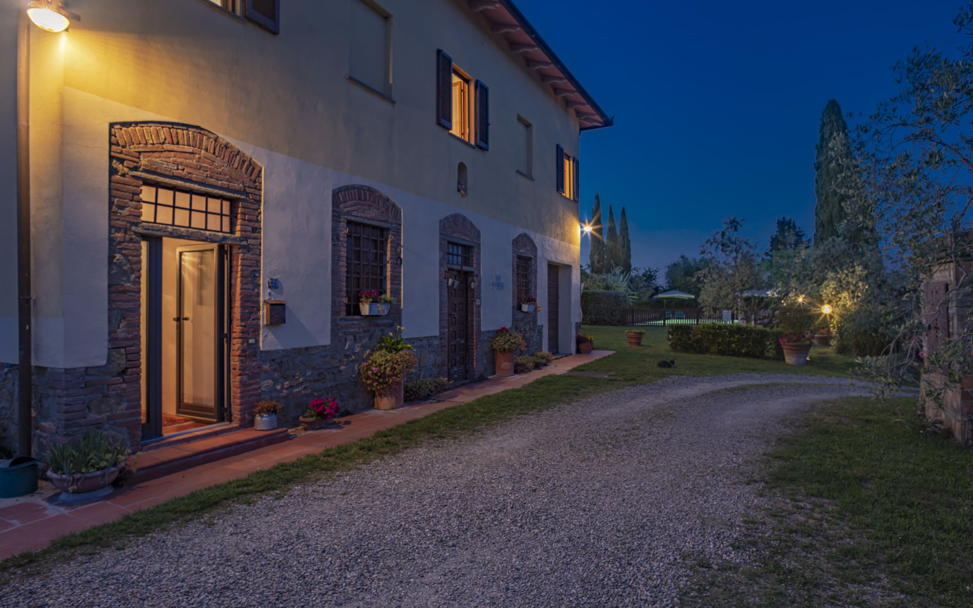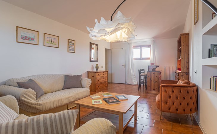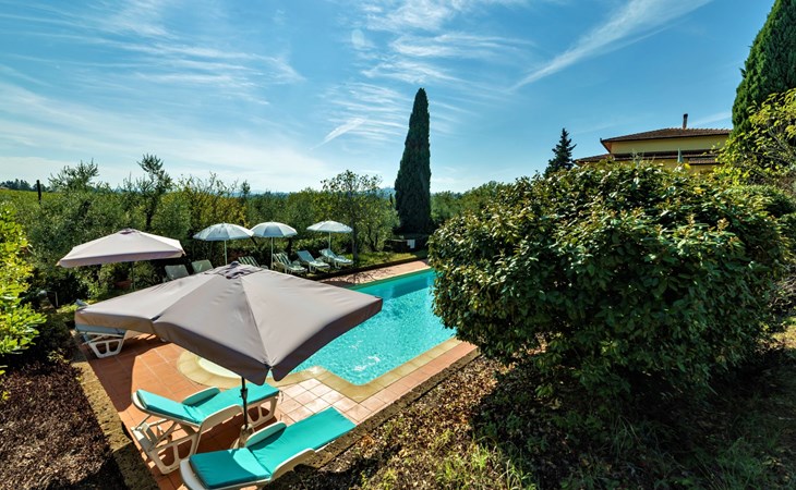 Beautiful country house "Podere San Michele", detached, surrounded by meadows and vineyards. 6 km from the centre of San Gimignano, 14 km from the centre of Poggibonsi, 45 km from the centre of Siena, in a secluded, sunny position, in the countryside. For shared use: property 20'000 m2, meadow. Private: swimming pool fenced (12 x 6 m, seasonal availability: 20.May. - 30.Sep.) with internal staircase. Outdoor shower, pergola, terrace, garden furniture, barbecue, pool maintenance by the owner/gardener. 200 m long narrow motor access to the house. Parking on the premises. Shop 5 km, grocery 5 km, supermarket 5 km, restaurant 3 km, bakery 5 km, bicycle rental 7 km, bus stop 2 km, railway station "Poggibonsi" 14 km, sandy beach "Cecina Mare" 70 km, indoor swimming pool 7 km. Tennis 7 km, indoor tennis centre 7 km, riding stable 3 km, walking paths from the house 100 m. Nearby attractions: Volterra 36 km, Siena 47 km, Firenze 56 m, Pisa 80 m. Please note: car recommended. Baby equipment (included). Groups of teenagers on request only. Part of the house is closed and unoccupied. The owner lives on the same property.