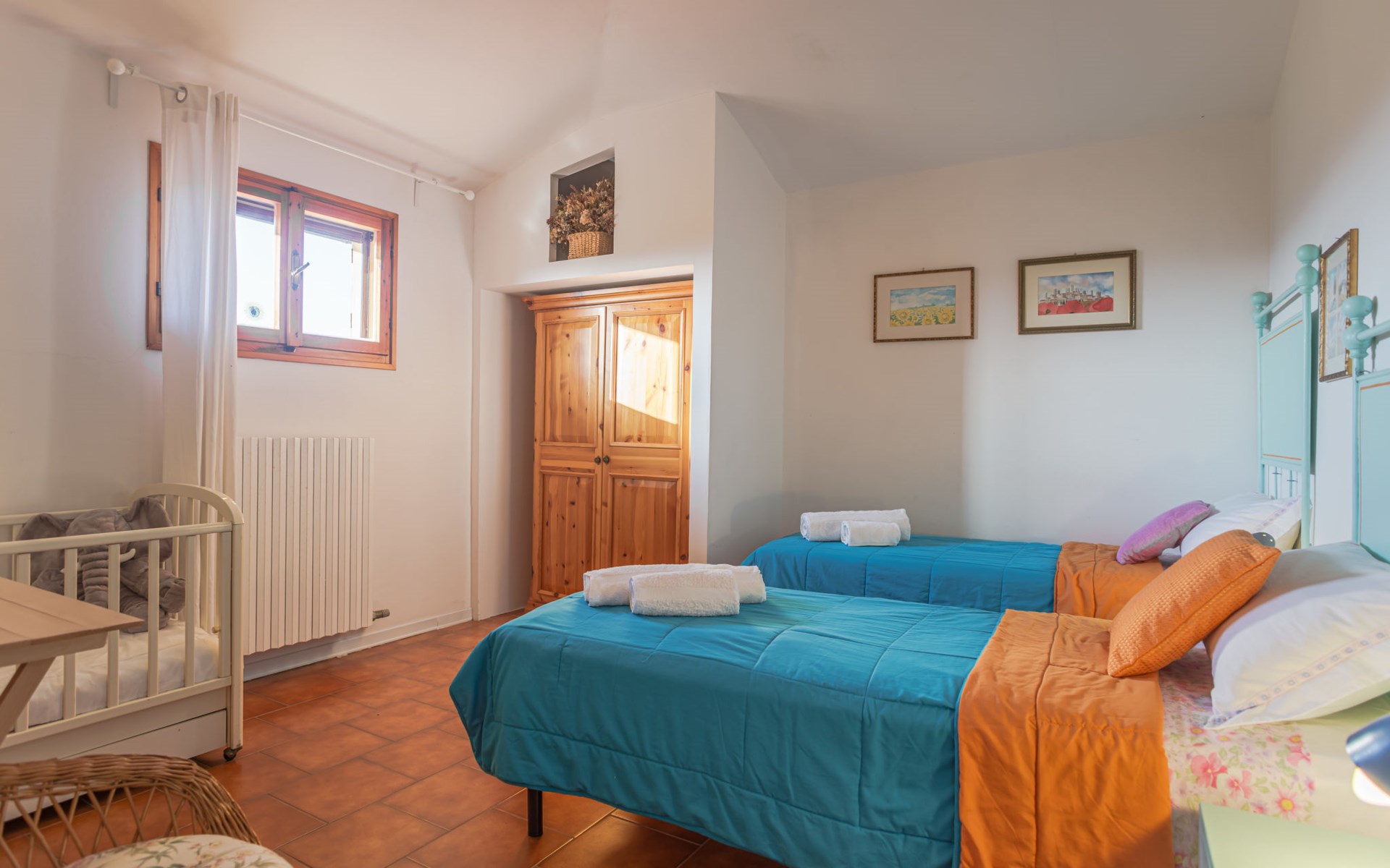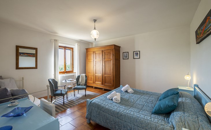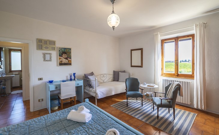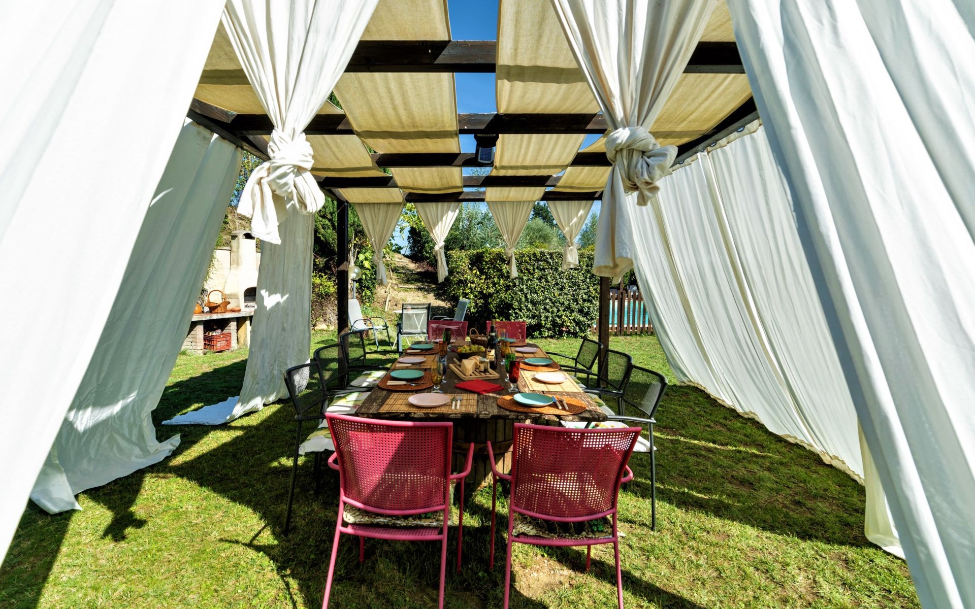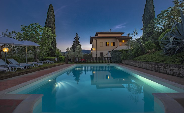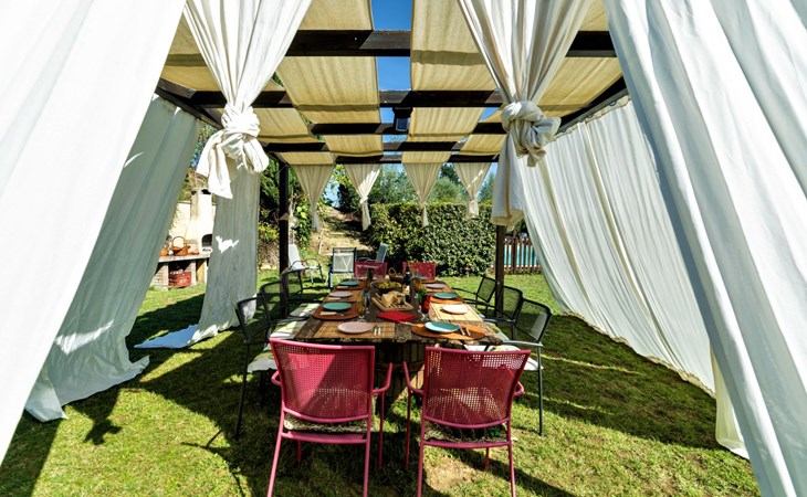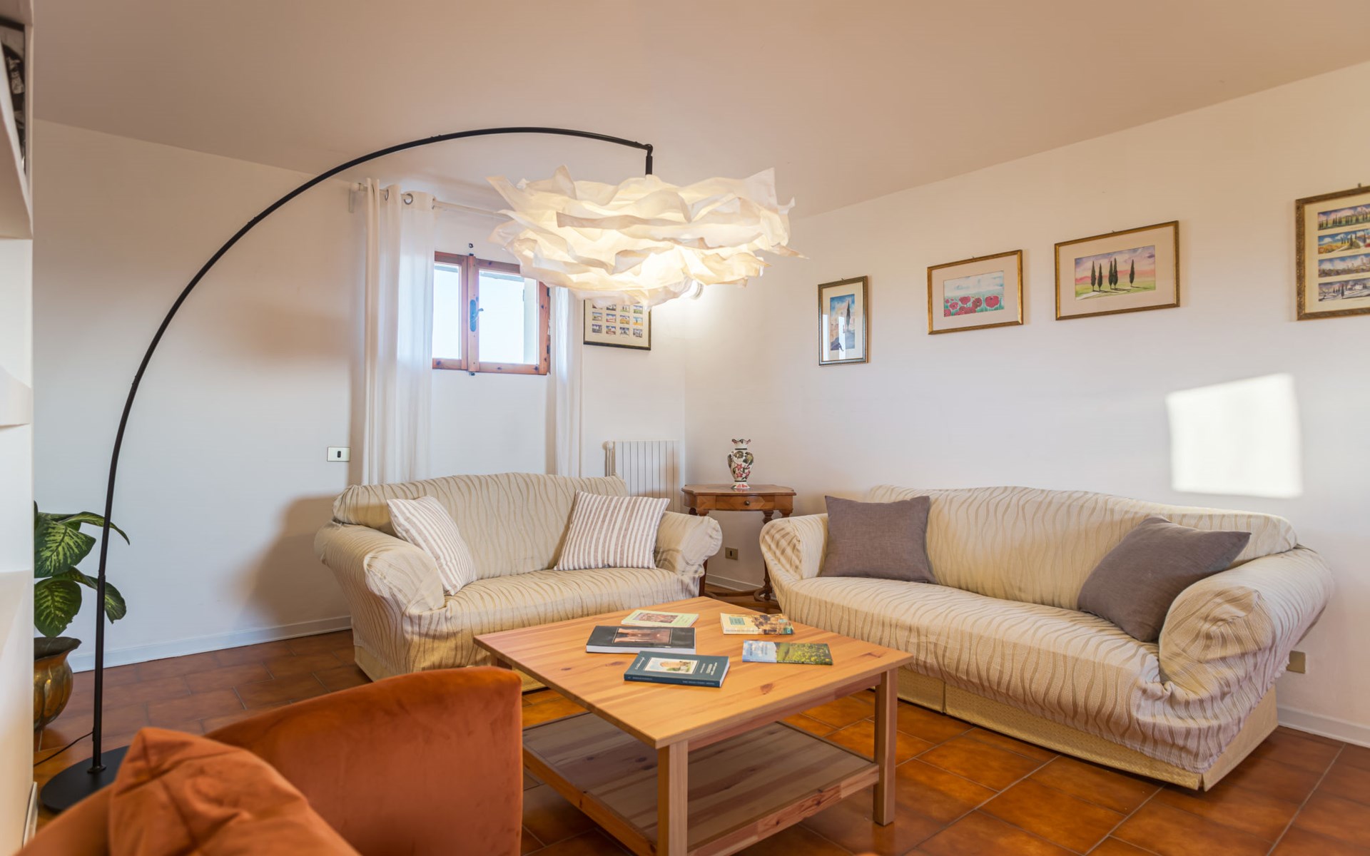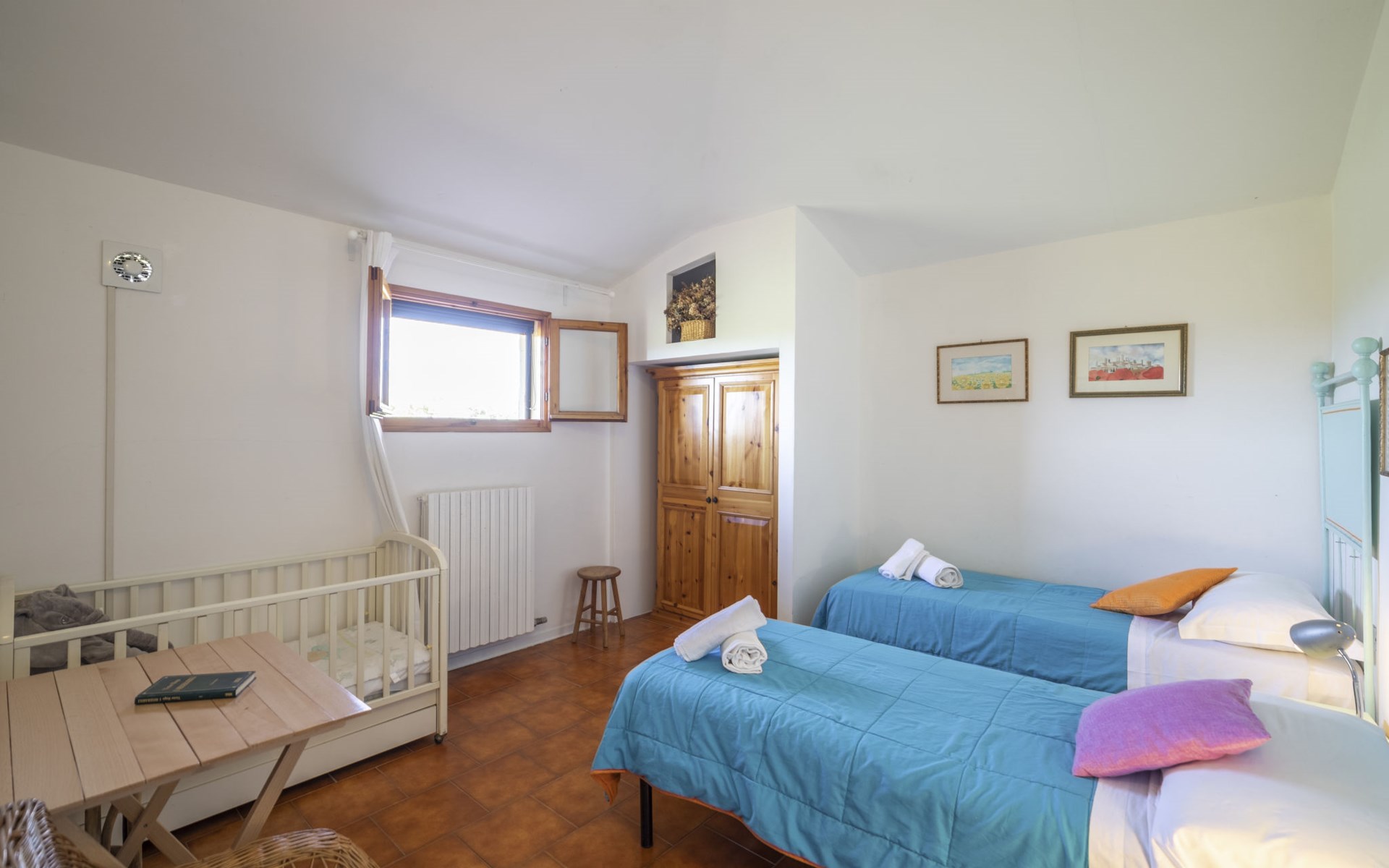 Beautiful country house "Podere San Michele", detached, surrounded by meadows and vineyards. 6 km from the centre of San Gimignano, 14 km from the centre of Poggibonsi, 45 km from the centre of Siena, in a secluded, sunny position, in the countryside. For shared use: property 20'000 m2, meadow. Private: swimming pool fenced (12 x 6 m, seasonal availability: 20.May. - 30.Sep.) with internal staircase. Outdoor shower, pergola, terrace, garden furniture, barbecue, pool maintenance by the owner/gardener. 200 m long narrow motor access to the house. Parking on the premises. Shop 5 km, grocery 5 km, supermarket 5 km, restaurant 3 km, bakery 5 km, bicycle rental 7 km, bus stop 2 km, railway station "Poggibonsi" 14 km, sandy beach "Cecina Mare" 70 km, indoor swimming pool 7 km. Tennis 7 km, indoor tennis centre 7 km, riding stable 3 km, walking paths from the house 100 m. Nearby attractions: Volterra 36 km, Siena 47 km, Firenze 56 m, Pisa 80 m. Please note: car recommended. Baby equipment (included). Groups of teenagers on request only. Part of the house is closed and unoccupied. The owner lives on the same property.