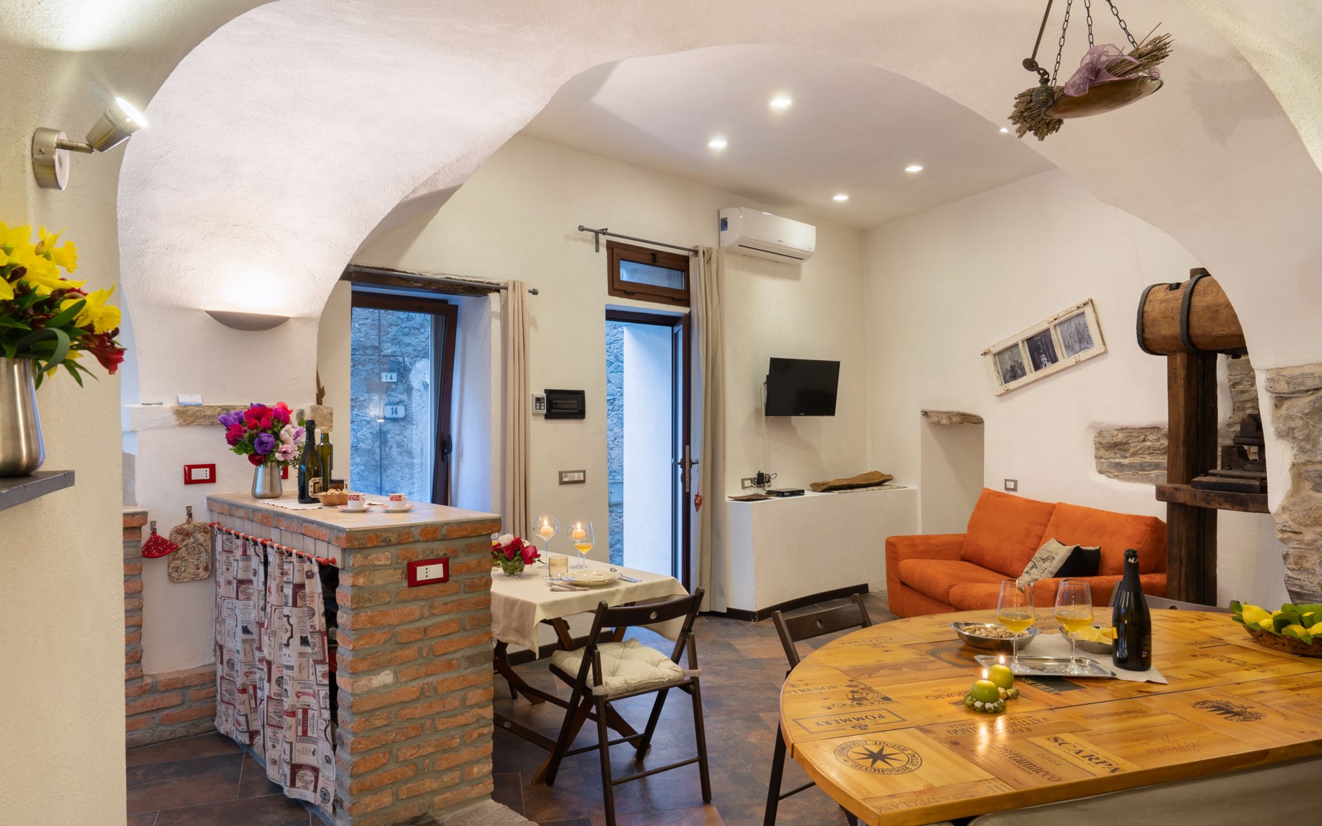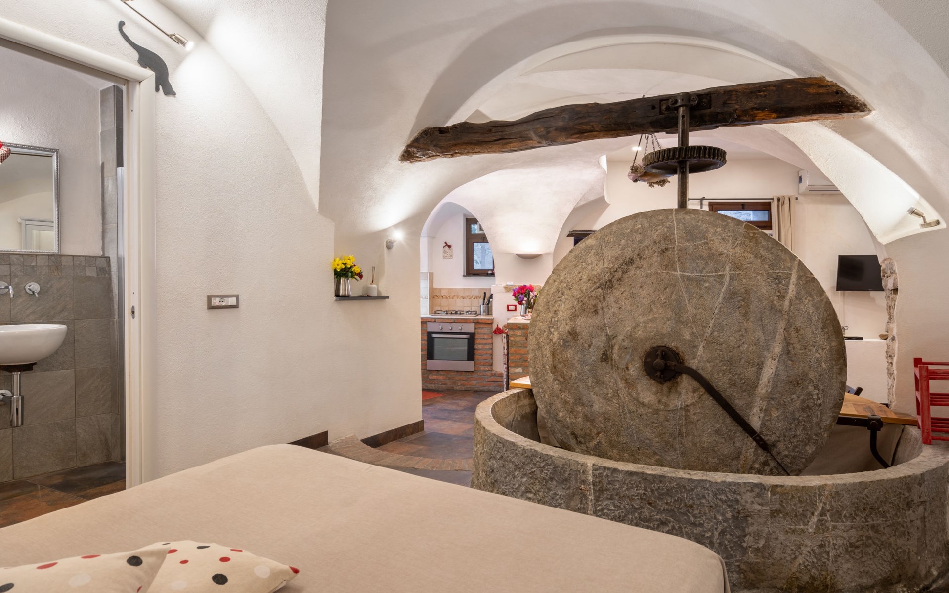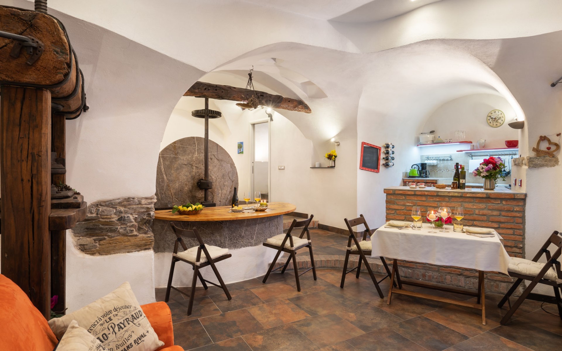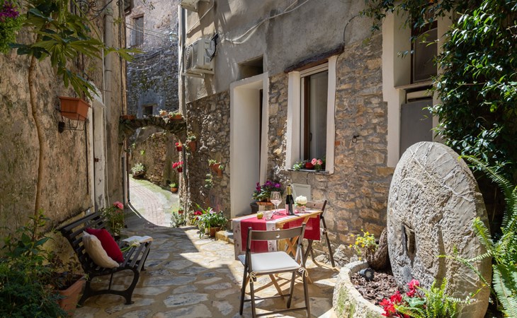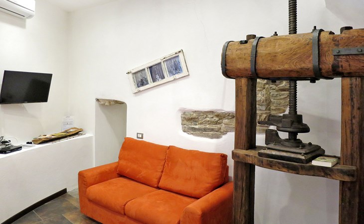 Rustic, historical windmill "Mulino Rossi". In the centre of Pietrabruna, 10 km from the centre of San Lorenzo al Mare, 16 km from the centre of Imperia, in the heart of the city, traffic calmed area, 9.5 km from the sea. Stepped path to the house. Public parking 100 m. Shop 100 m, supermarket 10 km, restaurant, bar 100 m, bus stop 30.3 km, sandy beach "San Lorenzo al Mare" 10 km. Walking paths from the house 100 m.