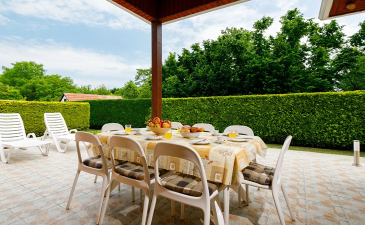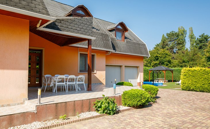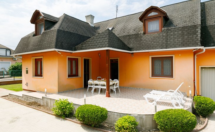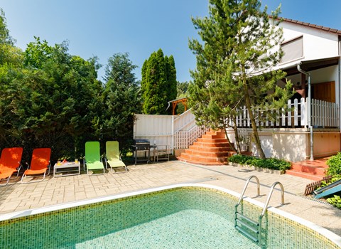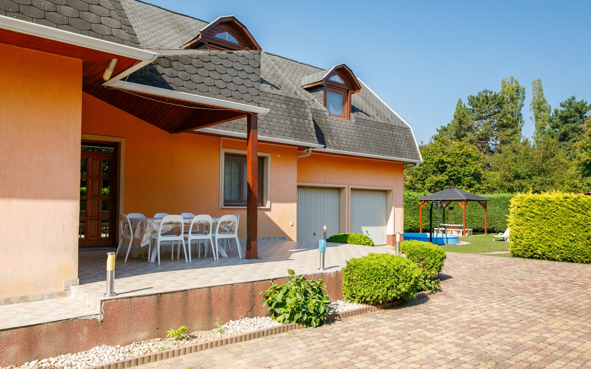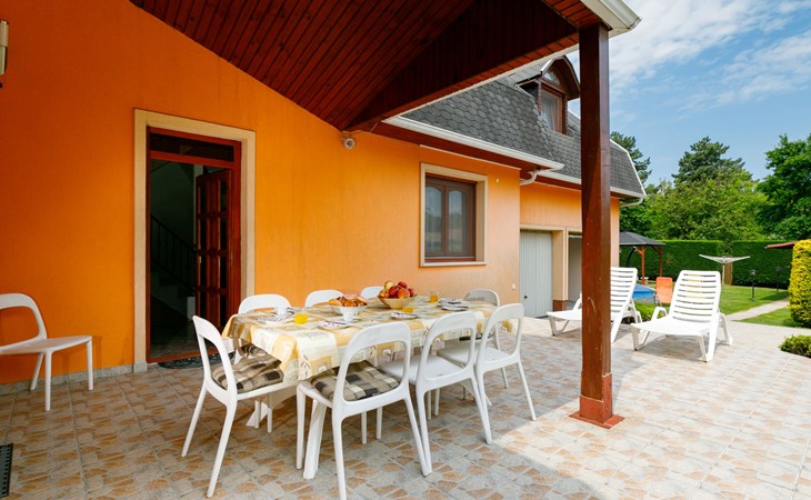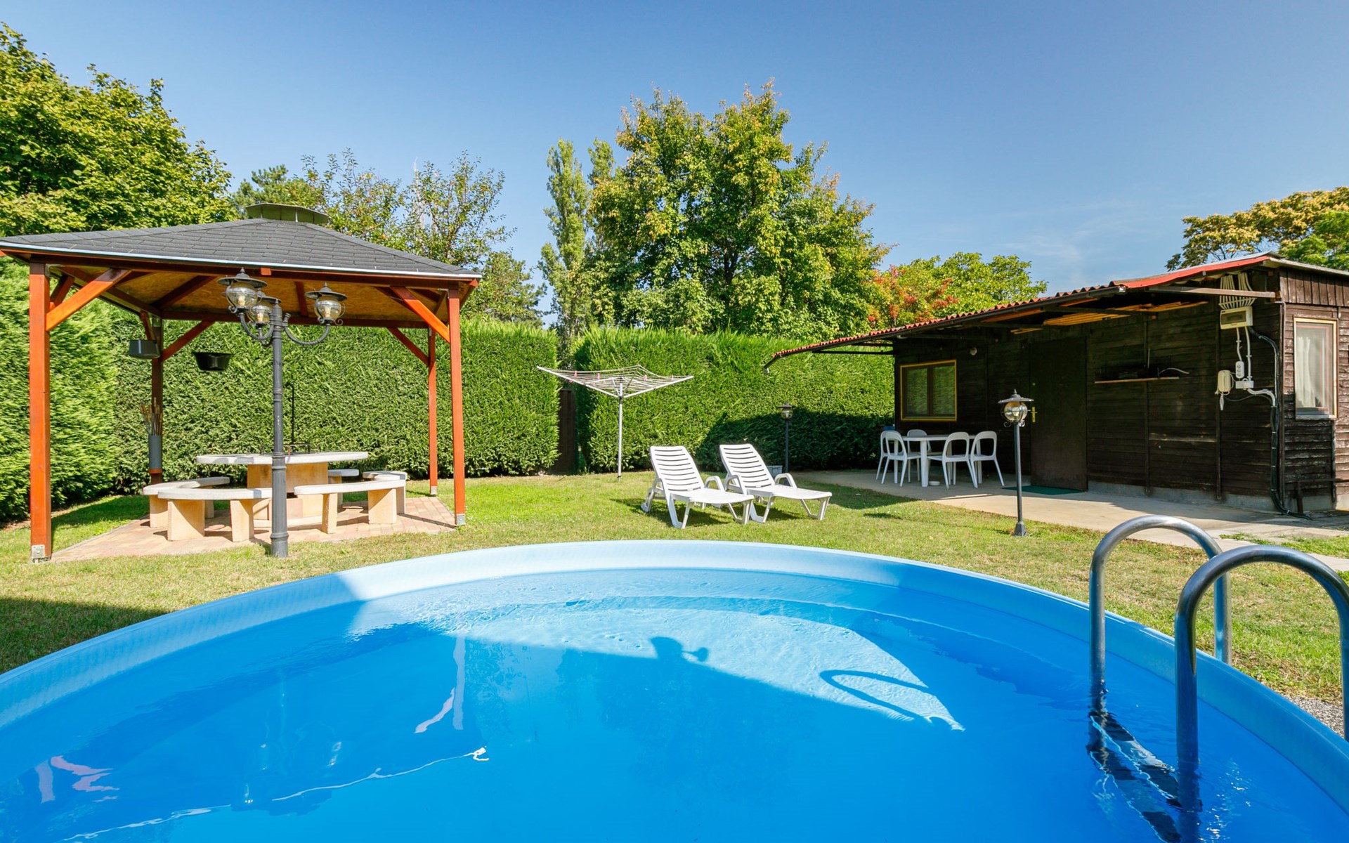 Balatonszárszó 20 km from Siófok: Single-family house "Narcisse". 750 m from the centre of Balatonszarszo, 25 km from the centre of Siofok, 62 km from the centre of Keszthely, in a sunny position in the residential district, 300 m from the lake, 650 m from the beach. Private: property 800 m2 (fenced) with lawn and trees, swimming pool round (3,60 m diameter, depth 90 cm, seasonal availability: 15.May. - 15.Sep.). Fireplace. In the house: WiFi, table tennis, billiard table, table football. Parking (for 2 cars) on the premises, single garage. Shop 750 m, supermarket 12 km, restaurant 2 km, bicycle rental 1.2 km, grass beach 300 m, thermal baths "Igal" 43 km. Tennis 1.6 km, riding stable 16 km, cycle lane 650 m, children's playground 1 km. Nearby attractions: Siófok Giant Wheels 19 km, Aquapark Siófok 21 km, Adventure Park Zamárdi 11 km, Bella Zoo Siófok 23 km, Hévíz Thermal Bath 62 km, Ferry Szántód 7 km.