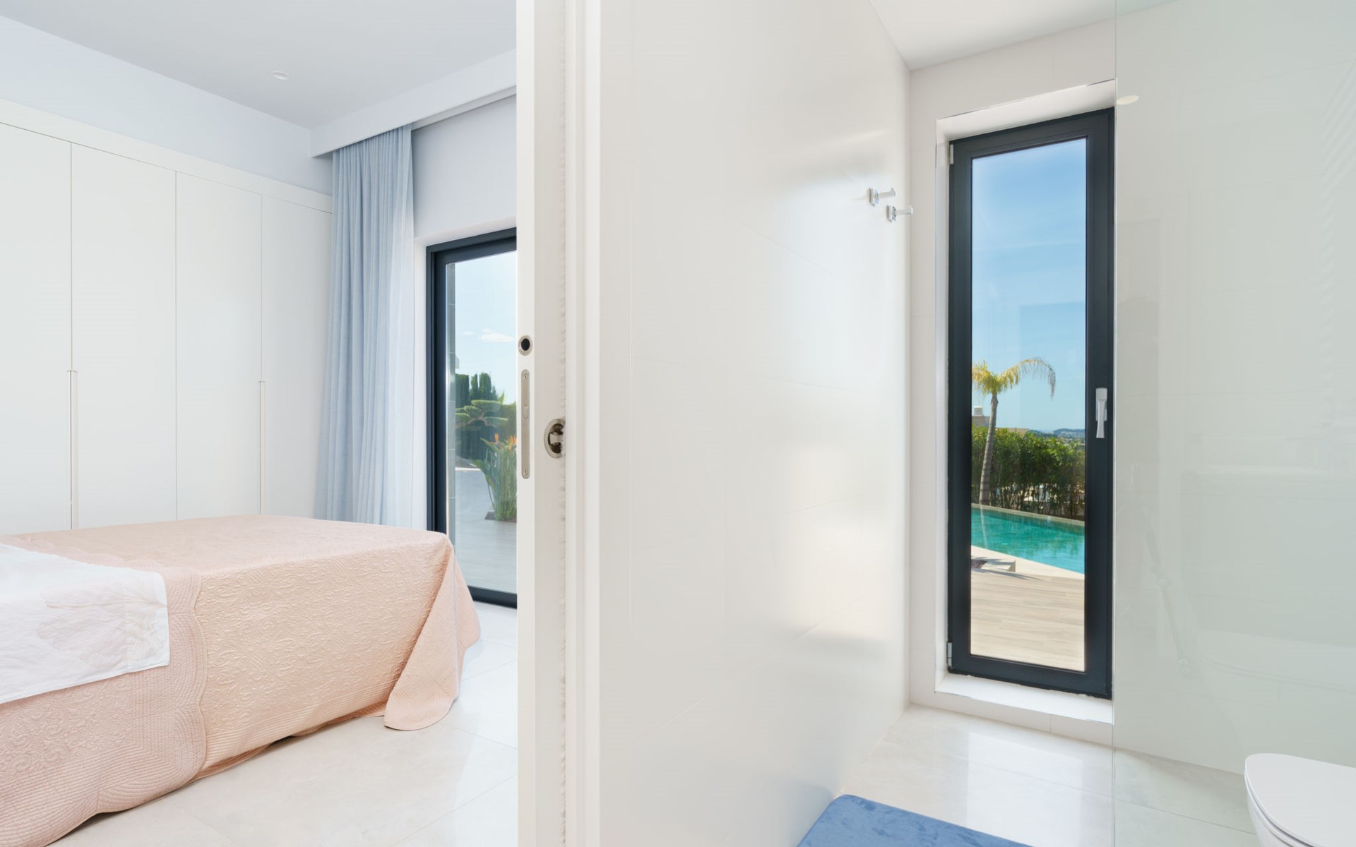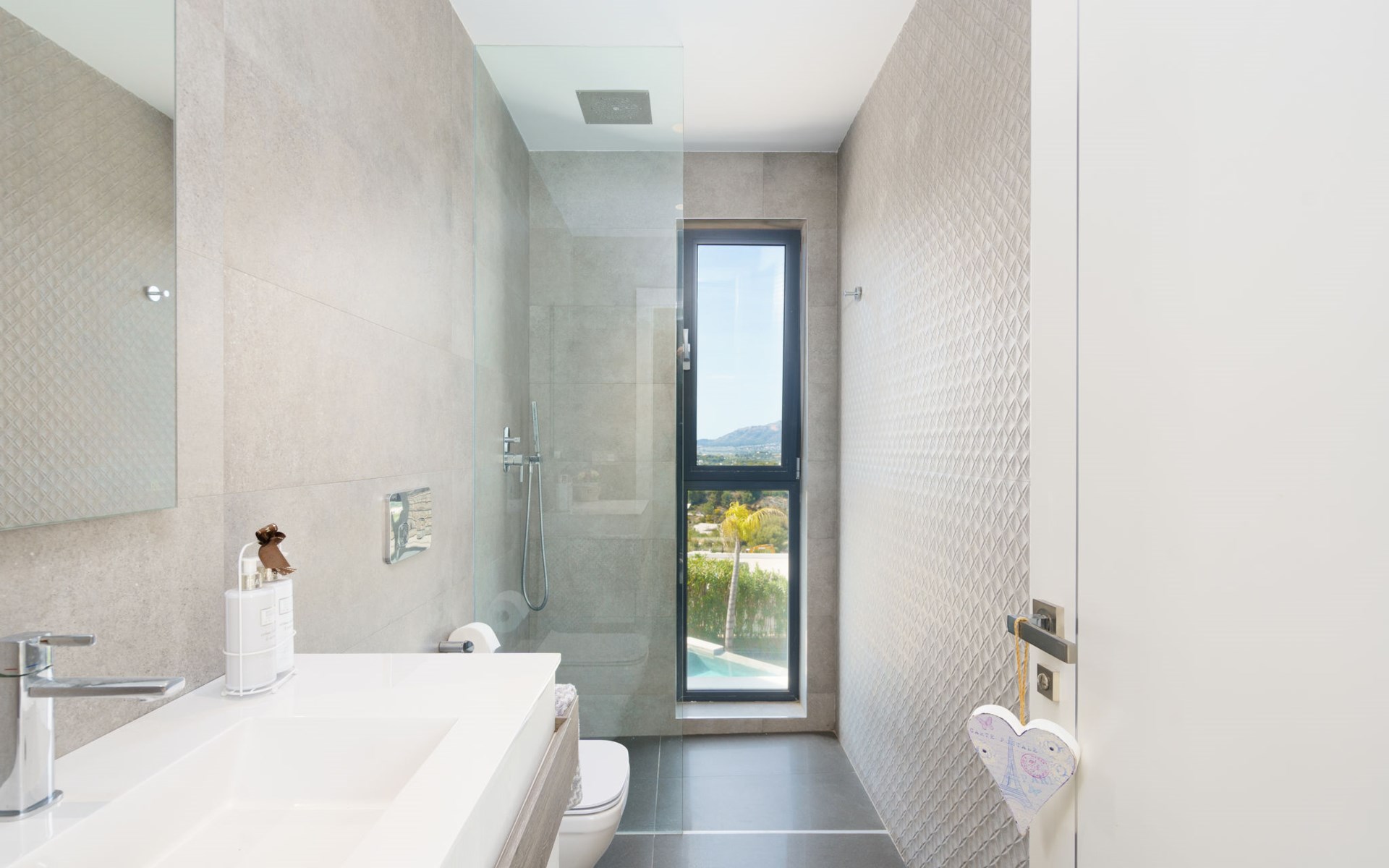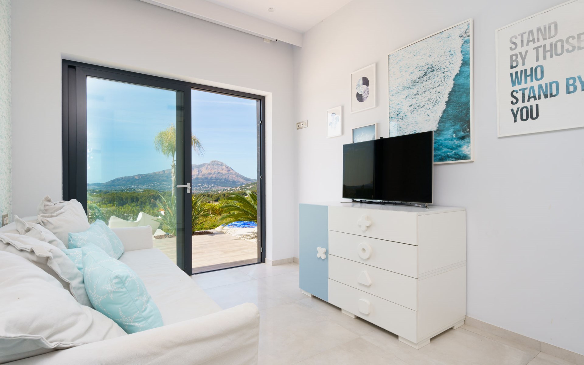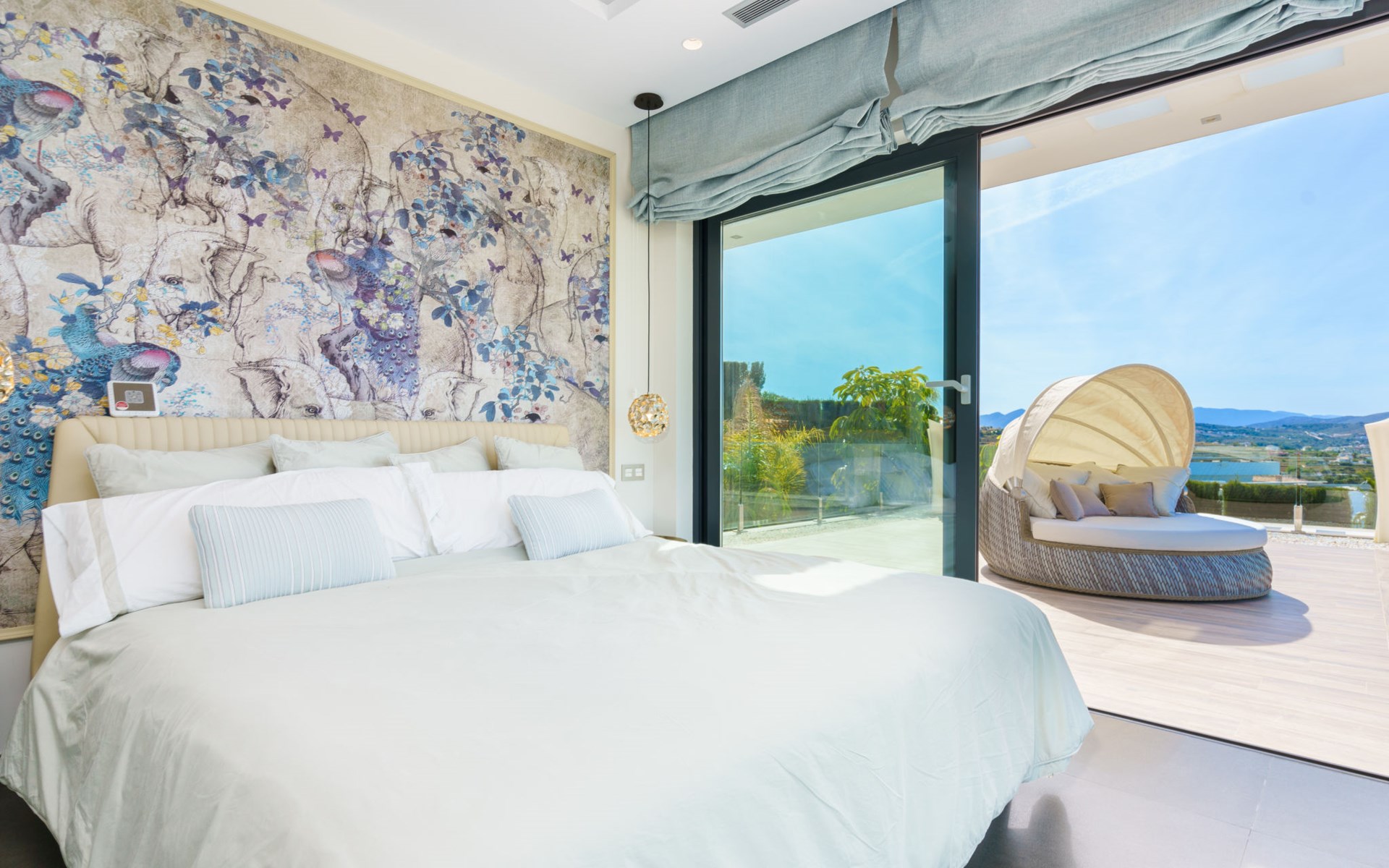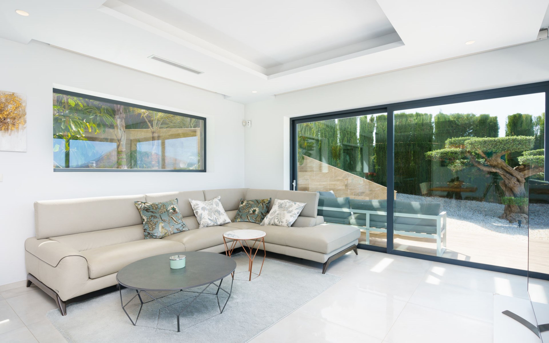 Very large, very modern, very luxurious villa "Adonia", 3 storeys. In the district of Cansalades Park Monte Olimpo 5 km from the centre of Jávea - El Arenal, 8 km from the centre of Moraira, in a quiet, sunny position, 5 km from the sea, 5 km from the beach. Private: large, beautiful, well-kept terraced garden with lawn and wildlife garden, swimming pool angular (10 x 4 m, depth 40 - 180 cm, seasonal availability: 01.Jan. - 31.Dec.) with internal staircase. Outdoor shower, pergola, terrace, garden furniture, barbecue. In the house: central heating system, air conditioning, burglar alarm system. Bumpy motor access to the house. Parking (for 2 cars) on the premises. Supermarket 2.5 km, restaurant 1 km, bar 2.5 km, bakery 2.5 km, café 2.5 km, bus stop "Parada Arenal" 5.2 km, sandy beach "El Arenal" 5 km, shingle beach "La Granadella" 10 km. Sports harbour 6 km, marina 6 km, golf course (9 hole) 3 km, surf school 5 km, sailing school 5 km. Please note: car recommended. The owner does not accept any youth groups.