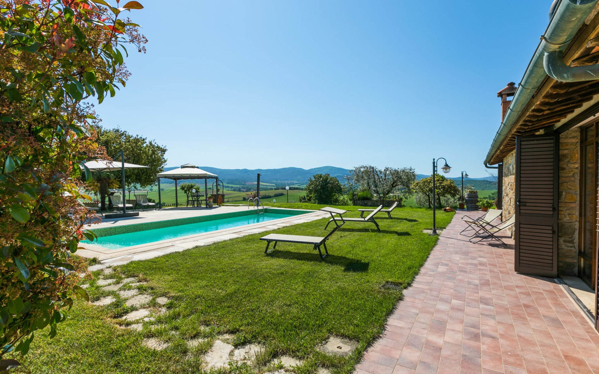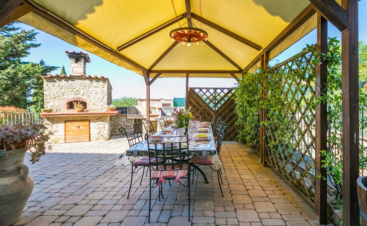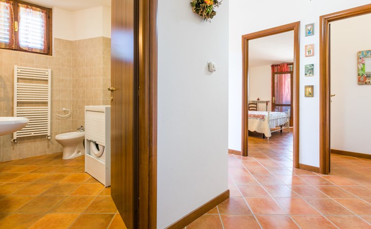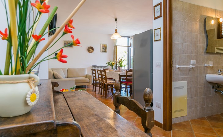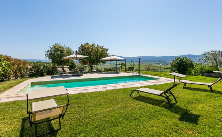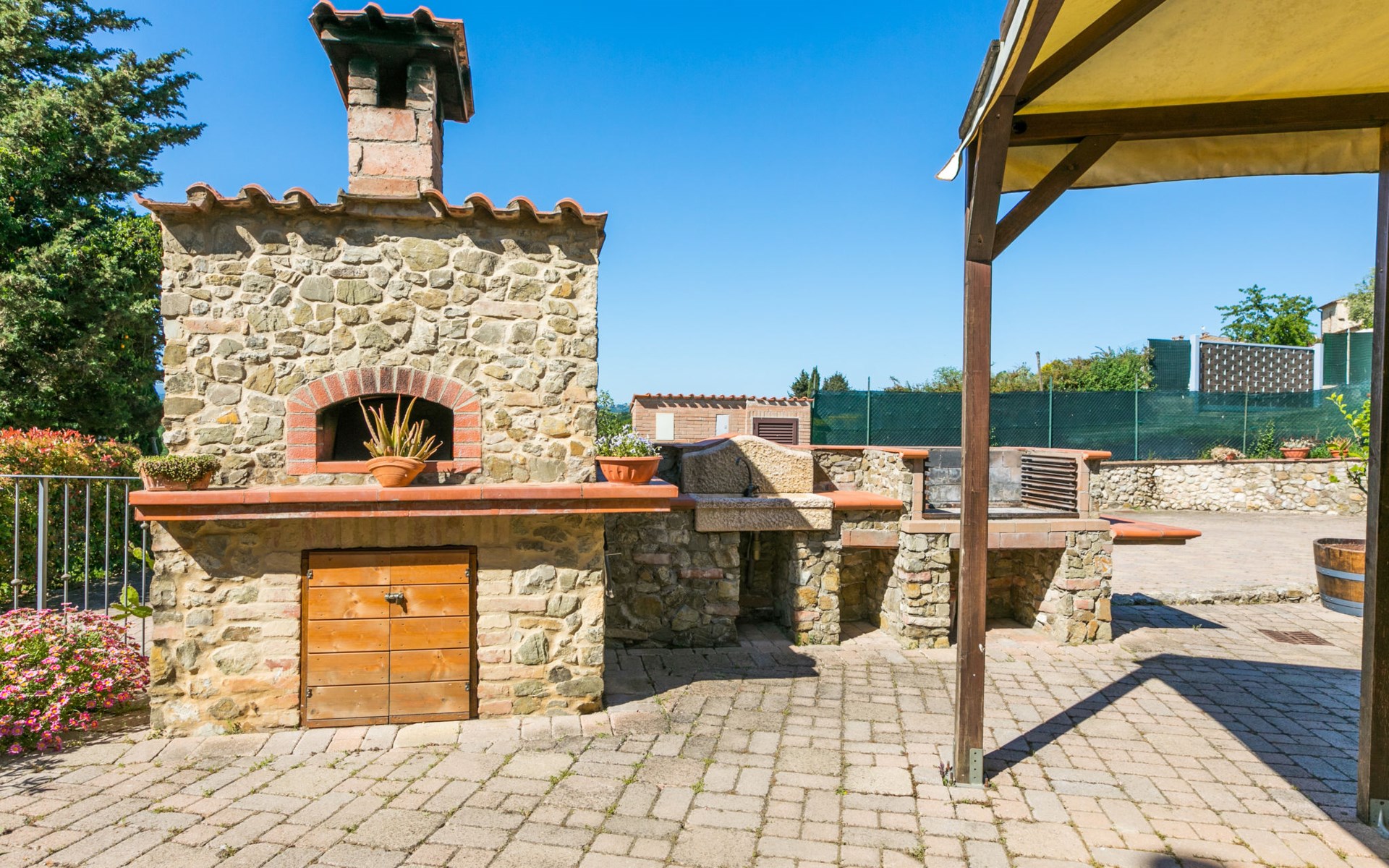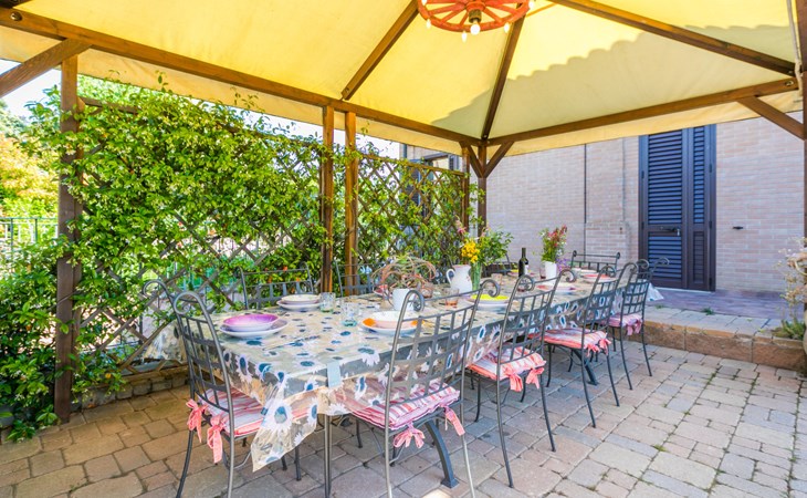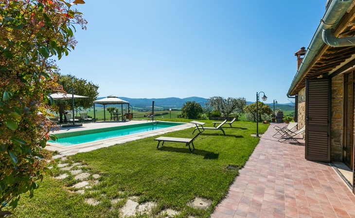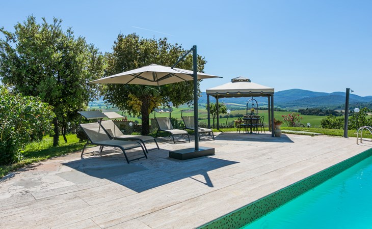 Lano 10 km from Colle di Val d'Elso: Beautiful semi-detached house "Metallo", detached, surrounded by trees, meadows and fields. In the hamlet Lano 10 km from the centre of Colle di Val d'Elsa, 5 km from the centre of Casole d'Elsa, 25 km from the centre of Siena, in an elevated position on a slope. For shared use: terraced garden, 1 ha (fenced) with plants and trees, meadow. Private: swimming pool (10 x 3 m, depth 140 - 180 cm, seasonal availability: 15.May. - 05.Oct.). Outdoor shower, arbour, terrace, garden furniture, barbecue, pool maintenance by the owner/gardener. Motor access (200 m via unmade road). Parking on the premises. Grocery 5 km, supermarket 10 km, restaurant 5 km, bus stop 1.5 km, railway station "Poggibonsi" 15 km, sandy beach "Cecina Mare" 67 km. Nearby attractions: San Gimignano 24 km, Siena 31 km, Firenze 70 km. Please note: baby equipment (included). Groups of teenagers on request only. Residence with electric gates. Owner lives in separate semi-detached house.