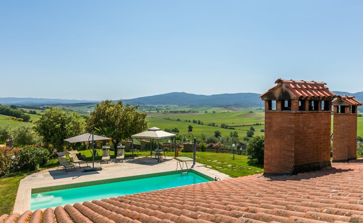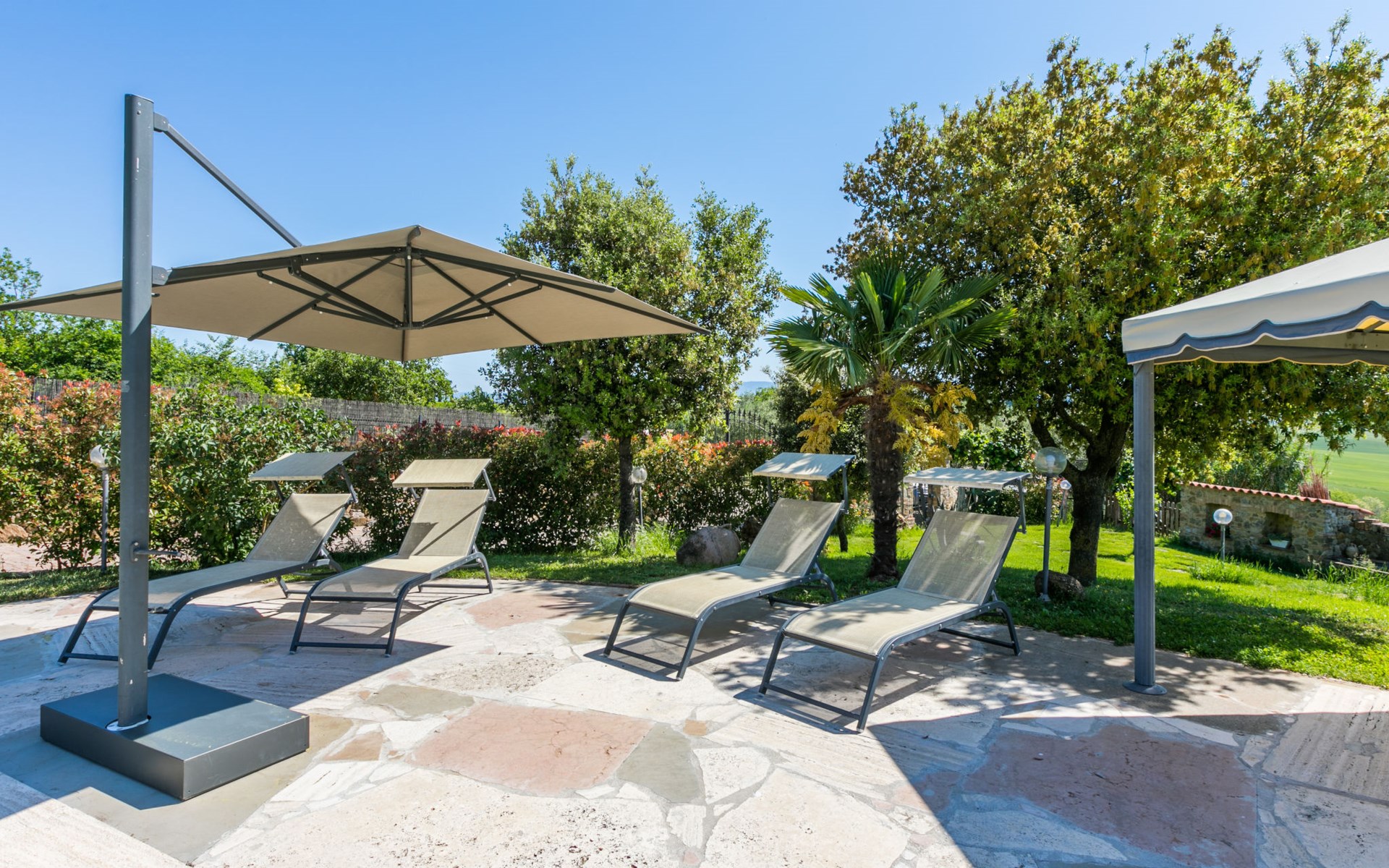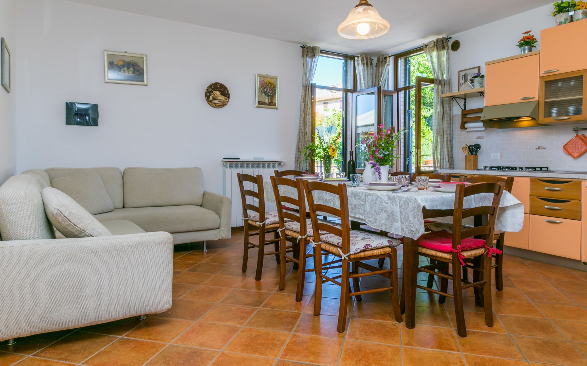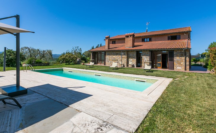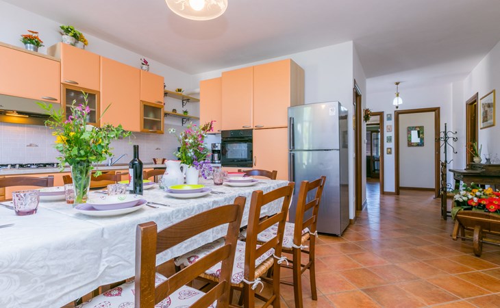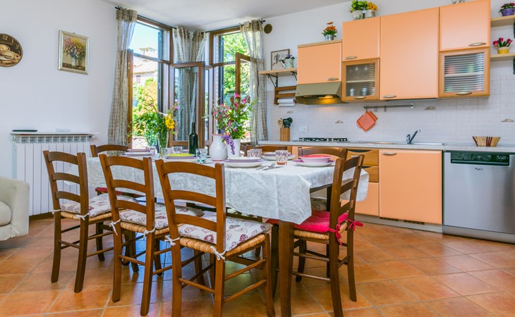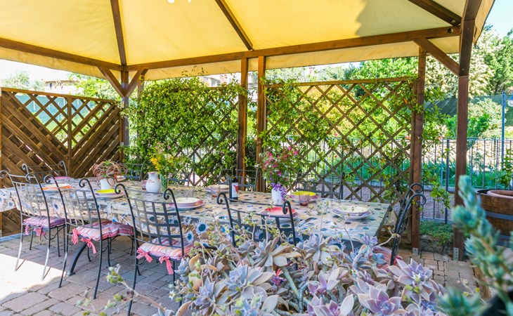 Lano 10 km from Colle di Val d'Elso: Beautiful semi-detached house "Metallo", detached, surrounded by trees, meadows and fields. In the hamlet Lano 10 km from the centre of Colle di Val d'Elsa, 5 km from the centre of Casole d'Elsa, 25 km from the centre of Siena, in an elevated position on a slope. For shared use: terraced garden, 1 ha (fenced) with plants and trees, meadow. Private: swimming pool (10 x 3 m, depth 140 - 180 cm, seasonal availability: 15.May. - 05.Oct.). Outdoor shower, arbour, terrace, garden furniture, barbecue, pool maintenance by the owner/gardener. Motor access (200 m via unmade road). Parking on the premises. Grocery 5 km, supermarket 10 km, restaurant 5 km, bus stop 1.5 km, railway station "Poggibonsi" 15 km, sandy beach "Cecina Mare" 67 km. Nearby attractions: San Gimignano 24 km, Siena 31 km, Firenze 70 km. Please note: baby equipment (included). Groups of teenagers on request only. Residence with electric gates. Owner lives in separate semi-detached house.