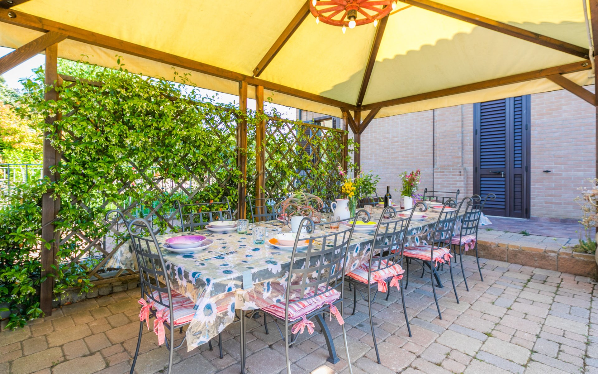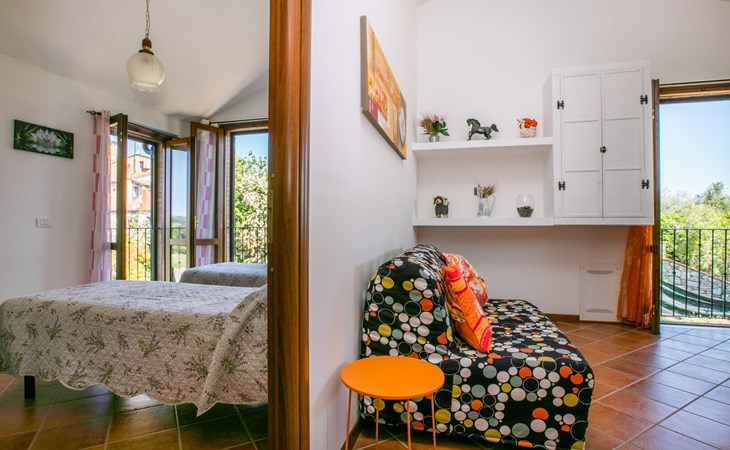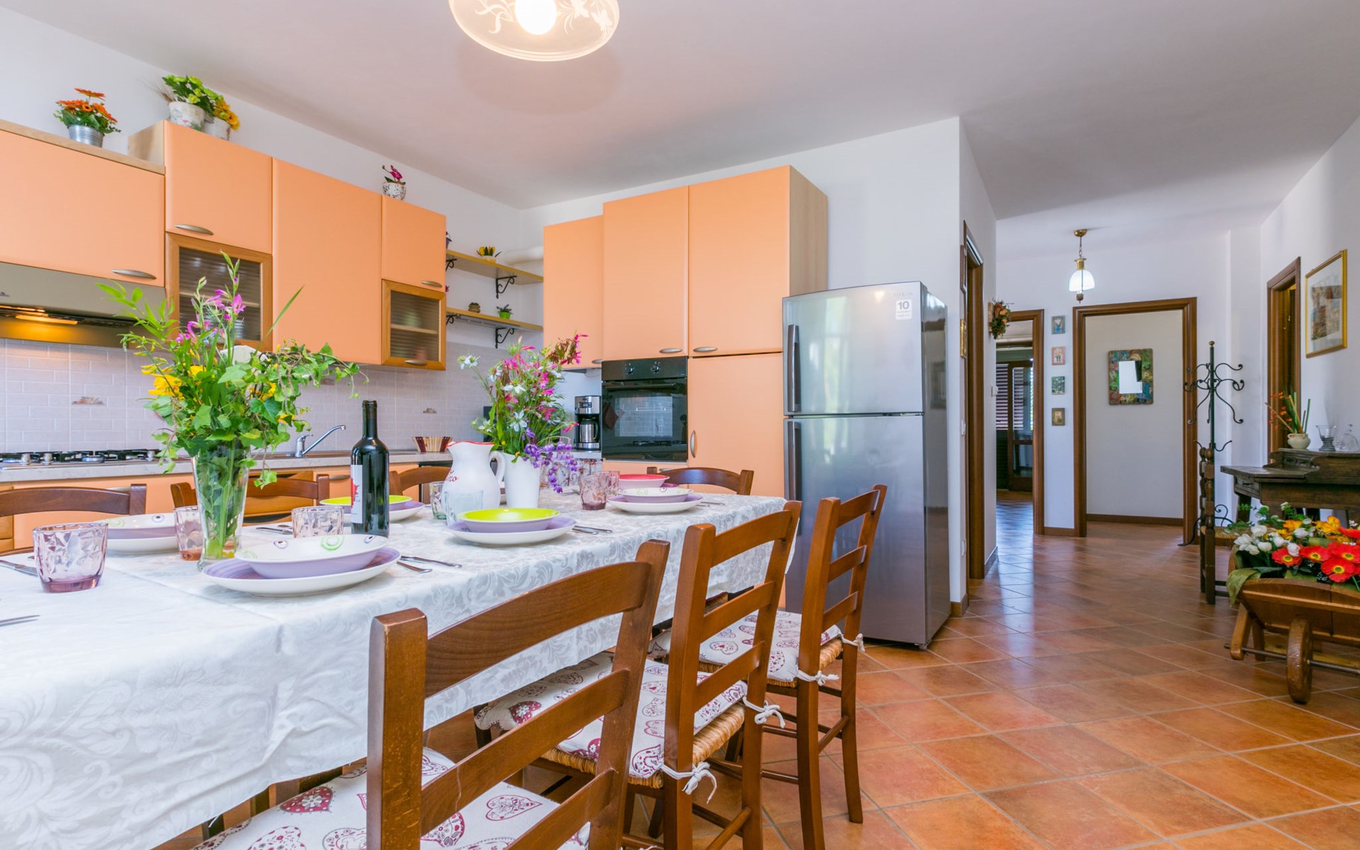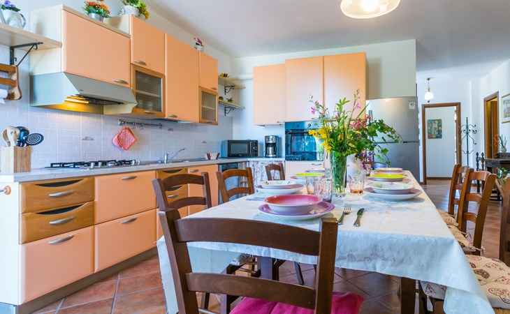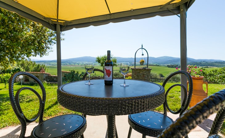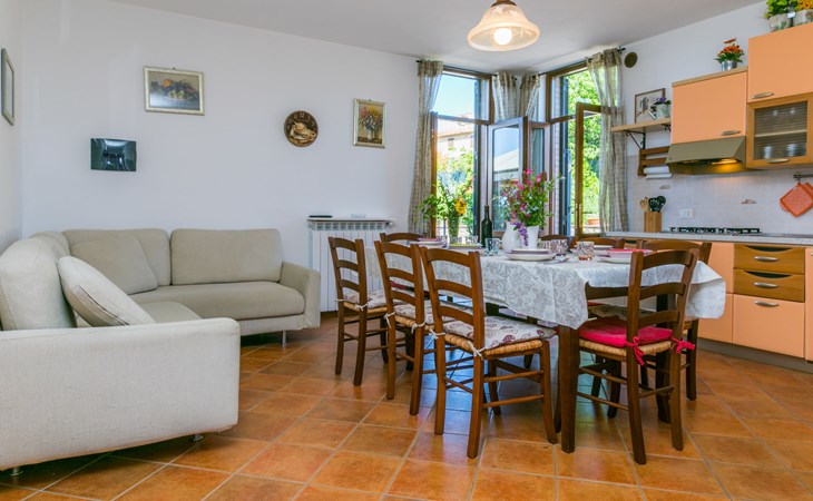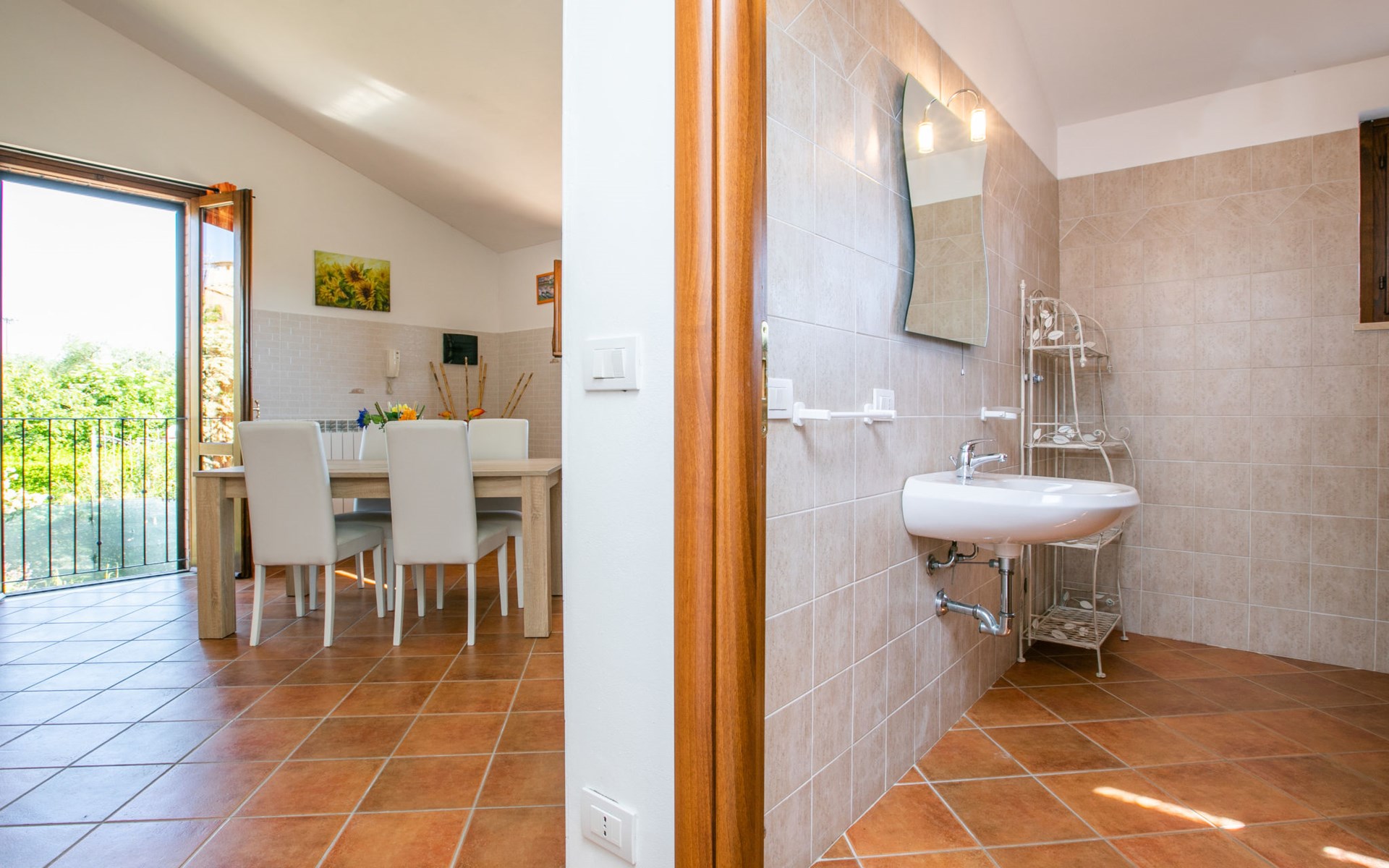 Lano 10 km from Colle di Val d'Elso: Beautiful semi-detached house "Metallo", detached, surrounded by trees, meadows and fields. In the hamlet Lano 10 km from the centre of Colle di Val d'Elsa, 5 km from the centre of Casole d'Elsa, 25 km from the centre of Siena, in an elevated position on a slope. For shared use: terraced garden, 1 ha (fenced) with plants and trees, meadow. Private: swimming pool (10 x 3 m, depth 140 - 180 cm, seasonal availability: 15.May. - 05.Oct.). Outdoor shower, arbour, terrace, garden furniture, barbecue, pool maintenance by the owner/gardener. Motor access (200 m via unmade road). Parking on the premises. Grocery 5 km, supermarket 10 km, restaurant 5 km, bus stop 1.5 km, railway station "Poggibonsi" 15 km, sandy beach "Cecina Mare" 67 km. Nearby attractions: San Gimignano 24 km, Siena 31 km, Firenze 70 km. Please note: baby equipment (included). Groups of teenagers on request only. Residence with electric gates. Owner lives in separate semi-detached house.