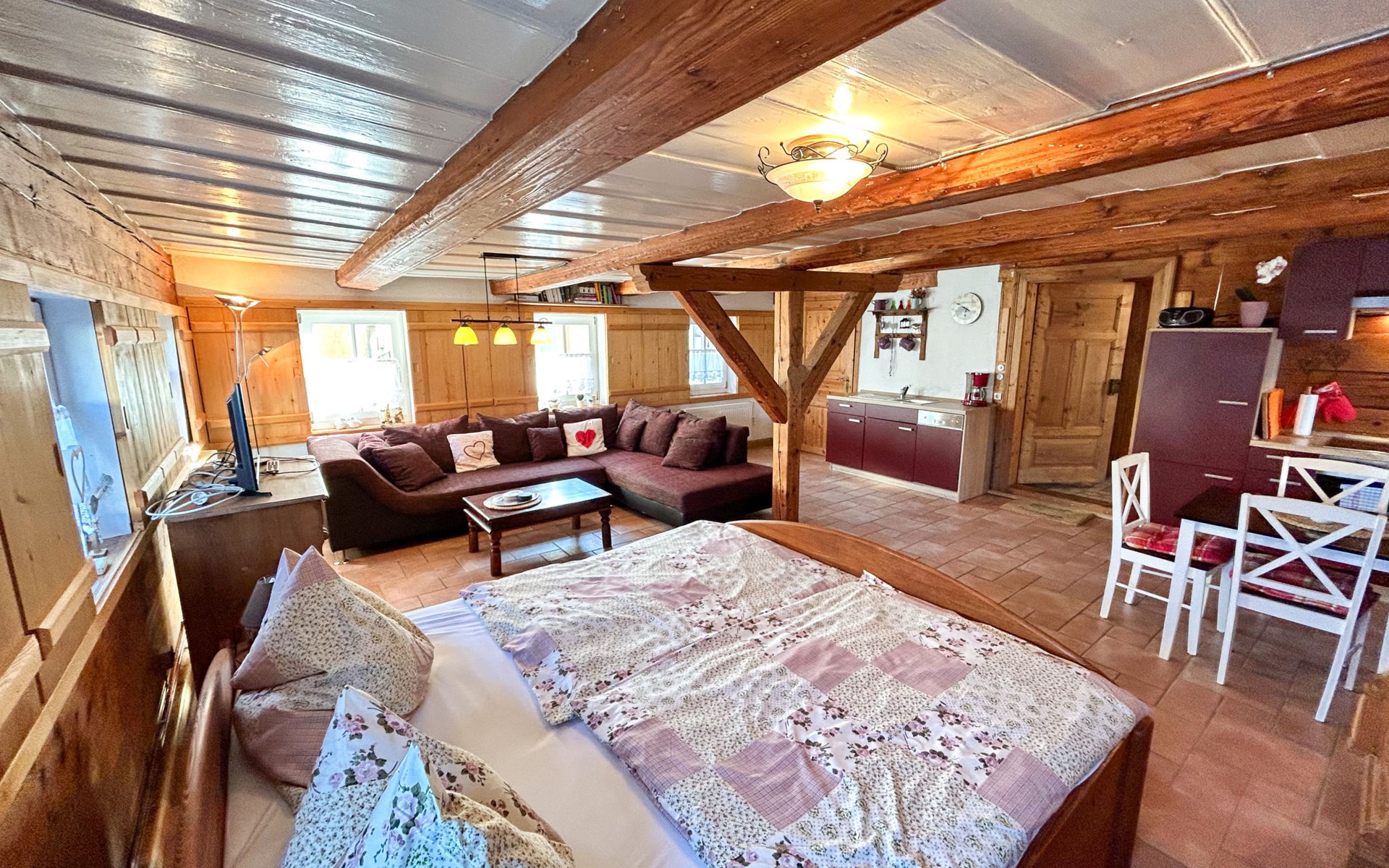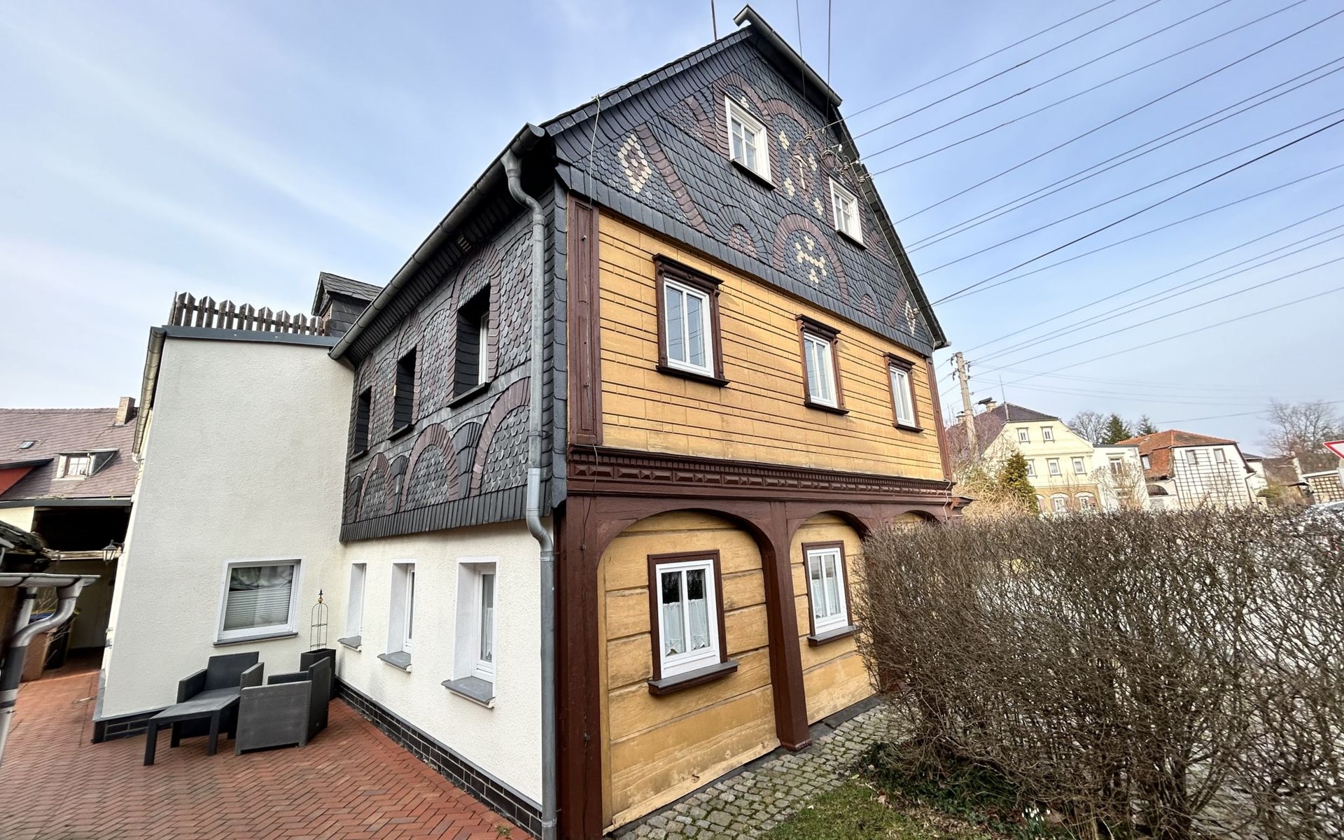 Historical house "Selma". 4 apartments in the property. In the centre of Großschönau, 12 km from the centre of Zittau, 30 km from the centre of Löbau, 20 m from the river. For shared use: natural state property with meadow. Patio, garden furniture, barbecue, fireplace. In the house: storage room for bicycles, washing machine. Parking on the premises. Shop, supermarket 500 m, restaurant 100 m, bakery 20 m, bus stop "Großschönau Spitzkunnersdorferst" 180 m, railway station "Großschönau Bahnhof" 1.5 km, outdoor swimming pool 1.5 km, bathing lake "Olbersdorfer See" 13 km. Walking paths from the house 5 m, ski lift 4 km, ski school 4 km, cross country ski track 4 km. Well-known ski regions can easily be reached: Waltersdorf 4 km. Please note: car recommended. The owner lives in the same residence.