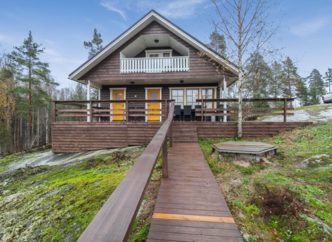 Log villa 2007, renovated in 2017, two extra beds in living room on sofa bed, kitchen, bedroom (10 m²) with double bed, utility room/dressing room, washroom, sauna (both wood burning and electric sauna stoves), separate WC, open terrace. Air source heat pump, Wi-Fi.