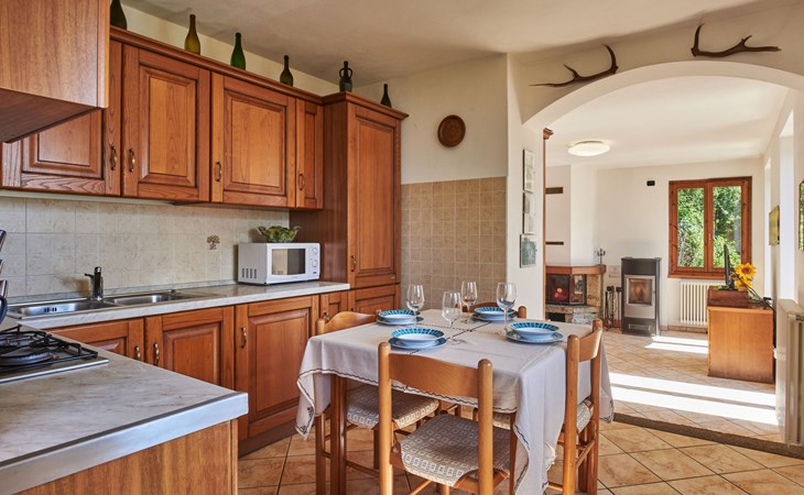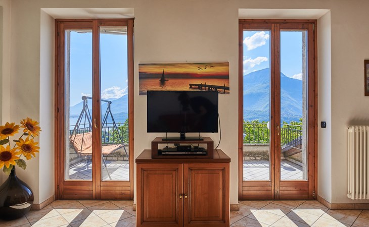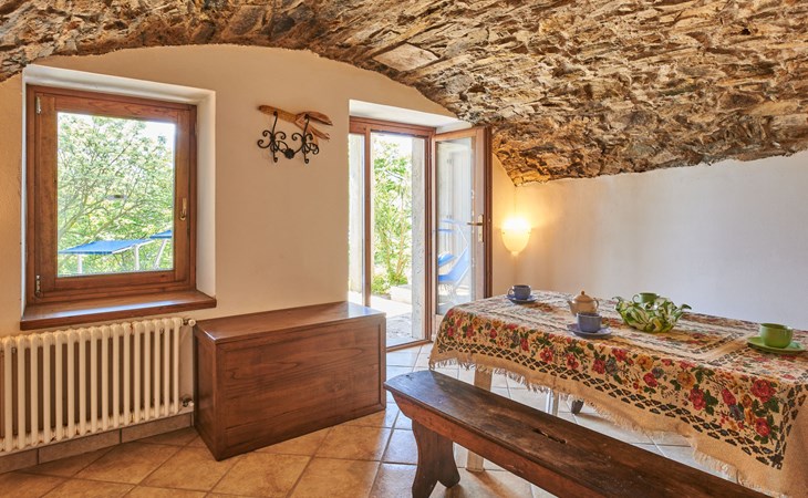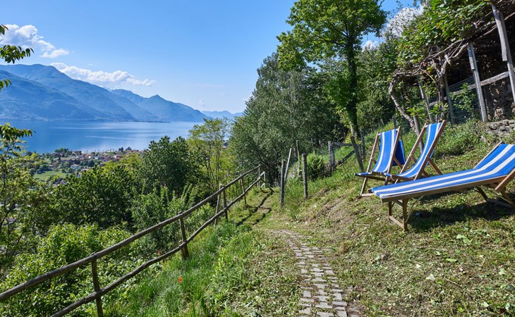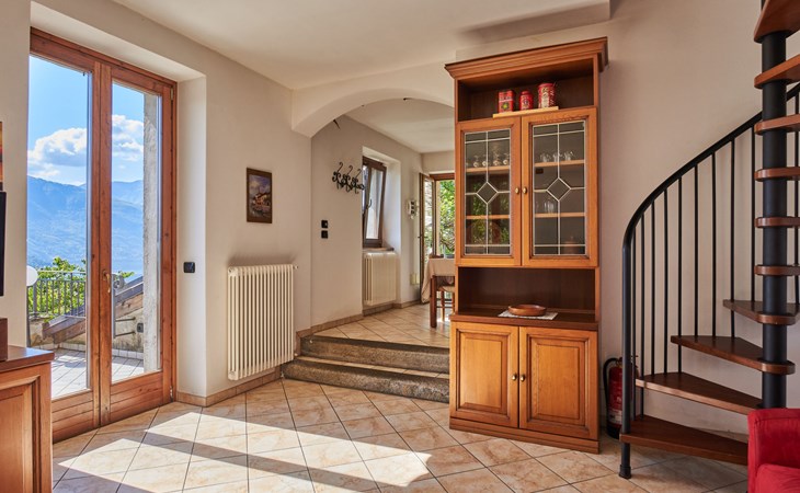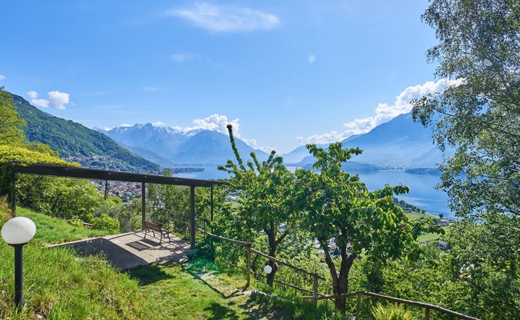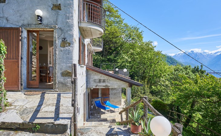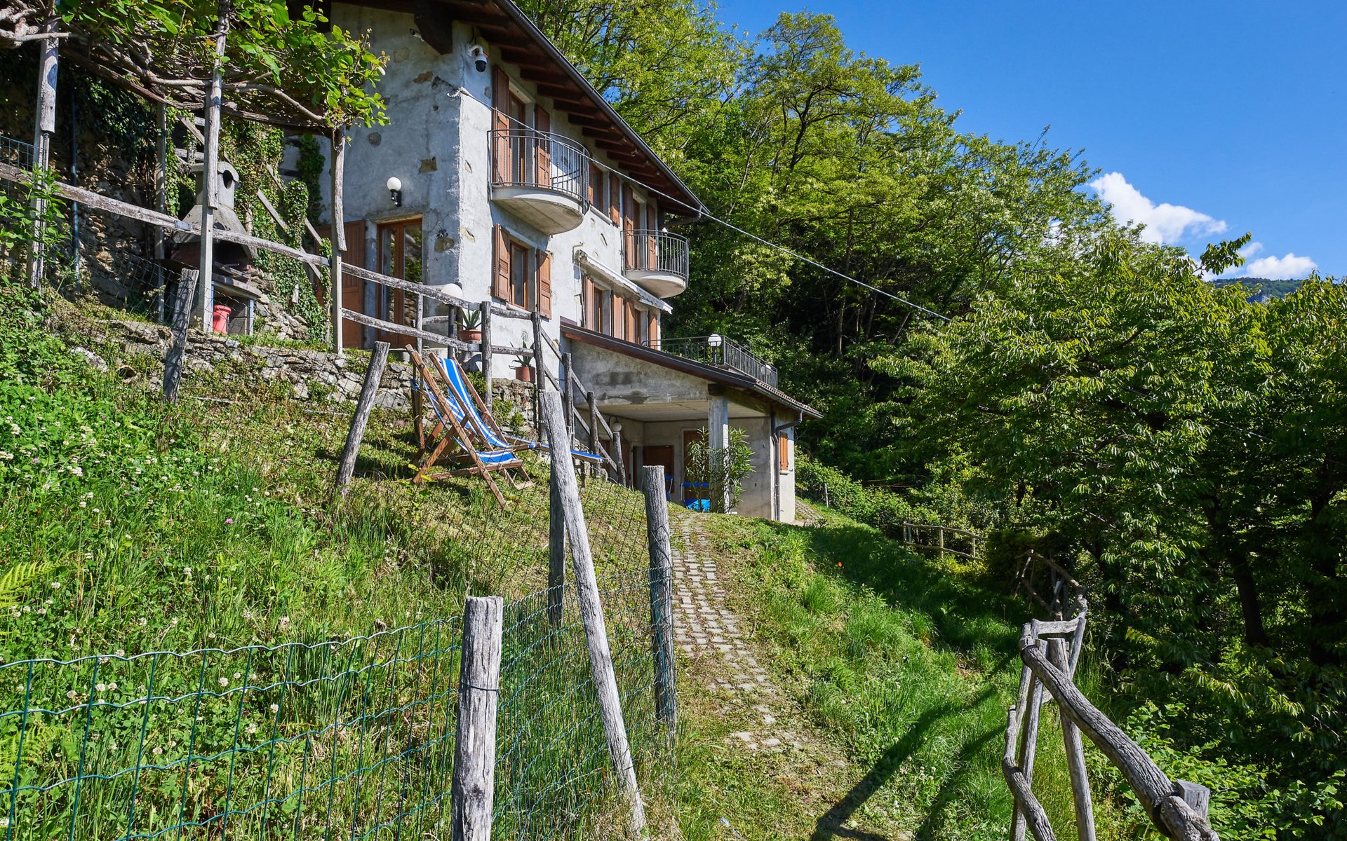 Rustic single-family house "Ronco", 300 m a.s.l., 2 storeys, detached, surrounded by trees. Above Dongo 2.5 km from the centre of Dongo, 51 km from the centre of Como, 43 km from the centre of Lugano, in a secluded, quiet position on a slope, 2.2 km from the lake. Private: property (fenced), terraced garden with wildlife garden and trees. Barbecue. 100 m long steep motor access to the grounds. 100 m steep footpath (20 steps) to the house. Parking (for 2 cars) on the premises. Supermarket 1.8 km, restaurant 200 m, bar 2 km, bicycle rental 3 km, bus stop 2 km, railway station "Colico" 21 km, grass beach 2.2 km. Marina 2.2 km, golf course (18 hole) 19 km, surf school 2.2 km, sailing school 2.2 km, sports centre 2.2 km, walking paths from the house 200 m. Nearby attractions: Palazzo Gallio-Gravedona, Museo della Barca Lariana-Pianello, Bellagio, Varenna, Menaggio. Well-known lakes can easily be reached: Lago di Mezzola, Lago di Lugano. Please note: car recommended. The owner does not accept any youth groups.