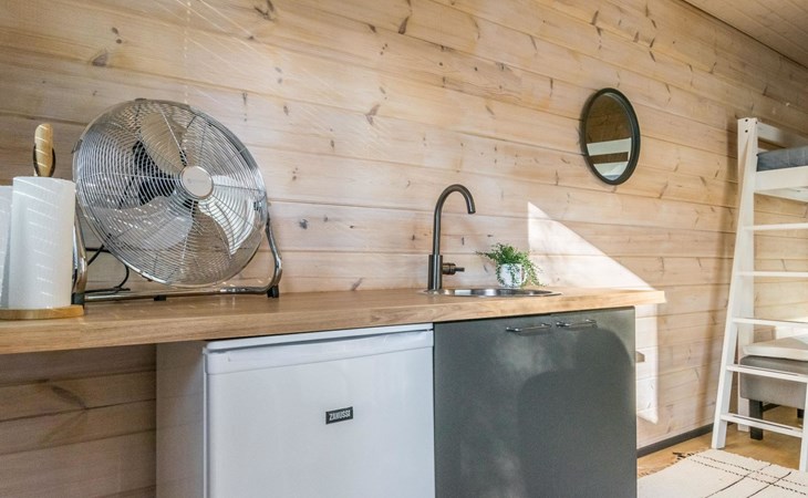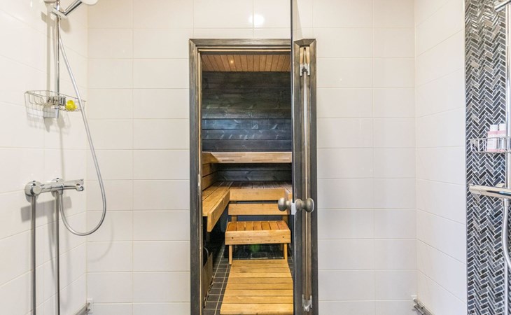 The lakeside sauna has a separate room with its own water point and refrigerator. In the room, there is a bunk bed. The lower bed is 160 x 200 cm and the upper bed is 140 x 200 cm. The sauna has a wood-burning sauna stove, and from the sauna window, there is a view of the beach. The terrace is equipped with outdoor furniture and a wood-heated hot tub available for an extra fee. The partly grassy and gravel-paved yard is flat. The yard receives ample sunshine. Lake Pyhäjärvi is good for fishing. It's possible to launch your own boat into the water using a trailer from the cabin's shore.