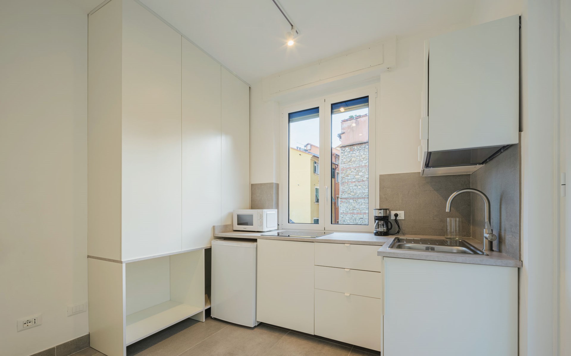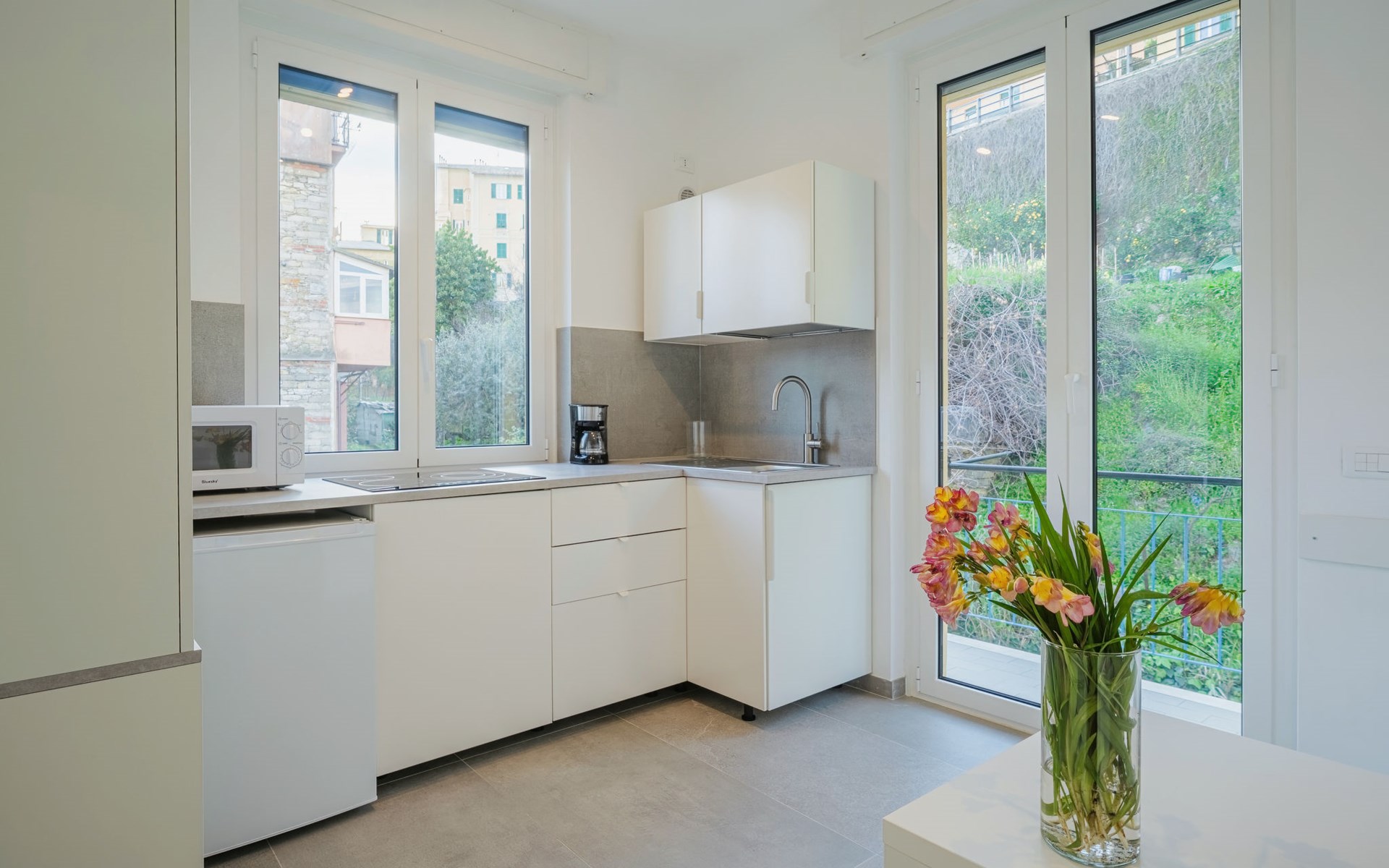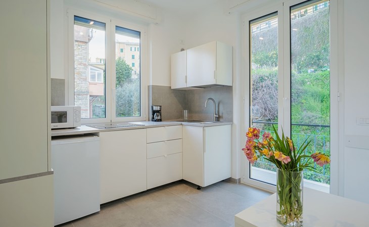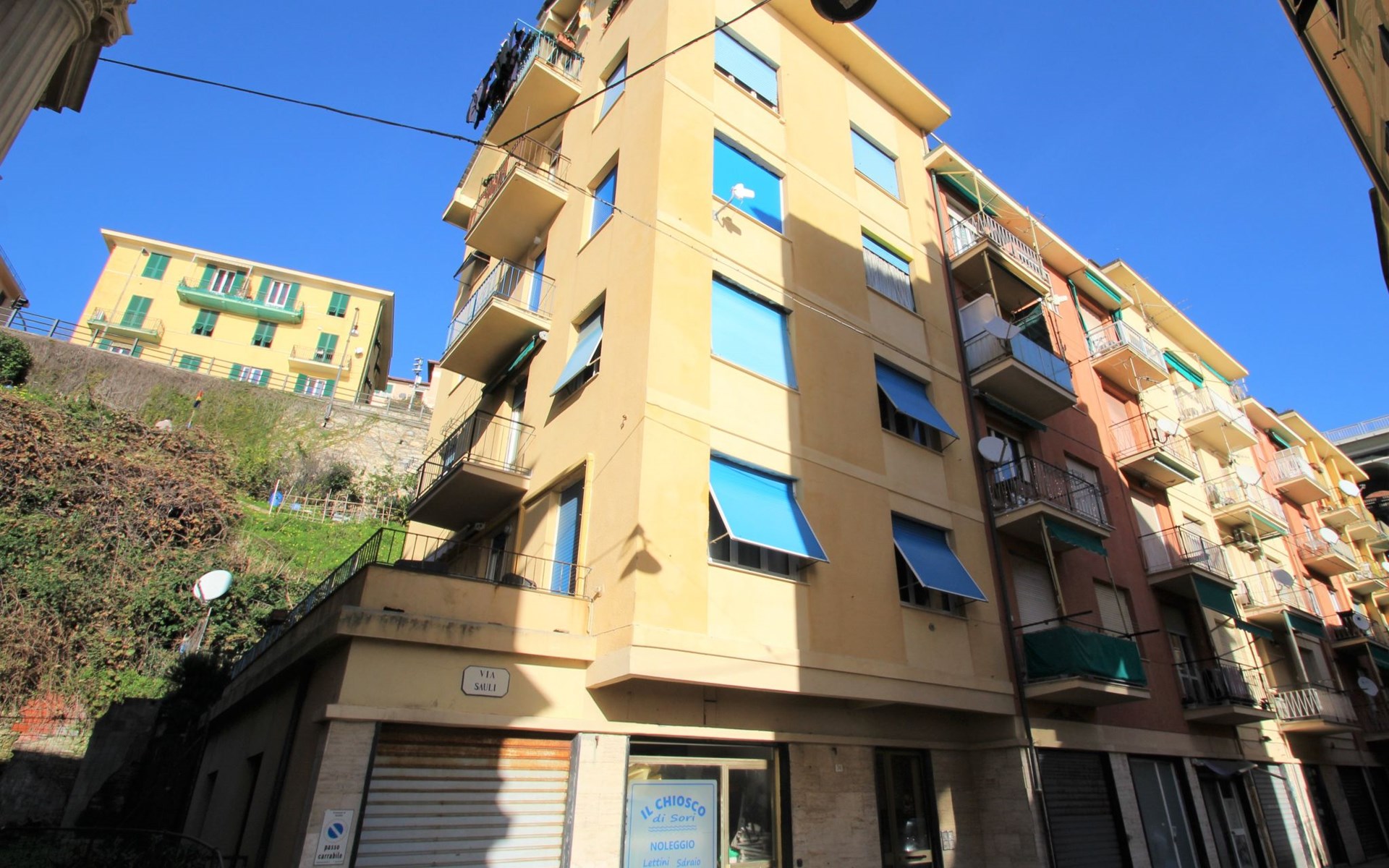 Apartment block. In the centre of Sori 2.5 km from the centre of Pieve Ligure, 4.5 km from the centre of Recco, in the heart of the city, 90 m from the sea. Motor access to 10 m from the house. Public parking 100 m on the road. Restaurant, bar, bakery, bus stop 50 m, railway station "Sori" 500 m, shingle beach 80 m, outdoor swimming pool 60 m. Nearby attractions: Camogli 6 km, Genova Nervi 8 km, Santa Margherita Ligure 15 km. Please note: Loading and unloading of baggage is possible at the holiday house. Railway line 70 m from the property.
