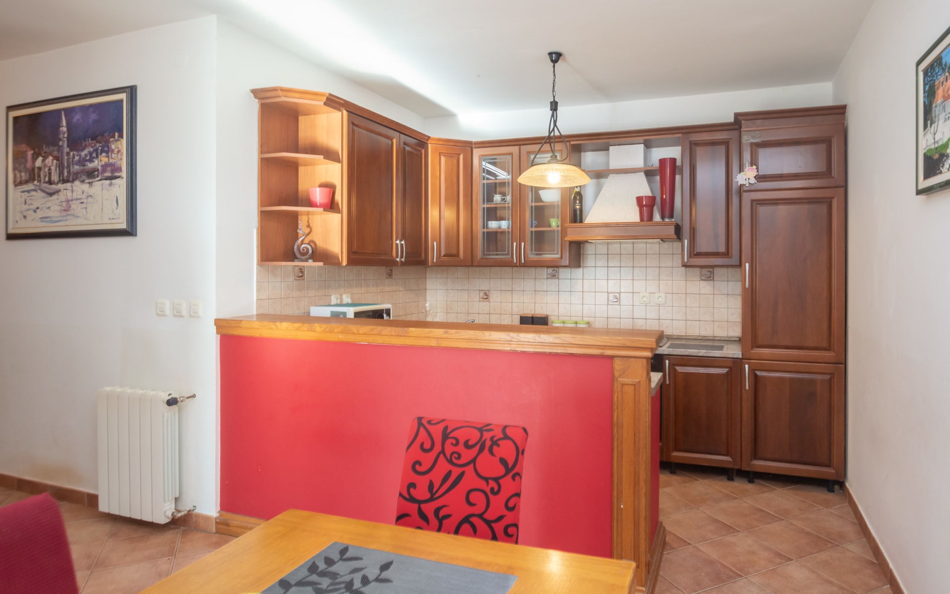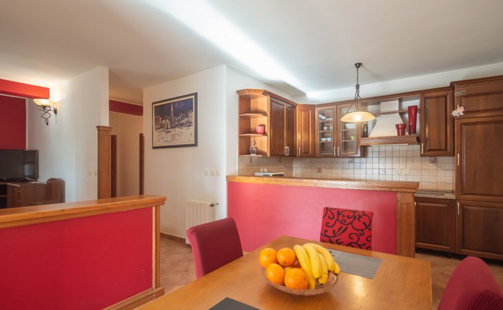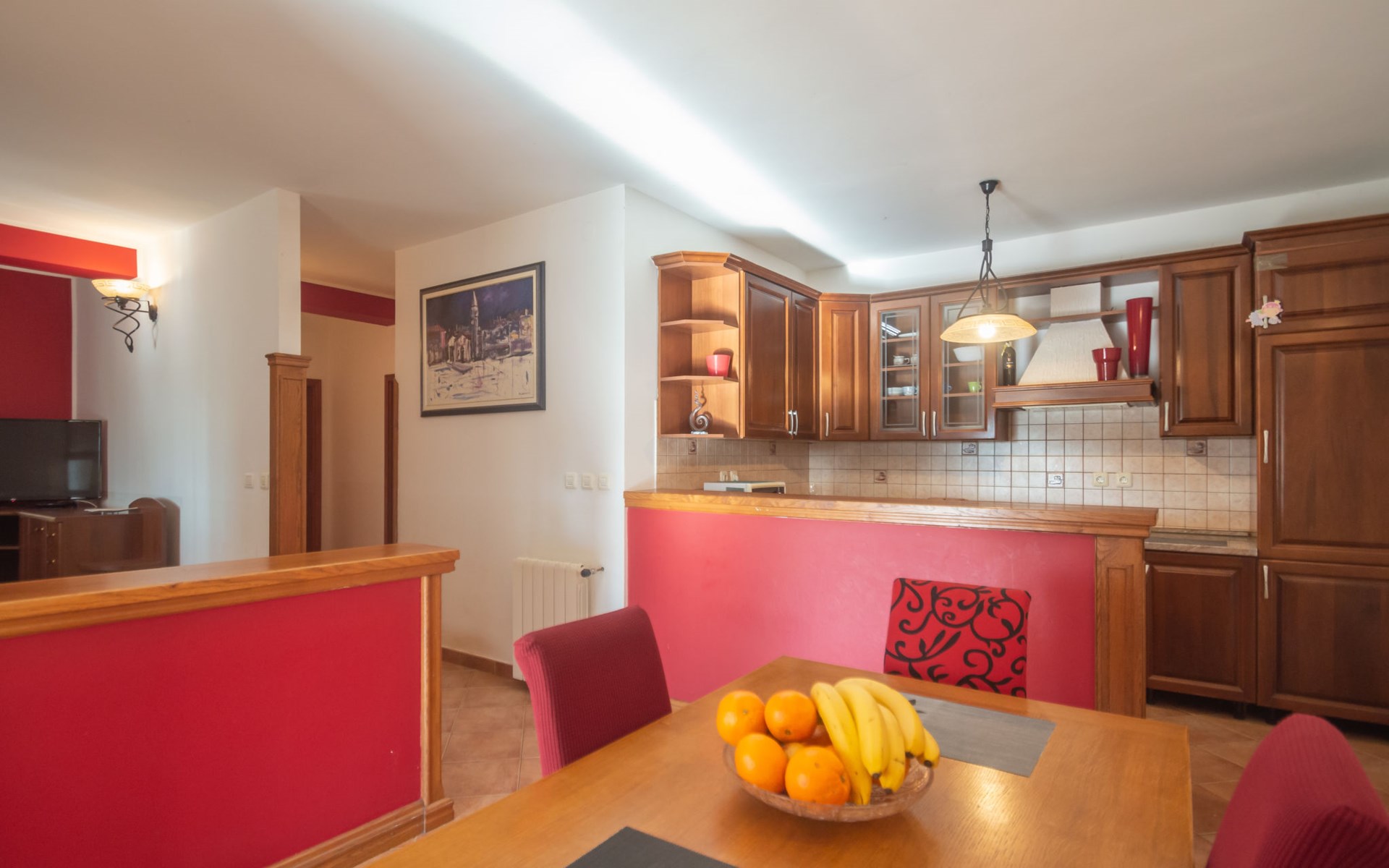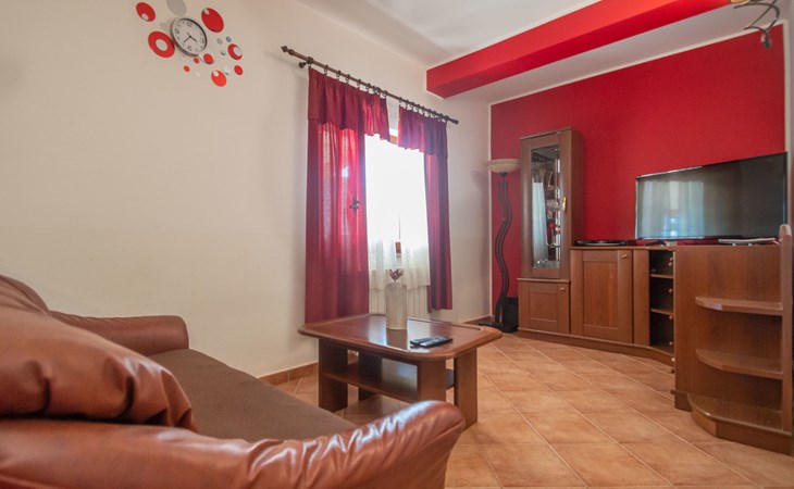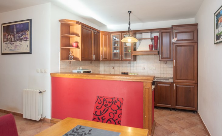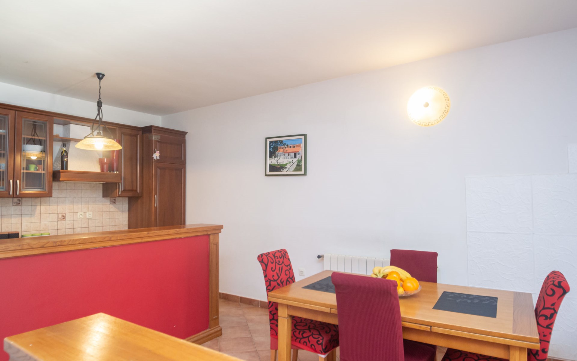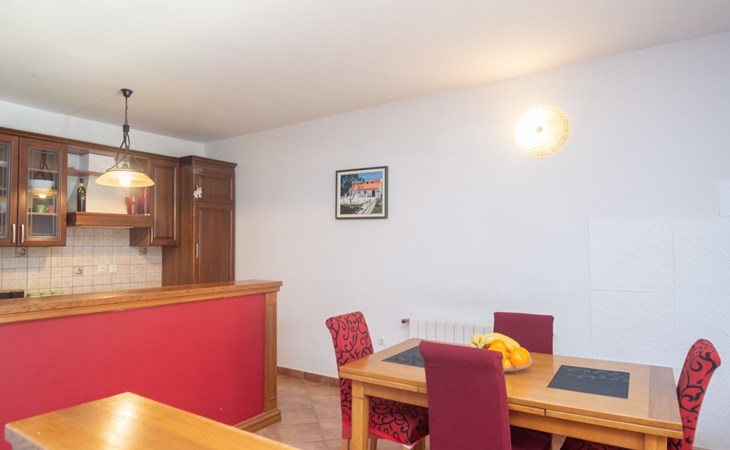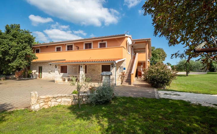 Krnica 22 km from Pula: Apartment house "Iva". In a quiet, sunny position, 2.5 km from the sea, 2.5 km from the beach. For shared use: property 1'000 m2, garden with lawn and plants, swimming pool angular (8 x 4 m, depth 140 cm, seasonal availability: 23.May. - 10.Oct.) with internal staircase. Outdoor shower, terrace (25 m2), garden furniture, barbecue. In the house: internet access. Parking at the house on the premises. Shop, restaurant 200 m, bus stop 5.3 km, pebble beach 5 km, rocky beach 2.5 km, indoor swimming pool 5 km. Tennis 5 km, riding stable 6 km, sports centre 5 km, walking paths from the house 3 km, cycle lane 3 km. Please note: animals in the neighbourhood. The owner can prepare home made meals (on request, extra).