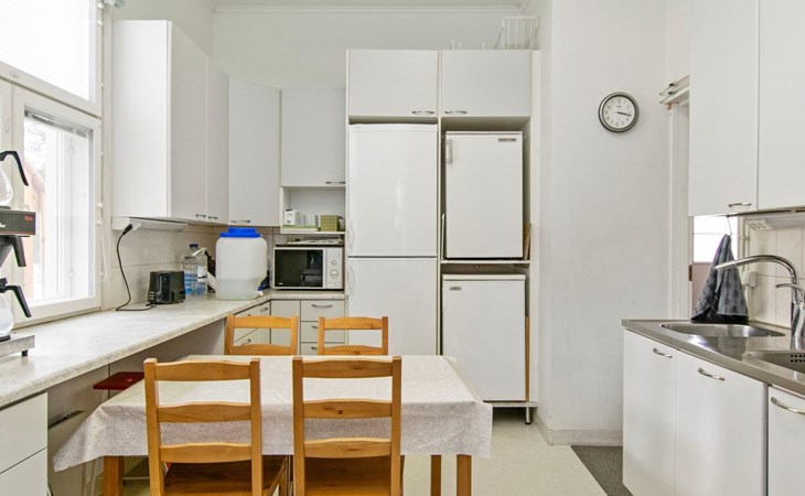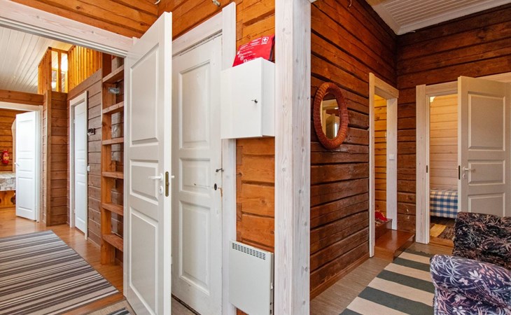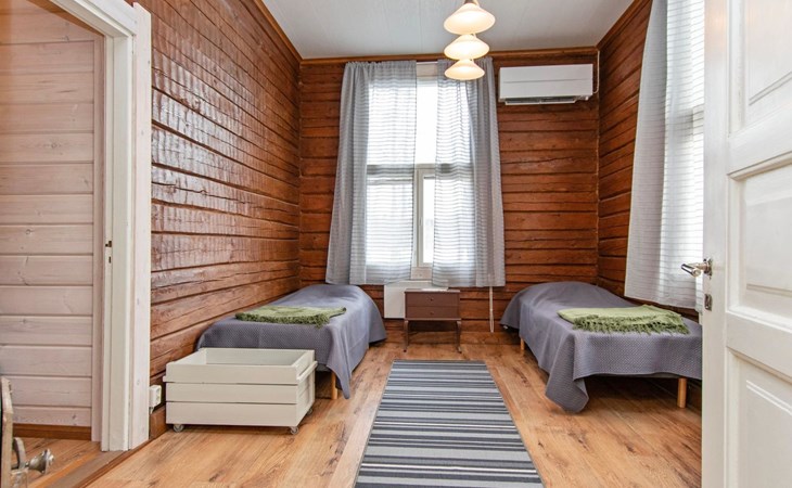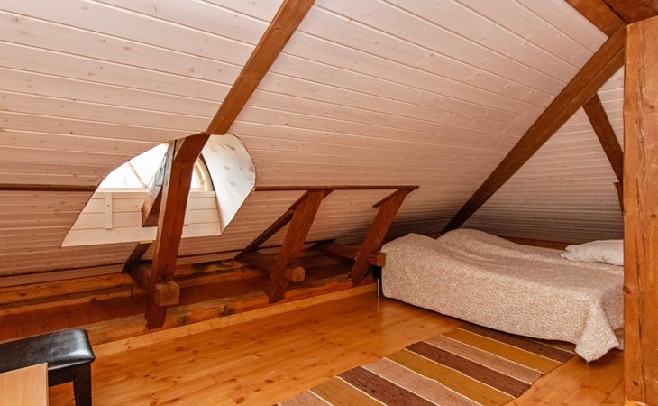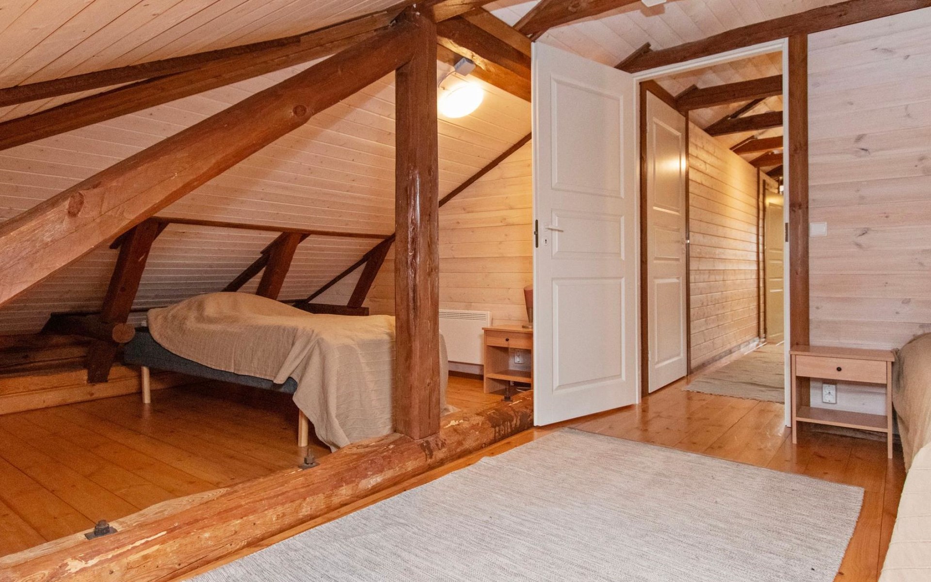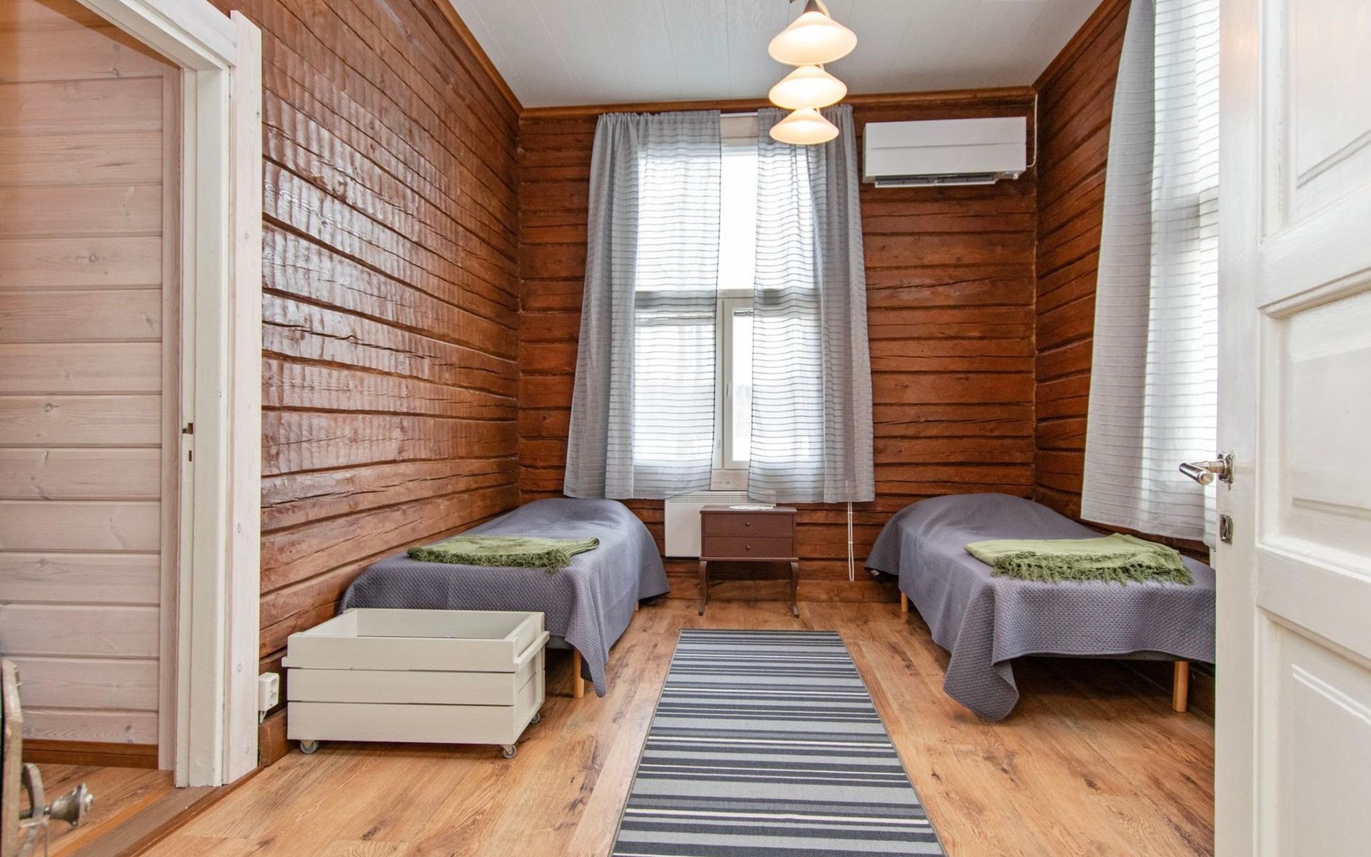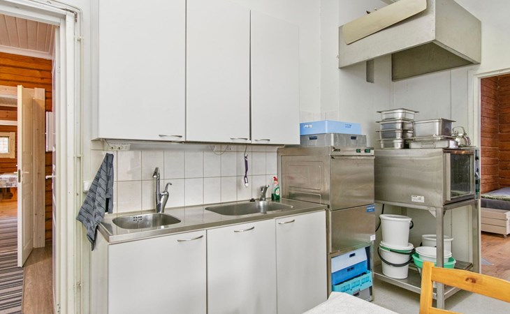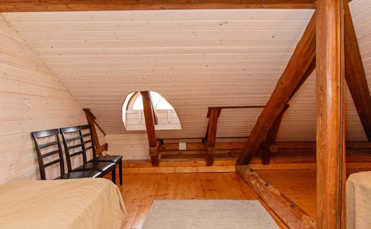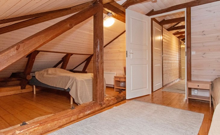 70 km to the east of Mikkeli, Lake Lentunen 20 m (length 1 km, width 2 km), a deep, sandy beach, private boat, and a pier. Wooden villa, an old camp center, was built in 1936 and renovated in 2023. The kitchen is equipped with industrial appliances, and the dining room has seating for 60 people. Bedroom 1 includes two beds, bedroom 2 has two beds and an alcove has one bed. Dining area/utility kitchen, two WCs, a shower, and an electric sauna.