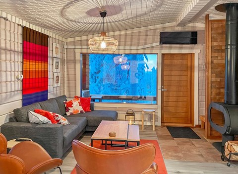 Log cabin 1998, living room/kitchen, bedroom 2 beds, in upper floor 2 bedrooms both with 2beds, Child safety gate in downstairs, washroom, sauna (electric sauna stove), open veranda. One WC in upper floor, another downstairs.