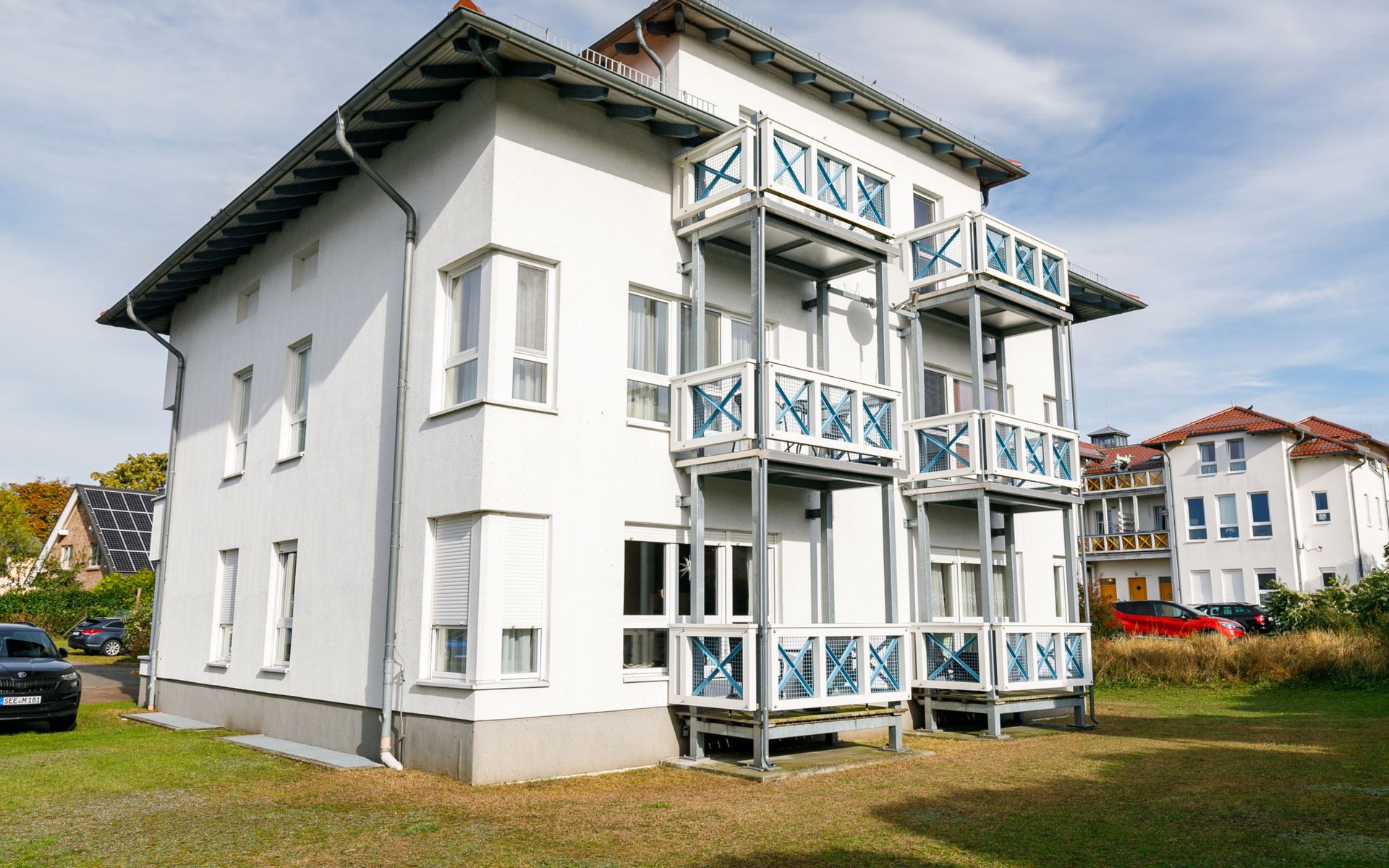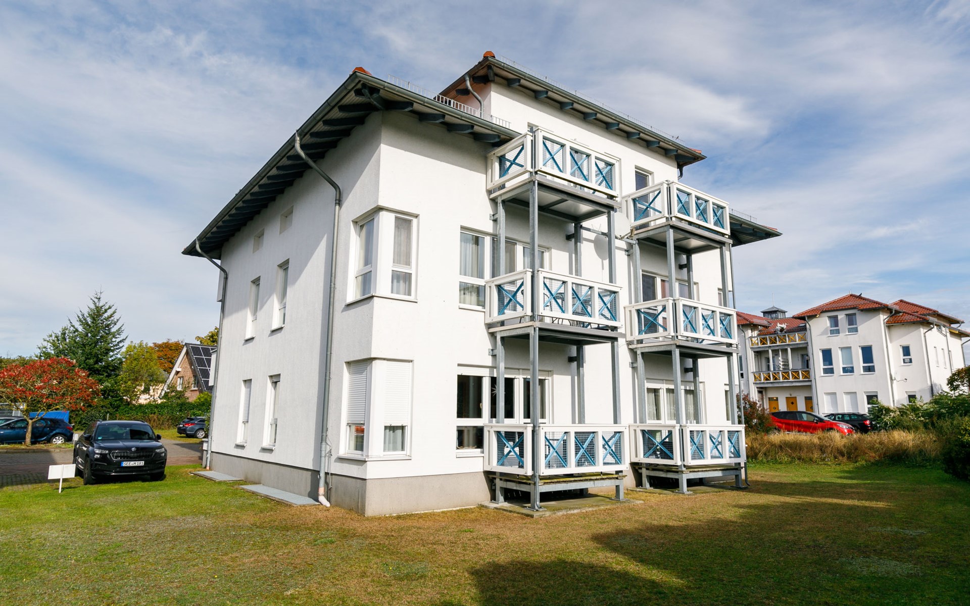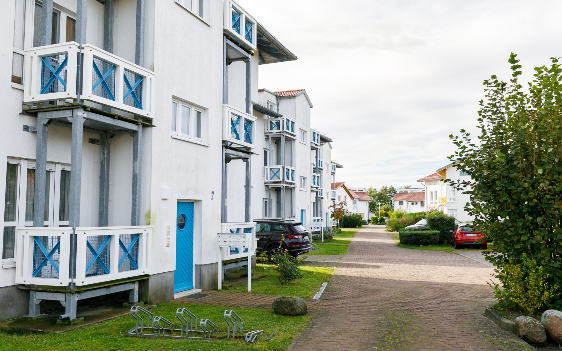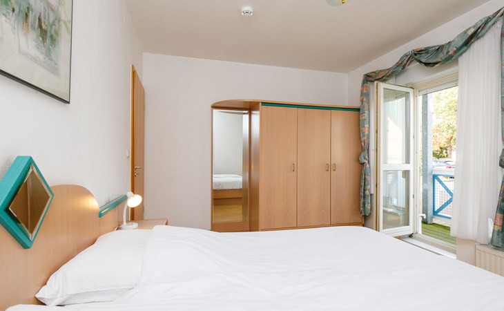 Apartment block, 2 storeys. In the resort 750 m from the centre of Koserow, 900 m from the sea, 900 m from the beach. In the house: central heating system. Parking on the premises. Supermarket 1 km, restaurant 200 m, bakery, café 150 m, bus stop 900 m, railway station 1.3 km, sandy beach 900 m, thermal baths "Bernsteintherme" 9 km. Golf course (18 hole) 18 km, surf school 9 km, minigolf 600 m.