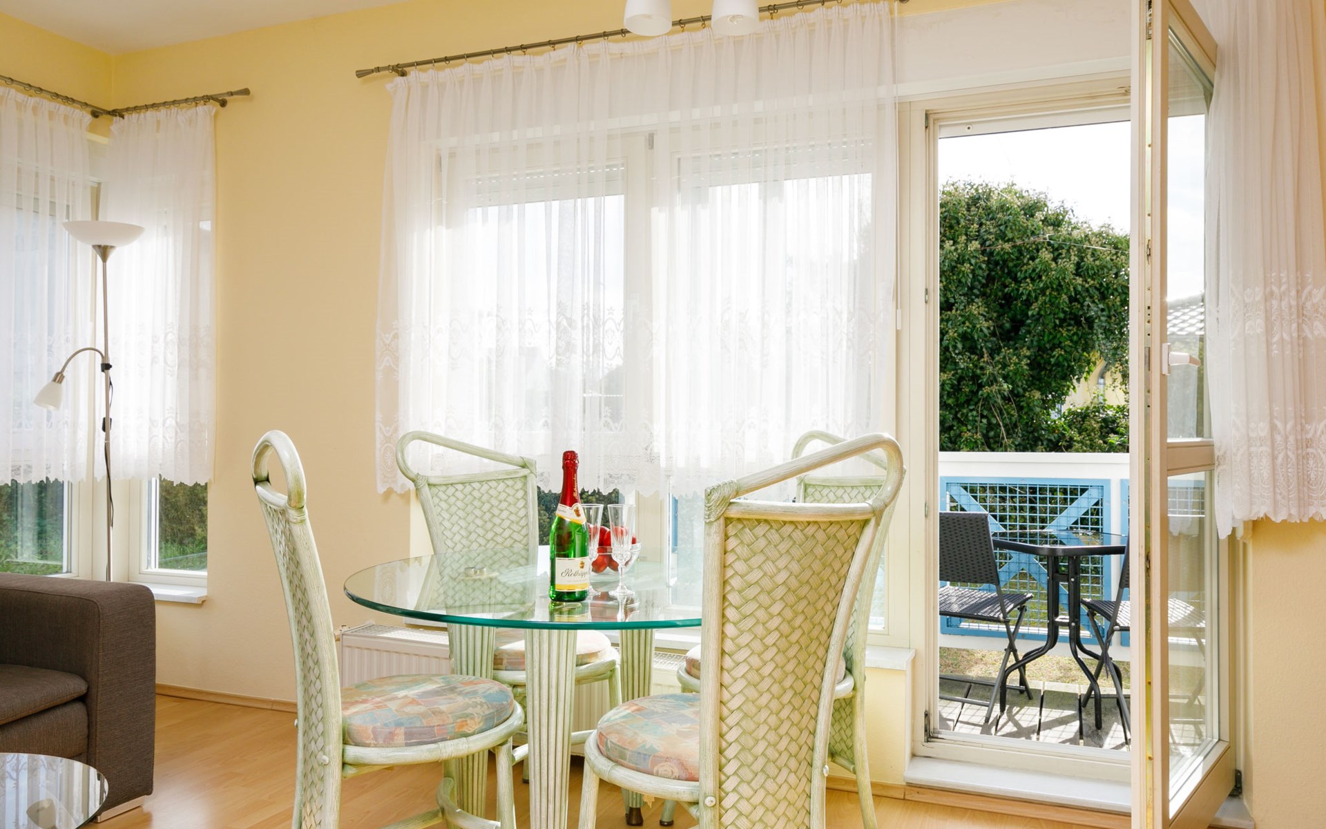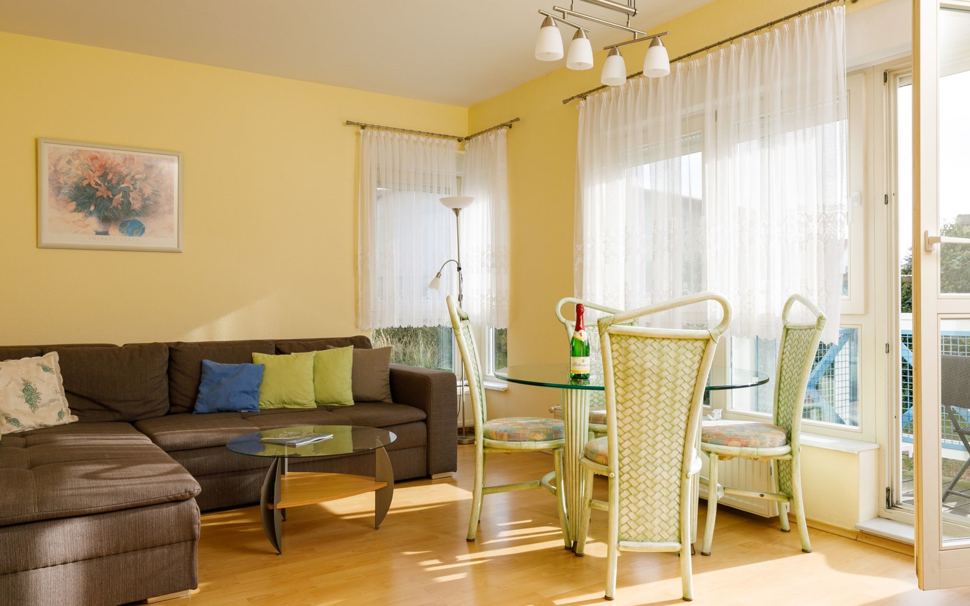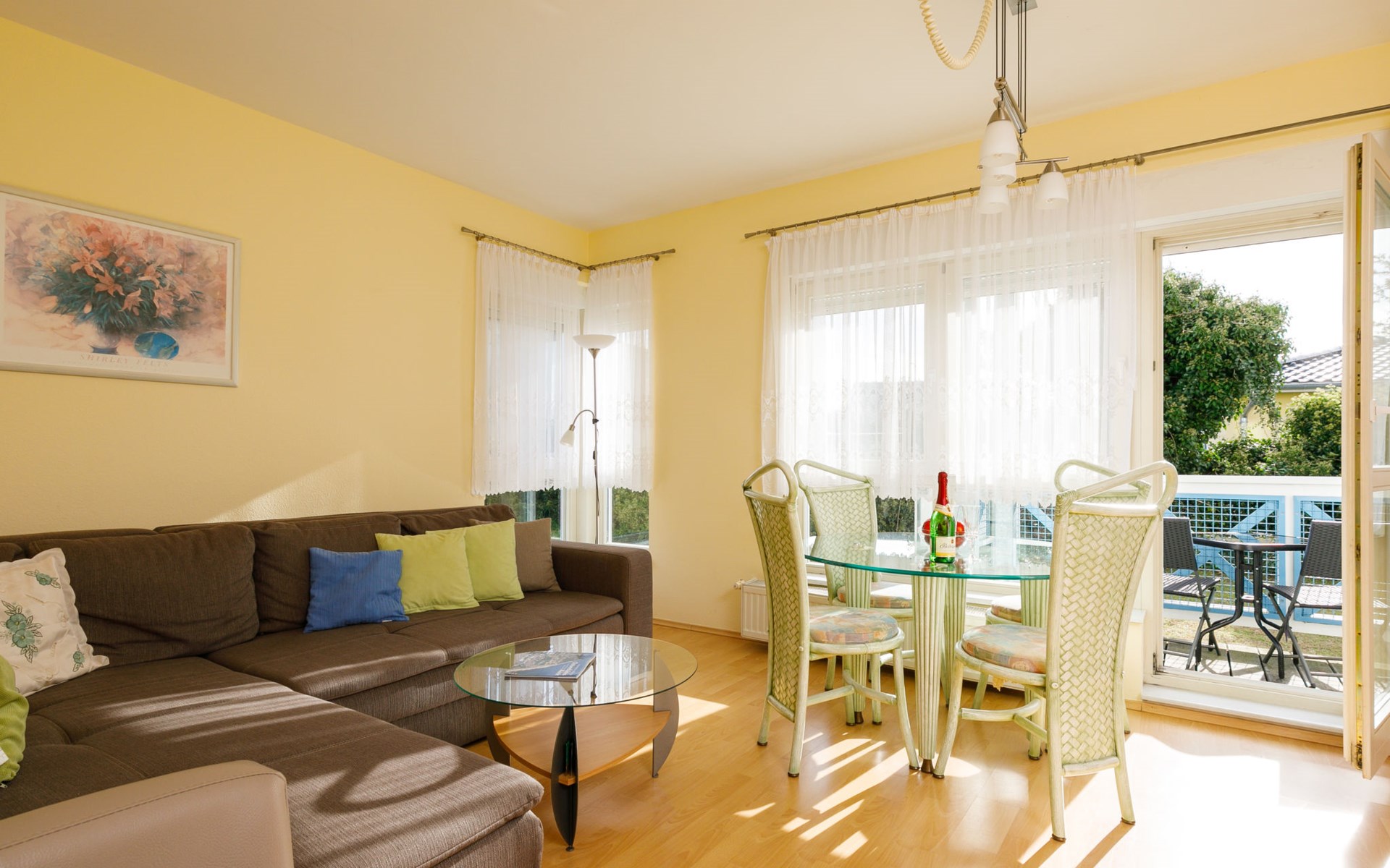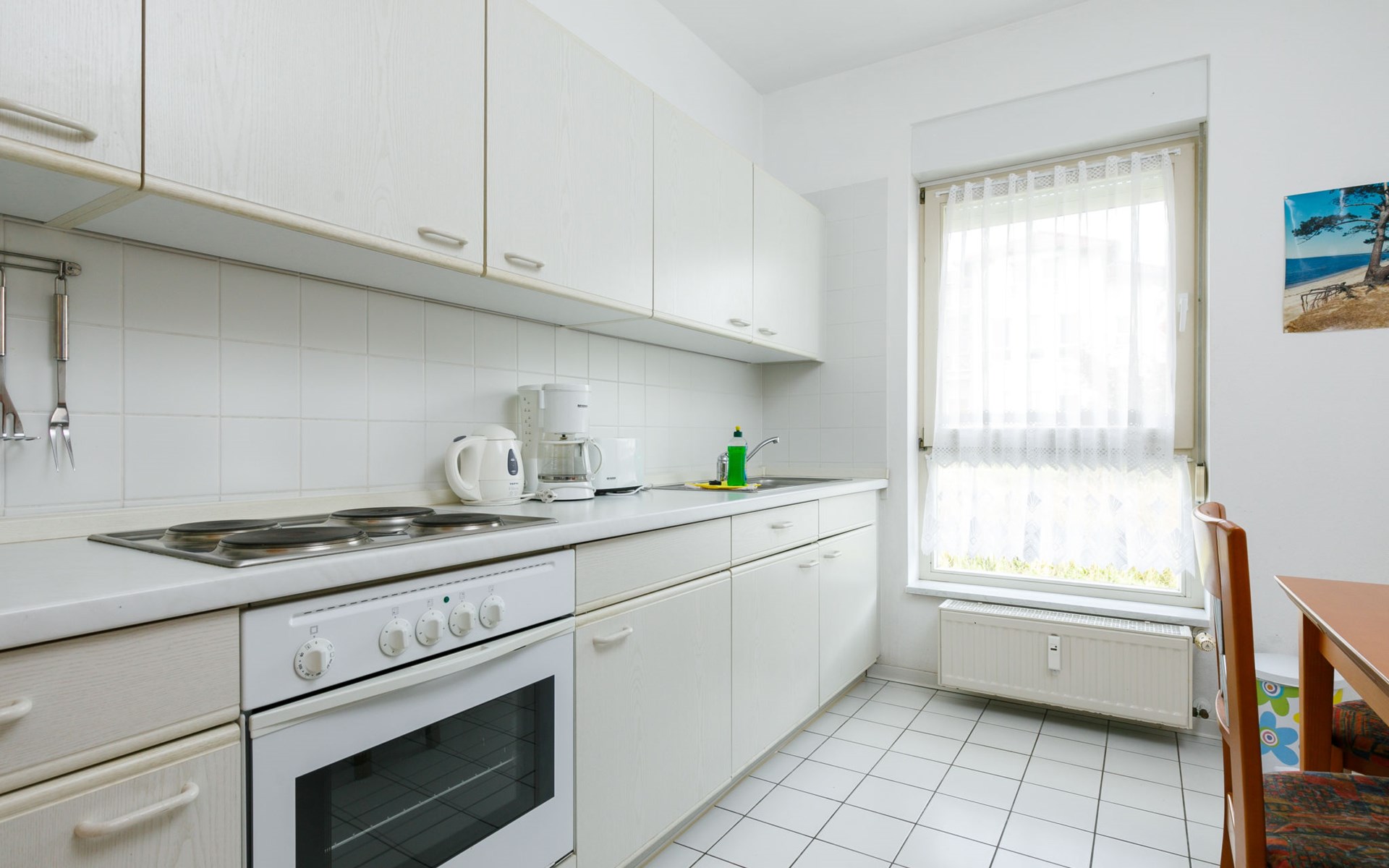 Apartment block, 2 storeys. In the resort 750 m from the centre of Koserow, 900 m from the sea, 900 m from the beach. In the house: central heating system. Parking on the premises. Supermarket 1 km, restaurant 200 m, bakery, café 150 m, bus stop 900 m, railway station 1.3 km, sandy beach 900 m, thermal baths "Bernsteintherme" 9 km. Golf course (18 hole) 18 km, surf school 9 km, minigolf 600 m.