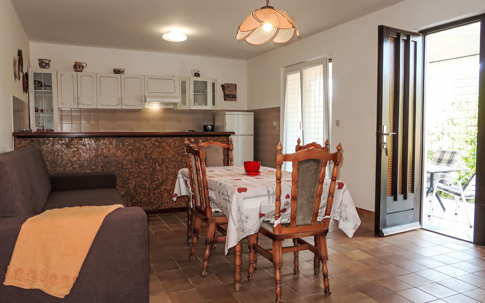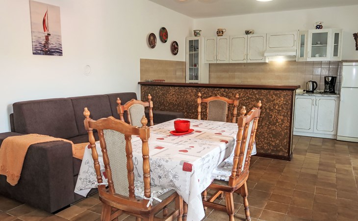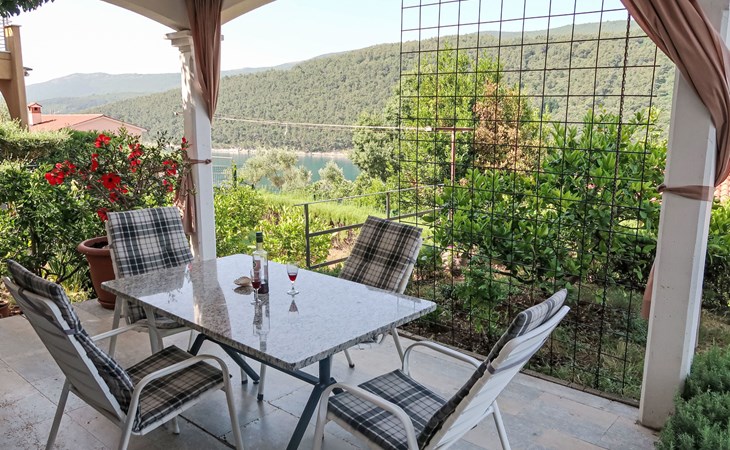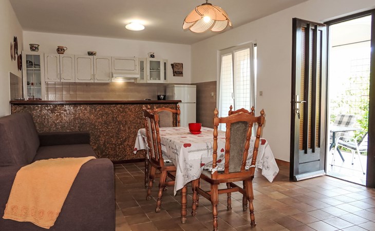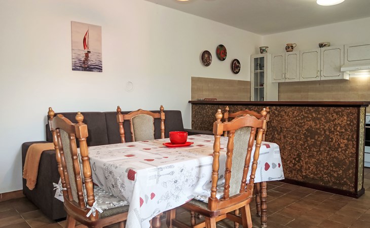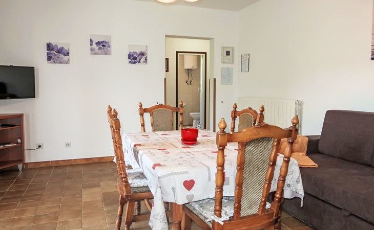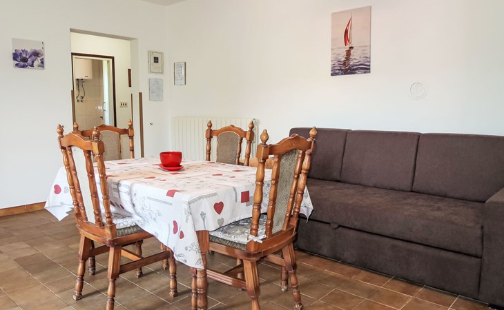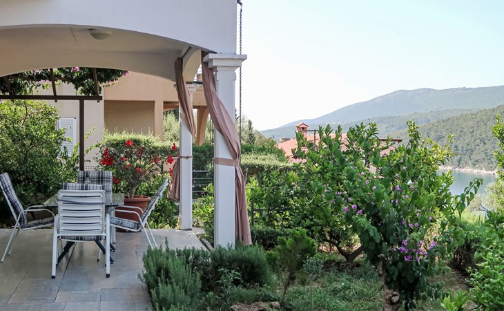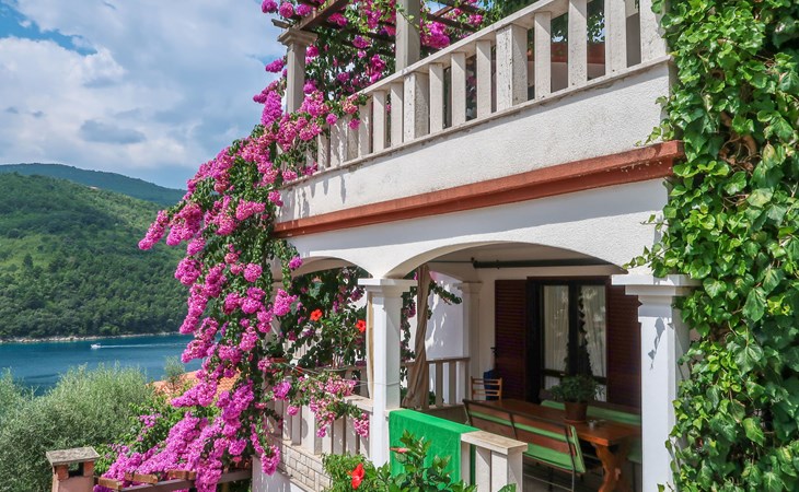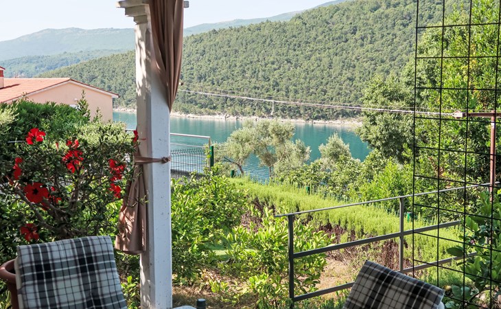 Single-family house "Violetta". Duga Luka Prtlog, 5 km from the centre of Labin, 200 m from the sea. For shared use: property (fenced) with plants and trees. In the house: internet access. Parking at the house on the premises. Shop 5 km, bus stop 5.7 km, pebble beach 400 m, rocky beach 200 m. Marina 11 km. Please note: private mooring (extra).