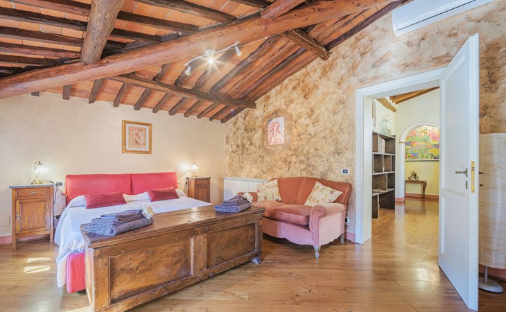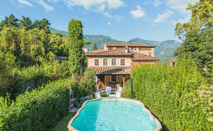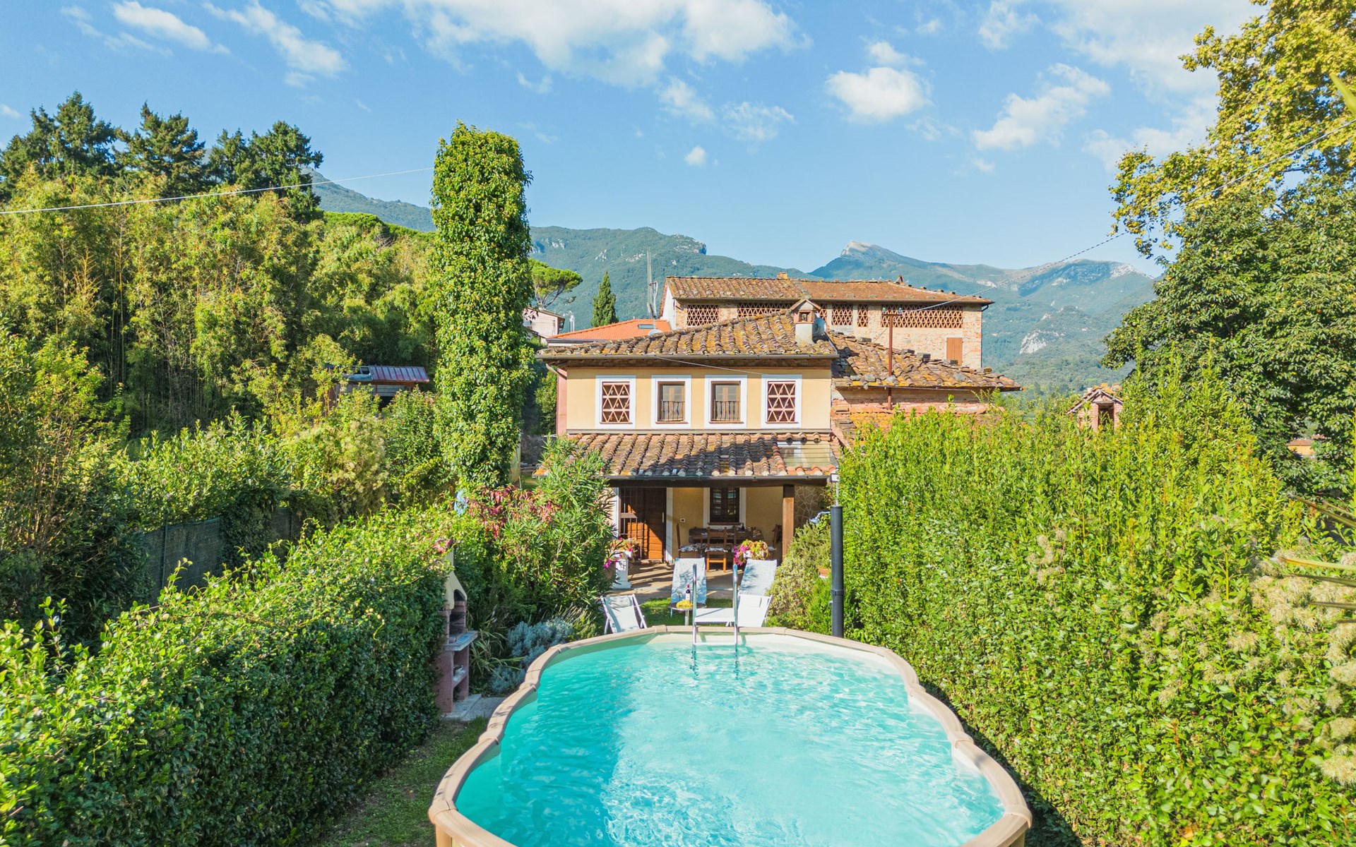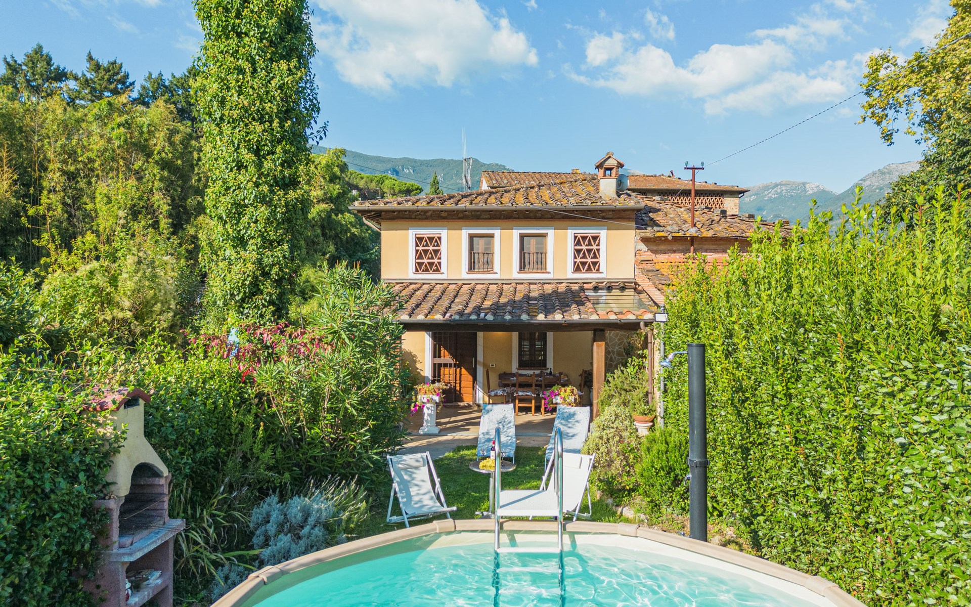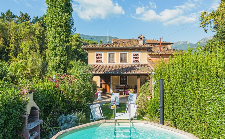 Single-family house "Oleandro", 2 storeys, surrounded by fields. 2.4 km from the centre of Camaiore, on the outskirts, 8.5 km from the centre of Lido di Camaiore, 26 km from the centre of Lucca, 8.5 km from the sea. Private: property 80 m2 (fenced), swimming pool (above ground) (6 x 4 m, depth 130 cm, seasonal availability: 04.May. - 04.Oct.). Outdoor shower, terrace (12 m2), garden furniture, pool maintenance by the owner/gardener. In the house: central heating system, heating to be paid on the spot (18.Apr. - 30.Oct.), heating available only from 31.Oct. - 17.Apr.. Parking (for 2 cars) at the house. Grocery 1.3 km, supermarket 1.4 km, restaurant 1.6 km, bar 950 m, bakery 750 m, bicycle rental 11 km, bus stop 750 m, railway station "Viareggio" 11 km, sandy beach "Lido di Camaiore" 8.5 km. Nearby attractions: Pietrasanta 9 km, Forte dei Marmi 16 km, Marina di Pietrasanta 12 km, Pisa 32 km, Carrara Cave Fantiscritti 45 km, Riomaggiore 5 Terre 78 km. Well-known lakes can easily be reached: Torre del Lago 17 km, Lago di Massaciuccoli 24 km. Hiking paths: Antro del Corchia Levigliani 28 km, Grotta all“Onda Casoli 12 km. Please note: car recommended. The owner does not accept any youth groups. Neighbourhood highly sensitive to noise. Quietness and good behaviour expected.