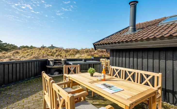Single-family house, built in 1988. 700 m from the sea. Private: property 2'006 m2, indoor pool (3 x 6 m, 18 m2, depth 160 - 160 cm). Barbecue. In the house: sauna, table football, washing machine, tumble dryer. Parking at the house. Grocery 750 m. The owner does not accept any youth groups.