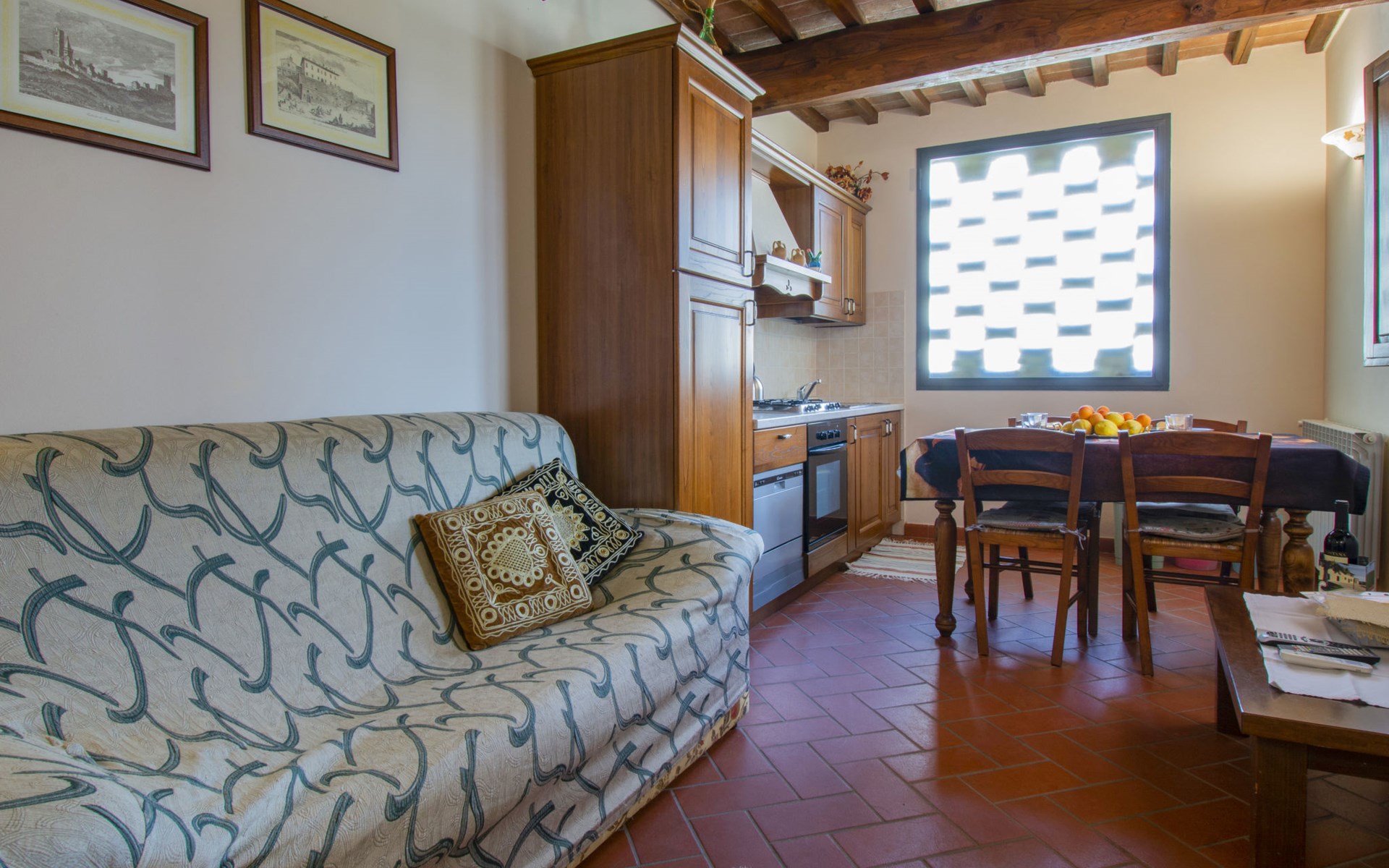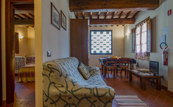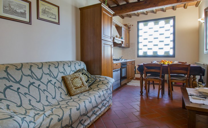 Beautiful country house "Borgo Fontana", from the 18th century, renovated, surrounded by meadows, fields and vineyards. 7 apartments in the residence. 4 km from the centre of Vinci, in a quiet, sunny position on top of a hill, in the countryside. For shared use: property 20 ha, large garden lawn and trees, lawn for sunbathing, natural pond, swimming pool (6 x 12 m, depth 150 cm, seasonal availability: 01.Apr. - 29.Oct.). Outdoor shower, table tennis, patio, terrace, garden furniture, barbecue. In the complex: reception, lounge with TV, internet access, washing machine (for shared use), heating available only from 01.Nov. - 29.Mar., bicycles available (extra). Linen change weekly. Parking on the premises. E-charging station. Shop 2 km, supermarket 4 km, restaurant 2 km, bus stop 400 m, railway station "Empoli" 9 km, sandy beach "Versilia" 60 km. Golf course 5 km. Nearby attractions: San Miniato 10 km, Empoli 10 km, Montecatini Terme 22 km, Firenze, Lucca 40 m. Hiking paths: Montalbano 15 km. Please note: fishing [permit required]. Local sale of farm products. Residence with electric gates.