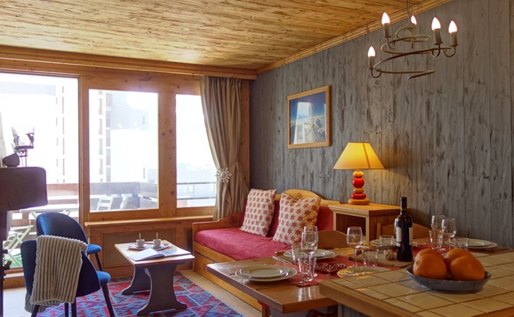 Tignes Val Claret: In the shopping centre. Residence "Le Grand Tichot A et B (Val Claret)". In a central, busy position, 100 m from the skiing area. In the complex: lift, central heating system. Shop, supermarket, shopping centre, restaurant, bakery, café 10 m, bus stop 300 m, indoor swimming pool 2 km. Sports centre 2 km, skisport facilities 100 m, slopes 150 m, ski rental 10 m, ski school, sled run. Well-known ski regions can easily be reached: Tignes & Val d'Isère 100 m. Please note: Additional accommodations can be booked.
